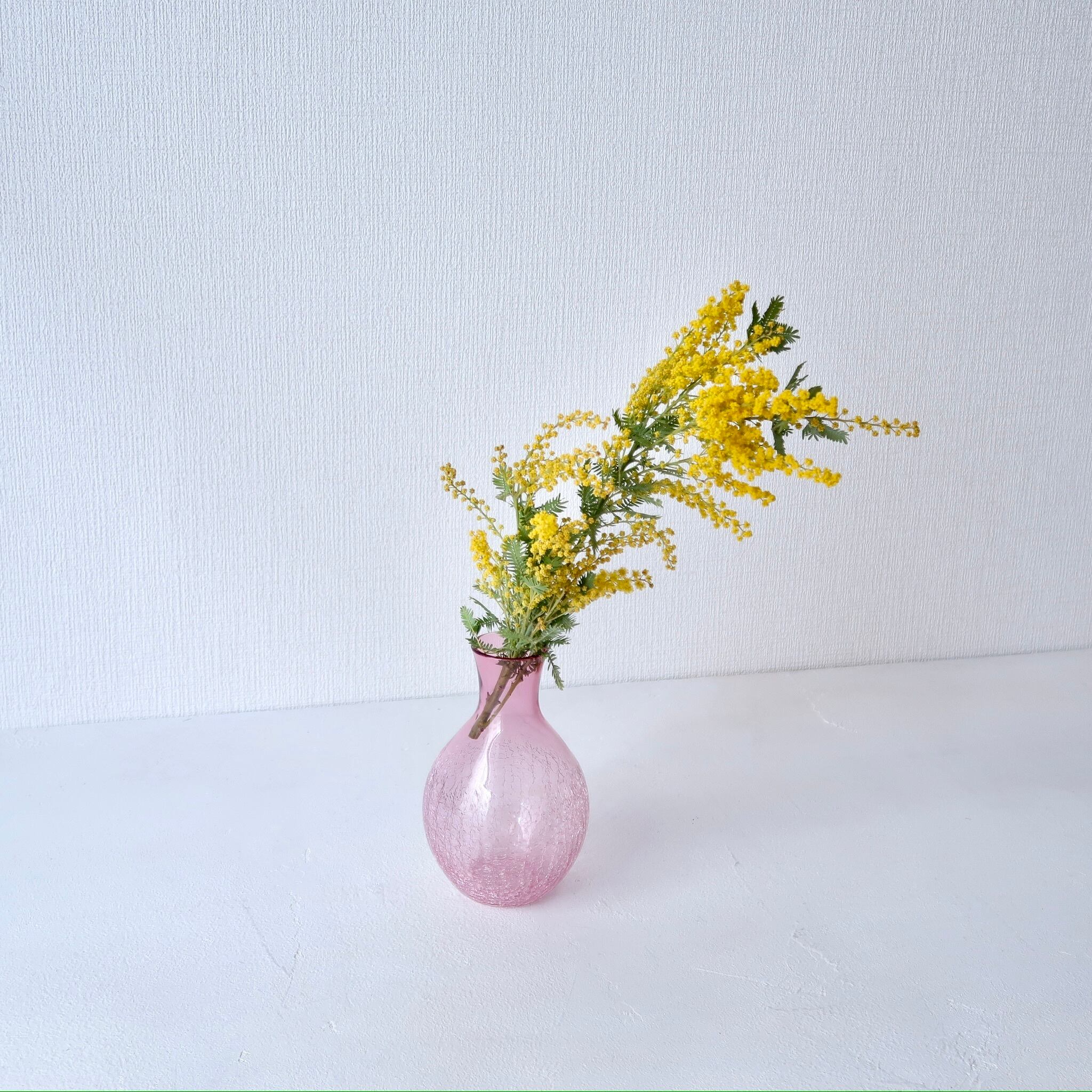 クラックが入っていることで、光にかざすとキラキラと輝いて見える一輪挿し。割れやカケはなく、もとより加工としてほどこされているため、安心してお使いいただけます。