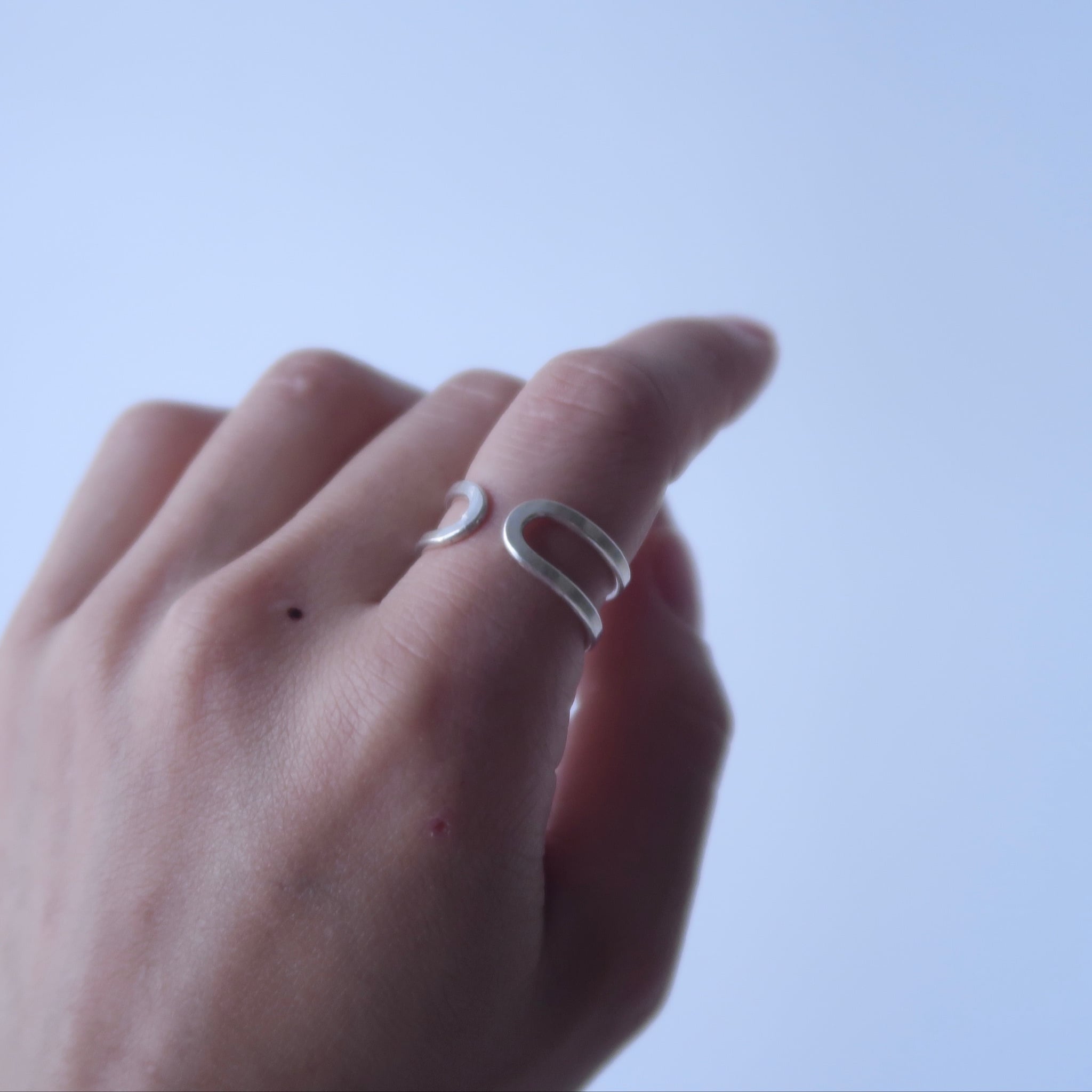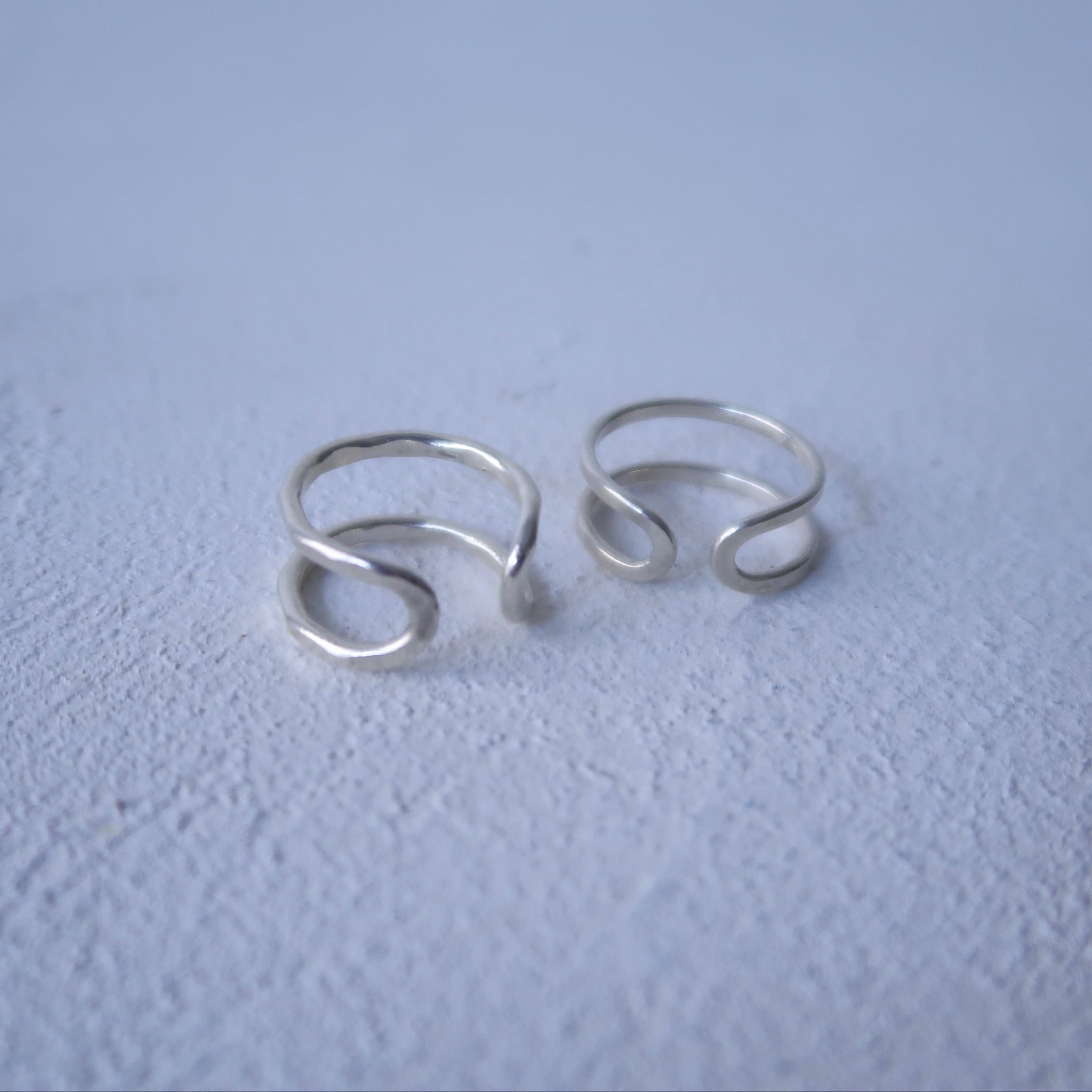 =面を表にすると、リングを2本重ねづけしているようなユニークな見た目に。