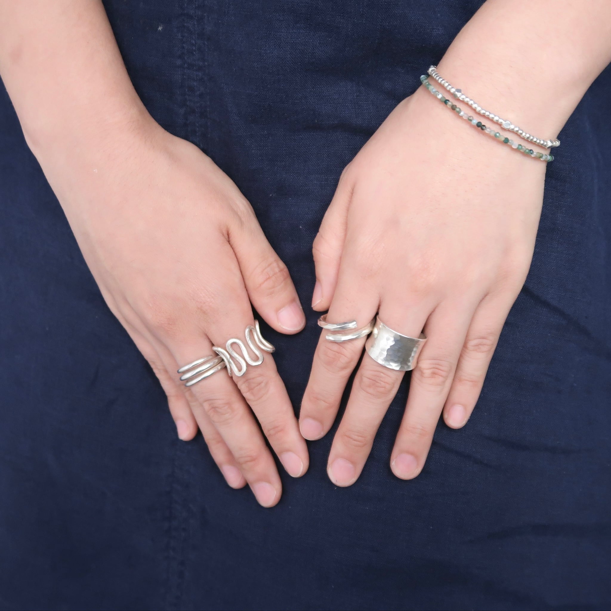 人気の高いカレンシルバーのリングたち。フリーサイズでどなたでも着けやすいアイテムを