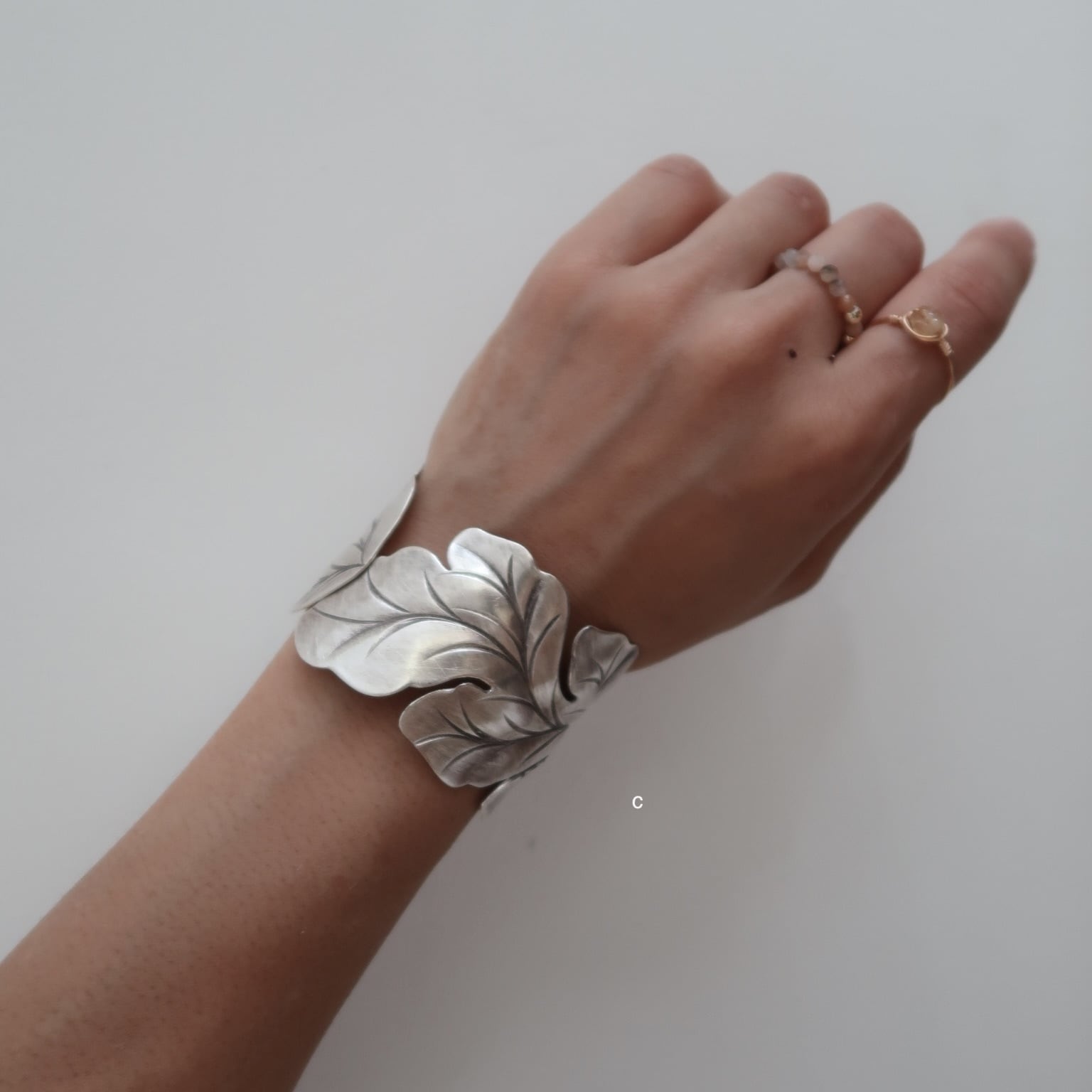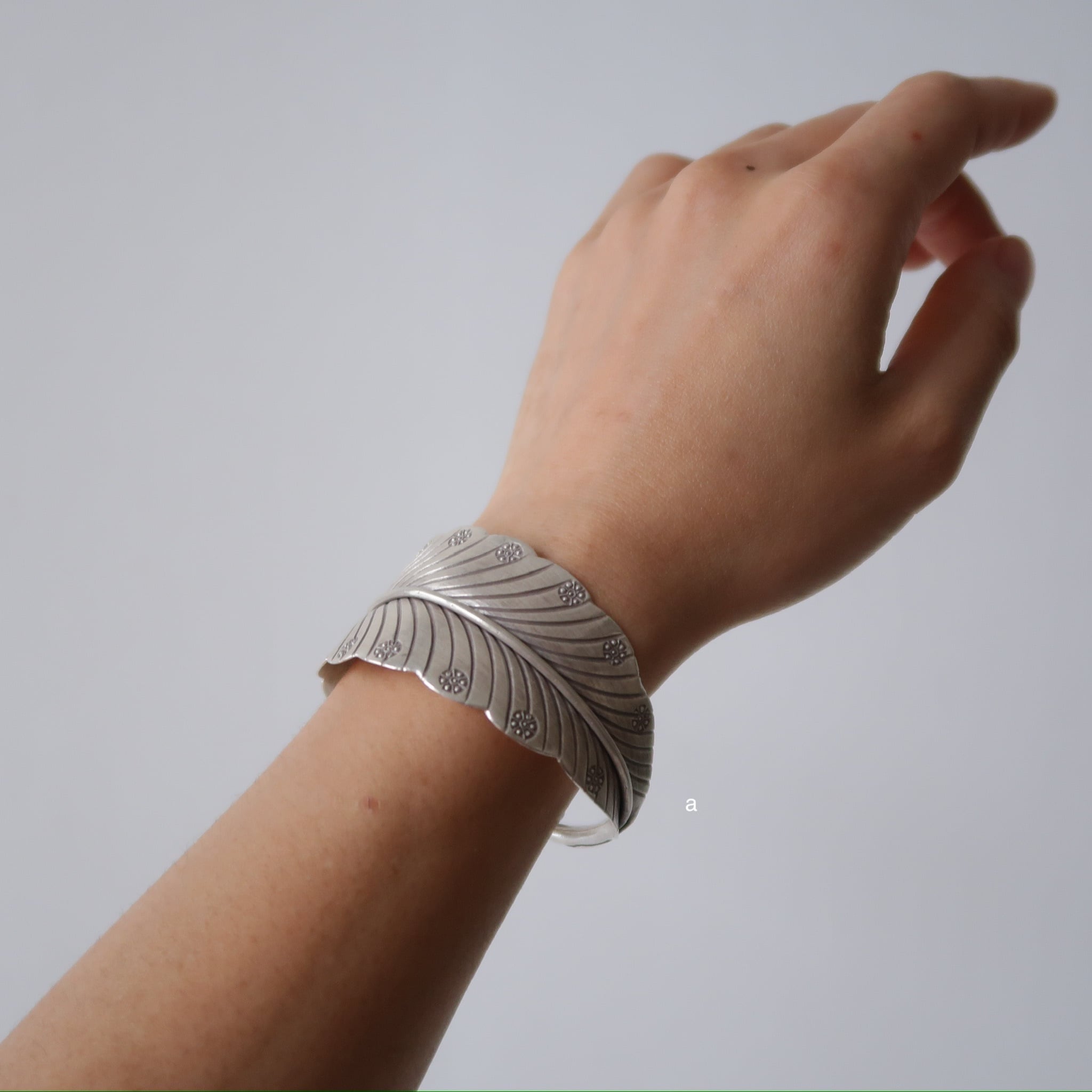 生命力あふれる、大きな葉っぱのモチーフバングル。