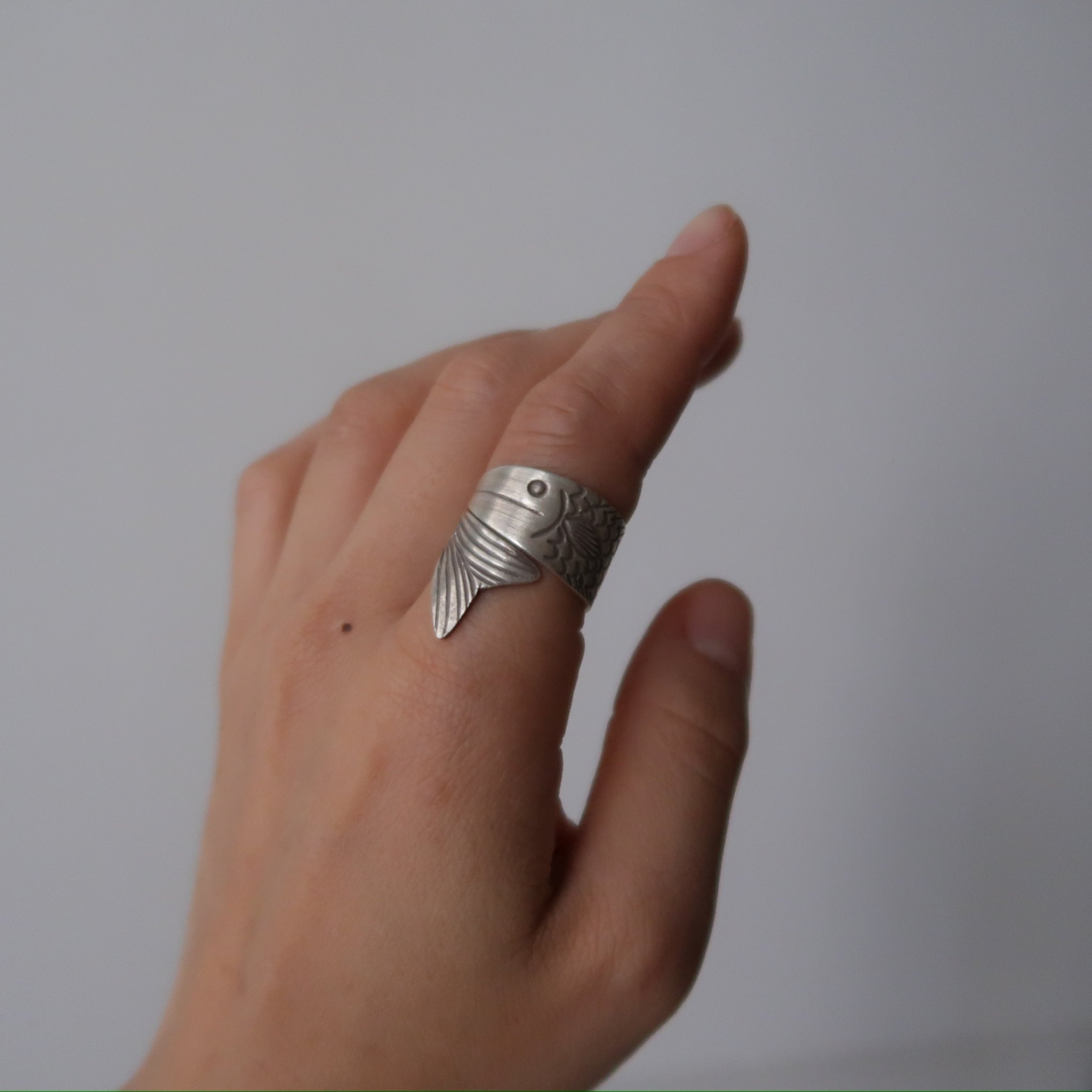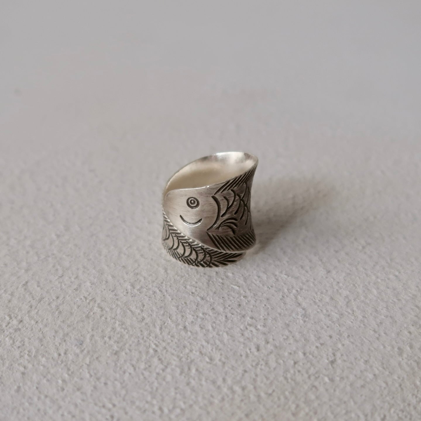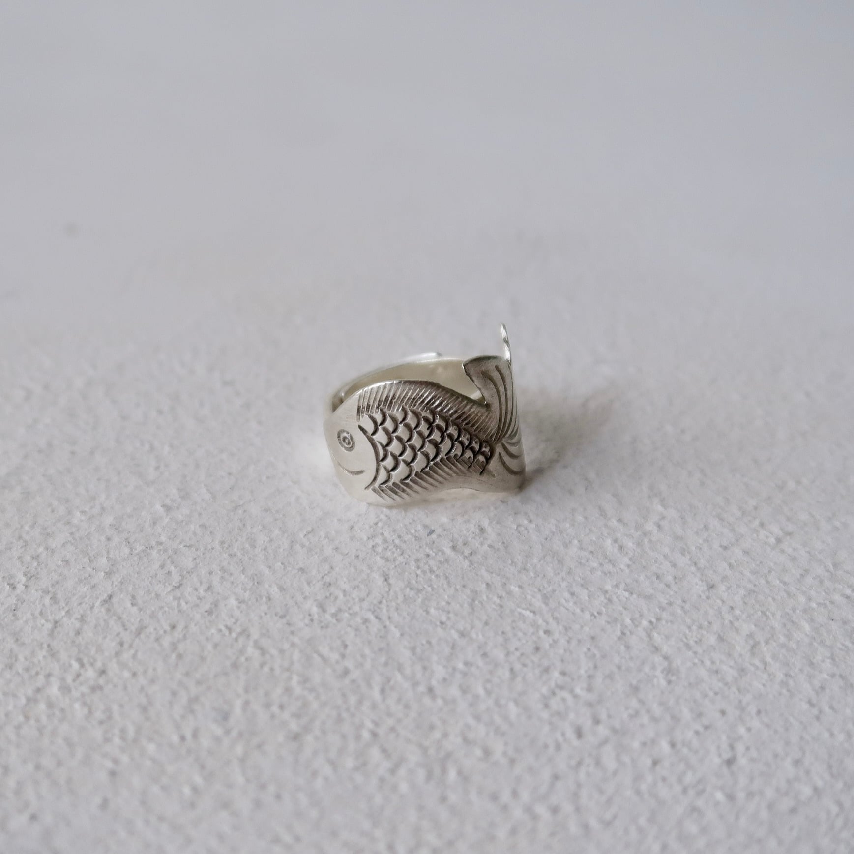 お魚の彫金が細かく施されたリング。