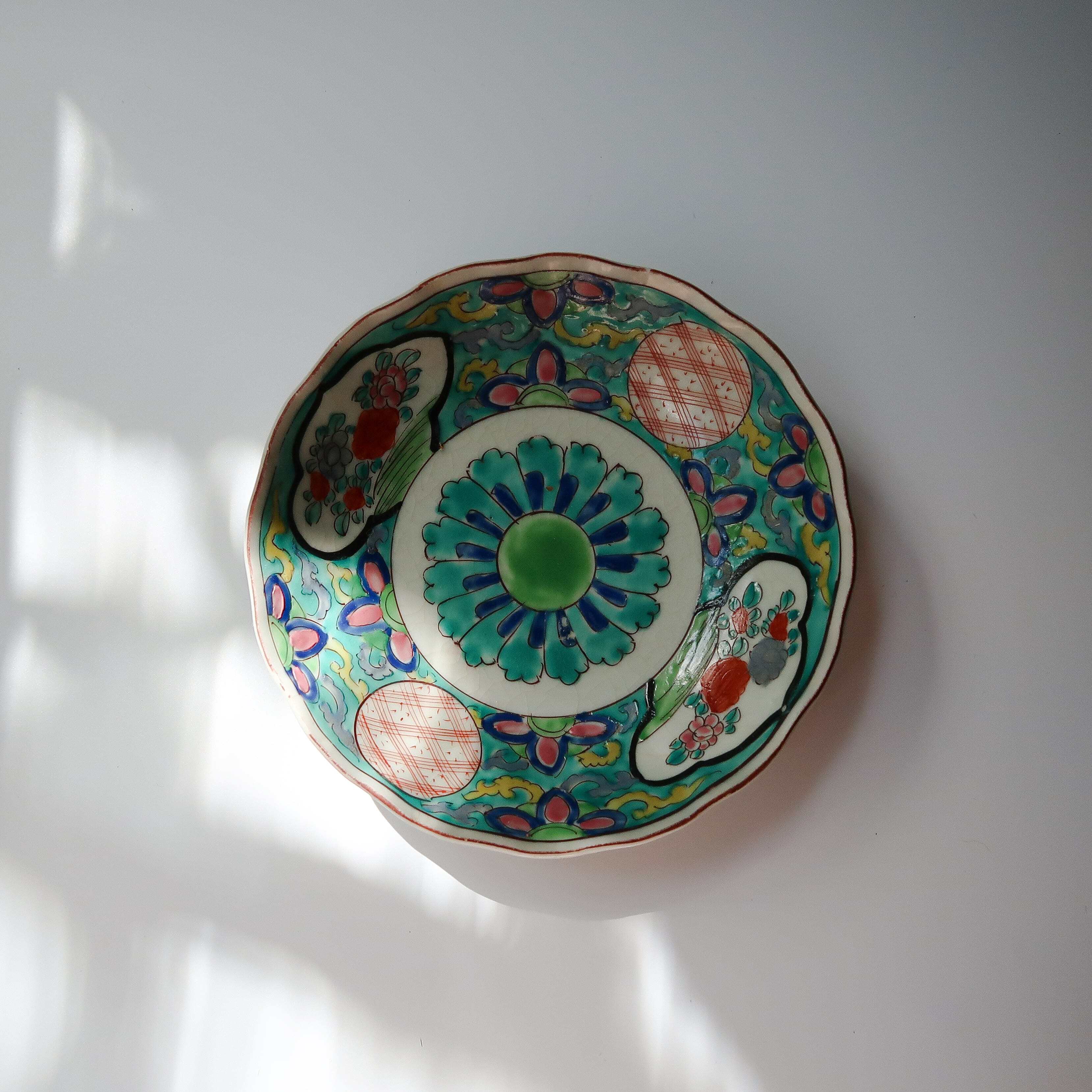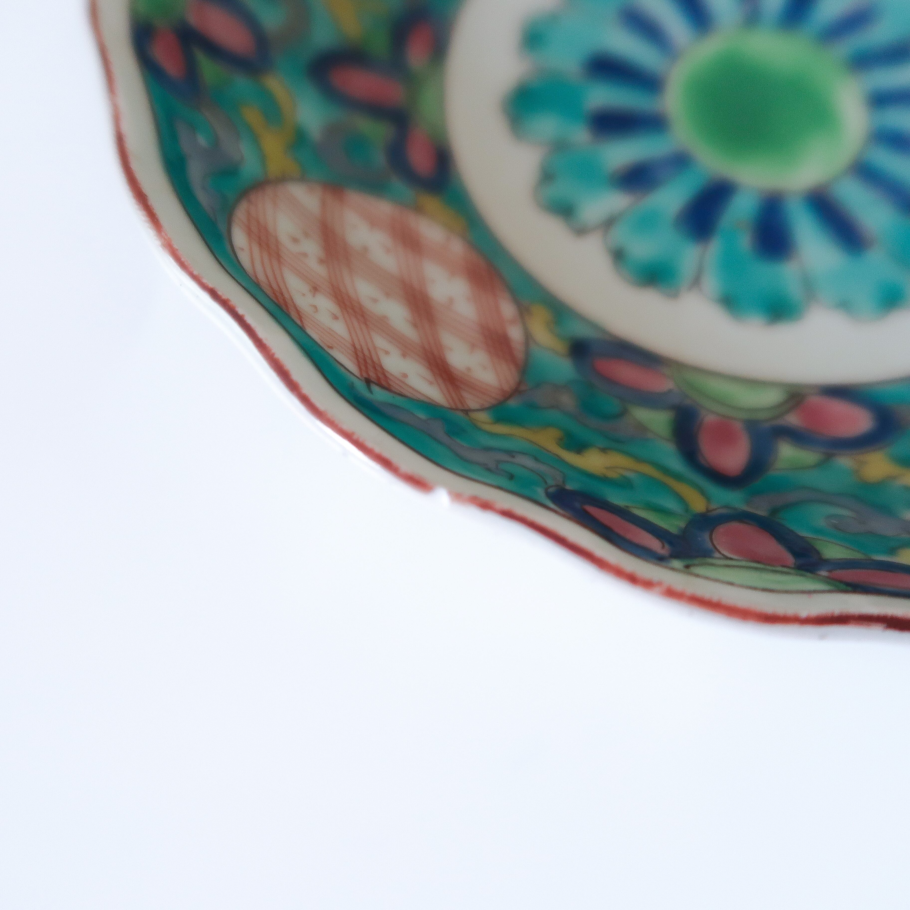 エメラルドグリーンをベースに、唐草文様に黄色や紫を持ってきたり。