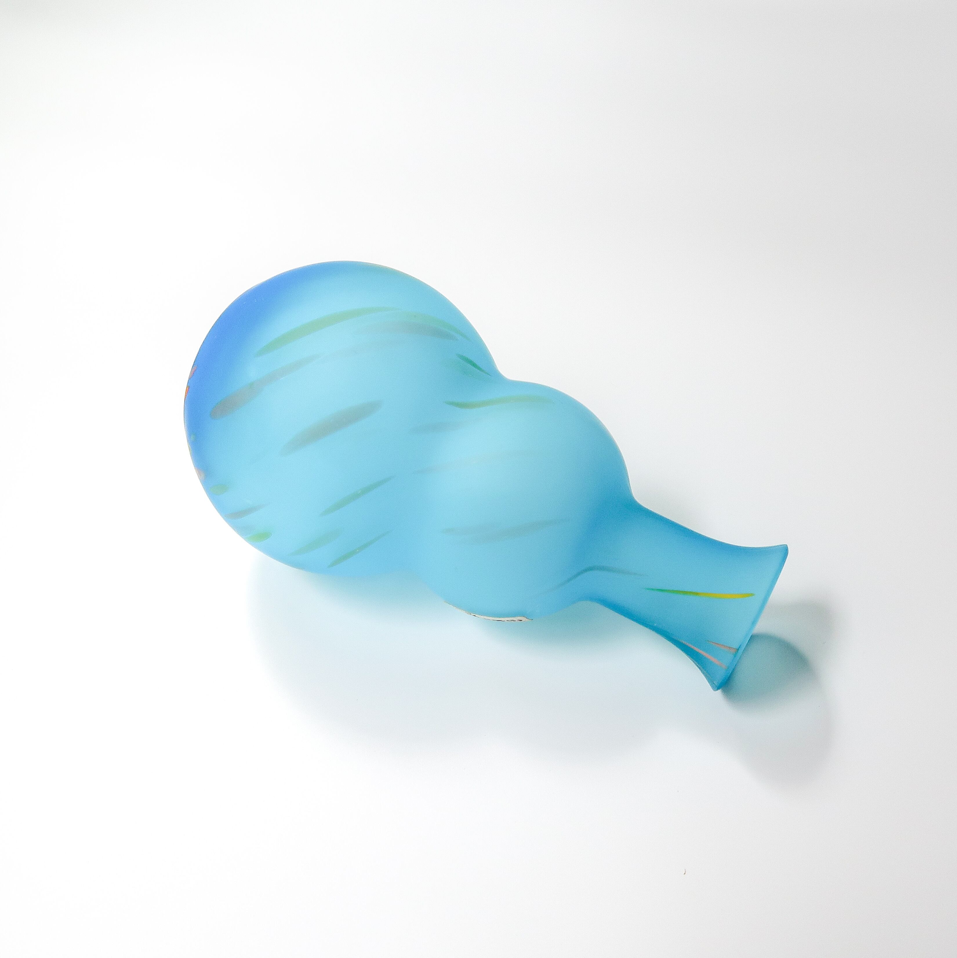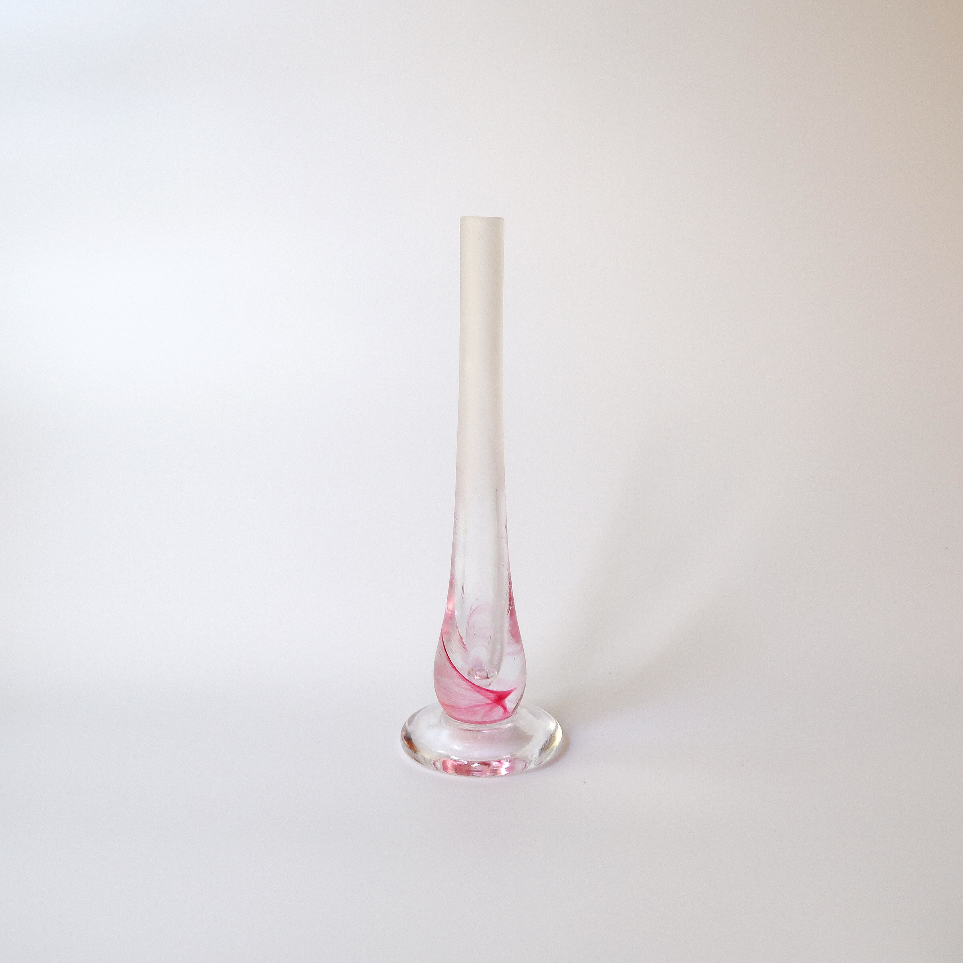 ラムネ瓶のような、ちょっと変わった形のすりガラスの花瓶。