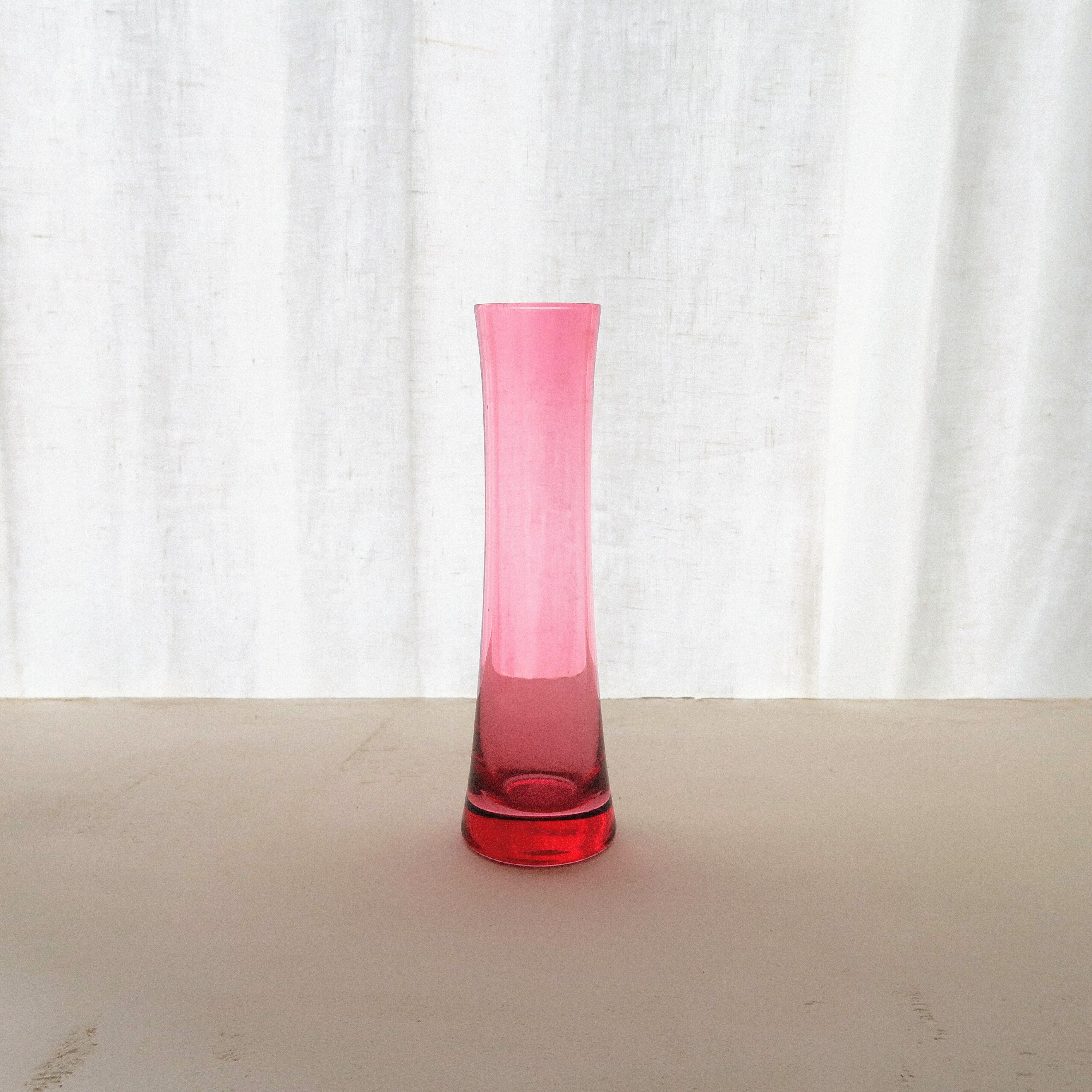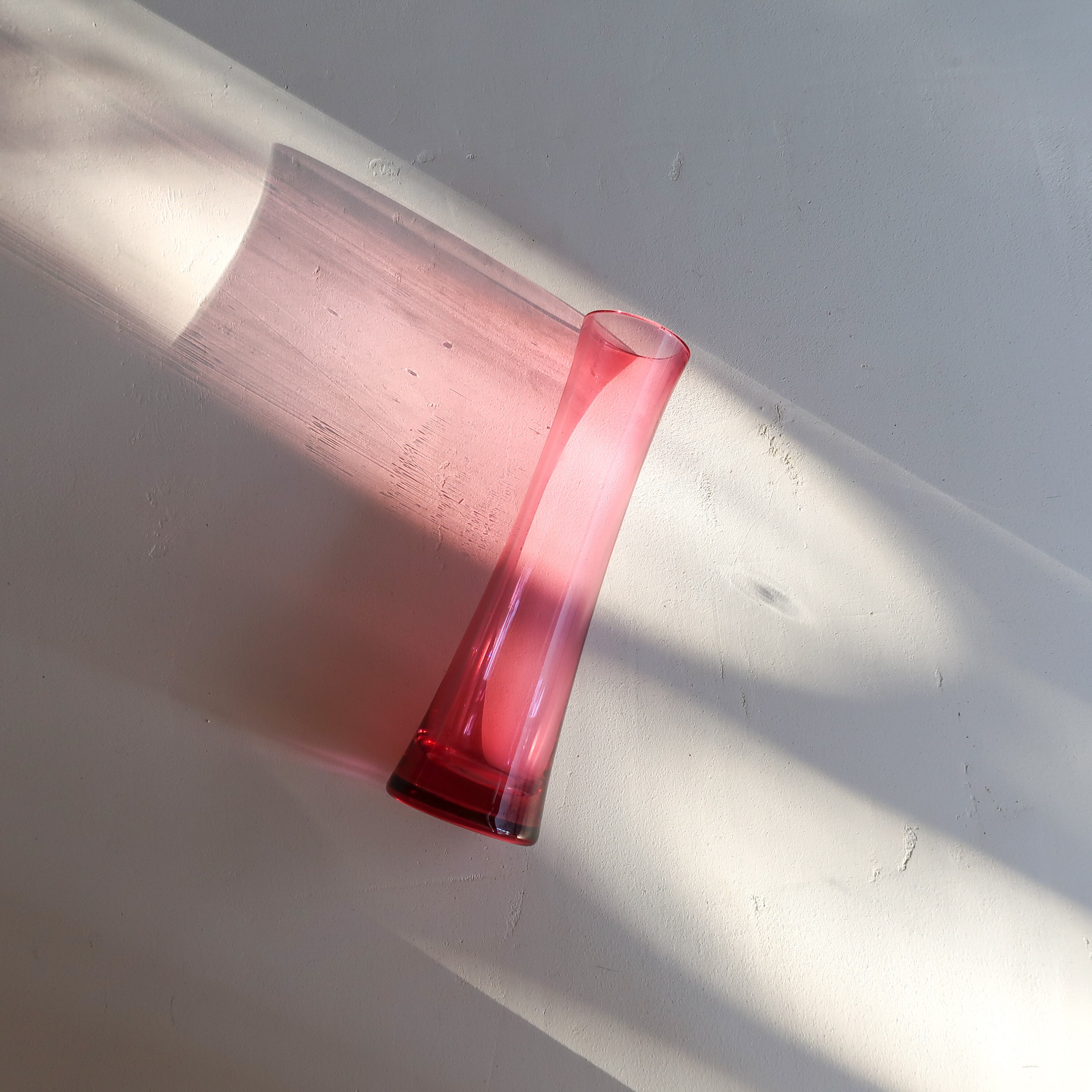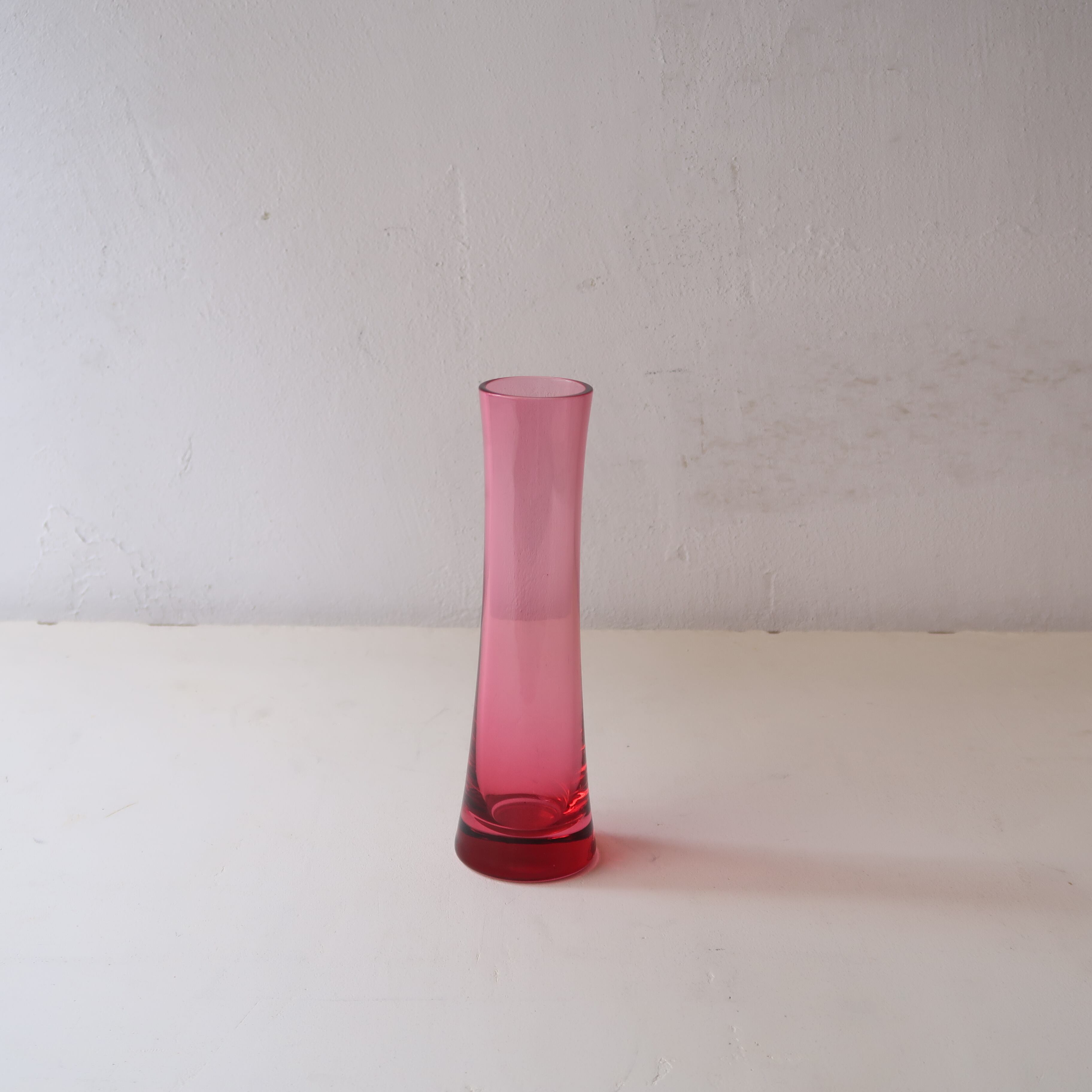 ビビッドなピンクがかわいい色。ブーツカットのパンツのように、すそ広がりでスラリとしているので、一輪挿しにぴったり。使い勝手のよい花瓶です。