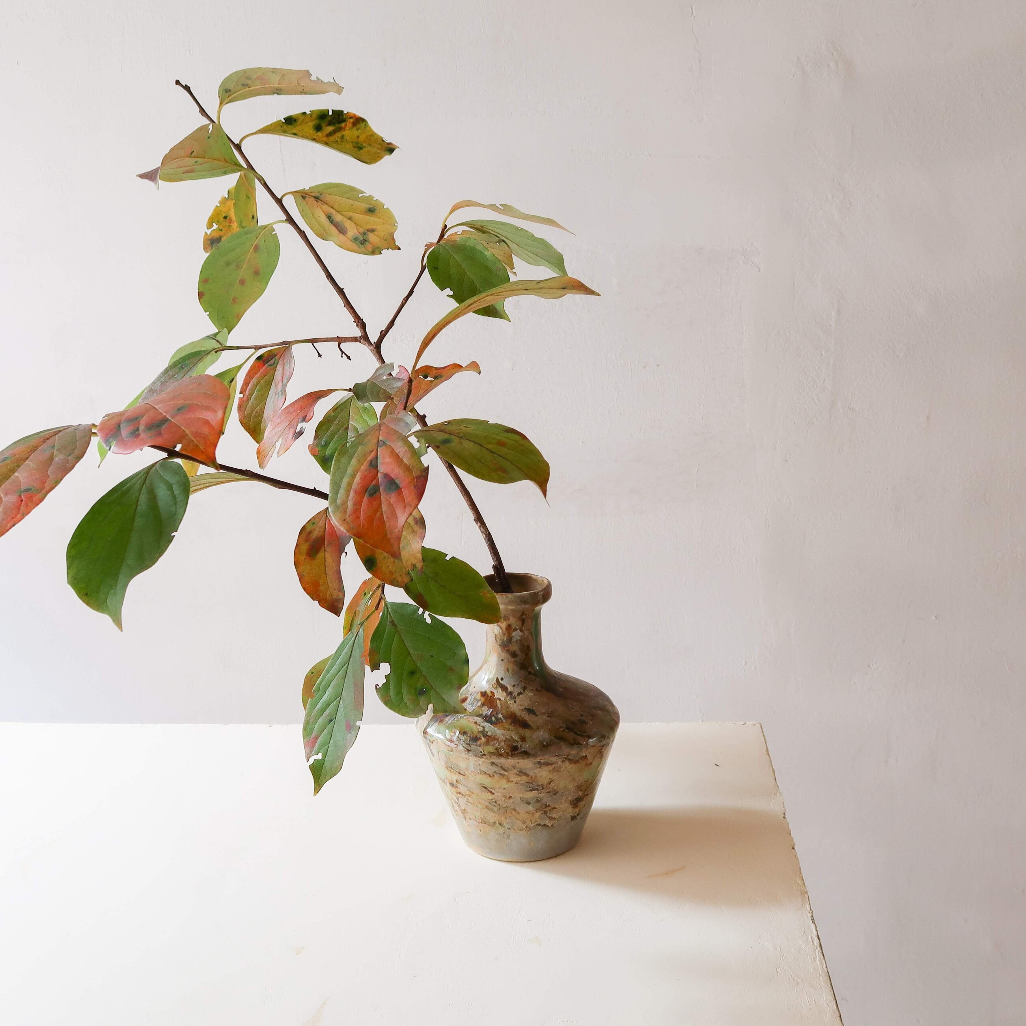 たまには滋味深い器も。紅葉がきれいなので、剪定がてら枝葉を活けました。