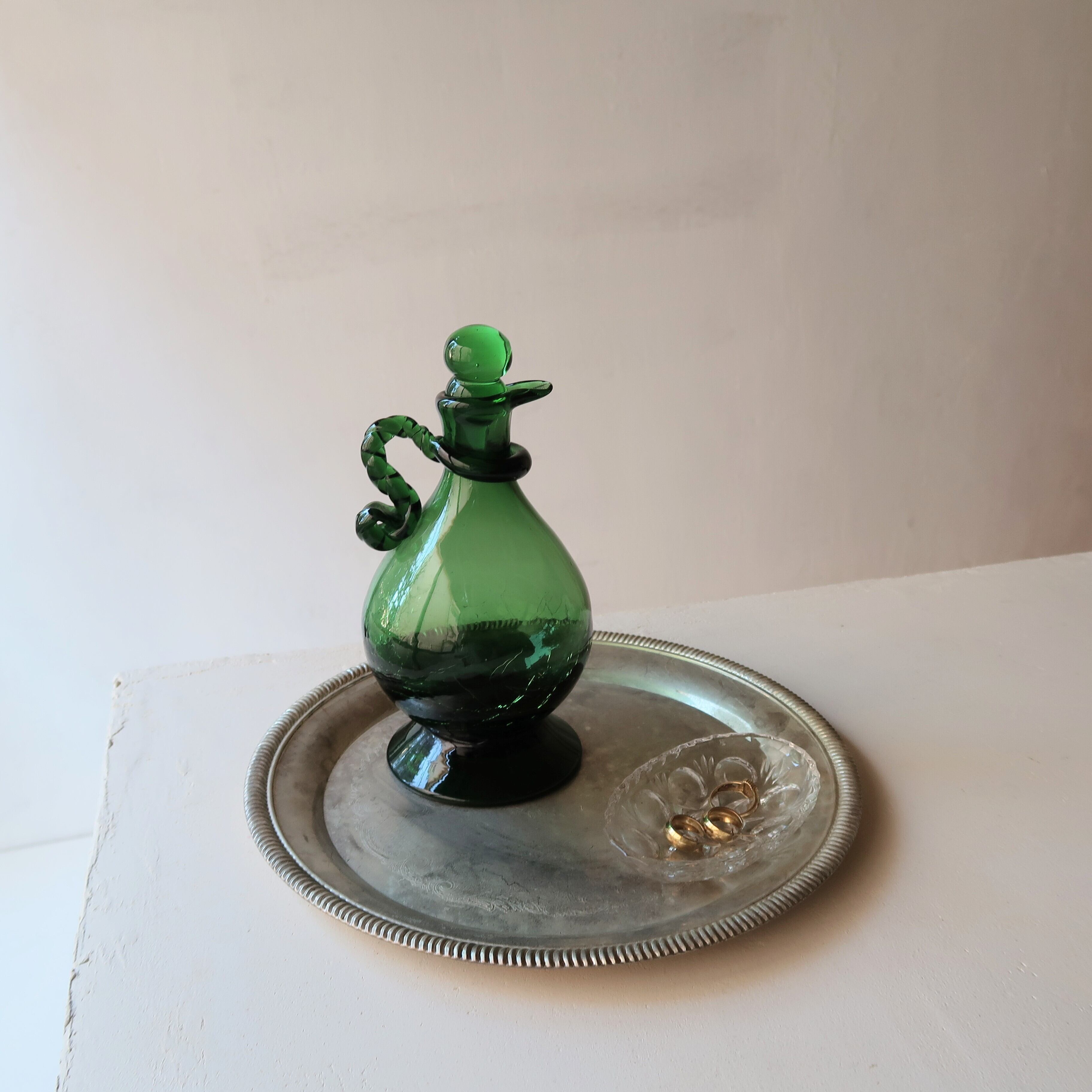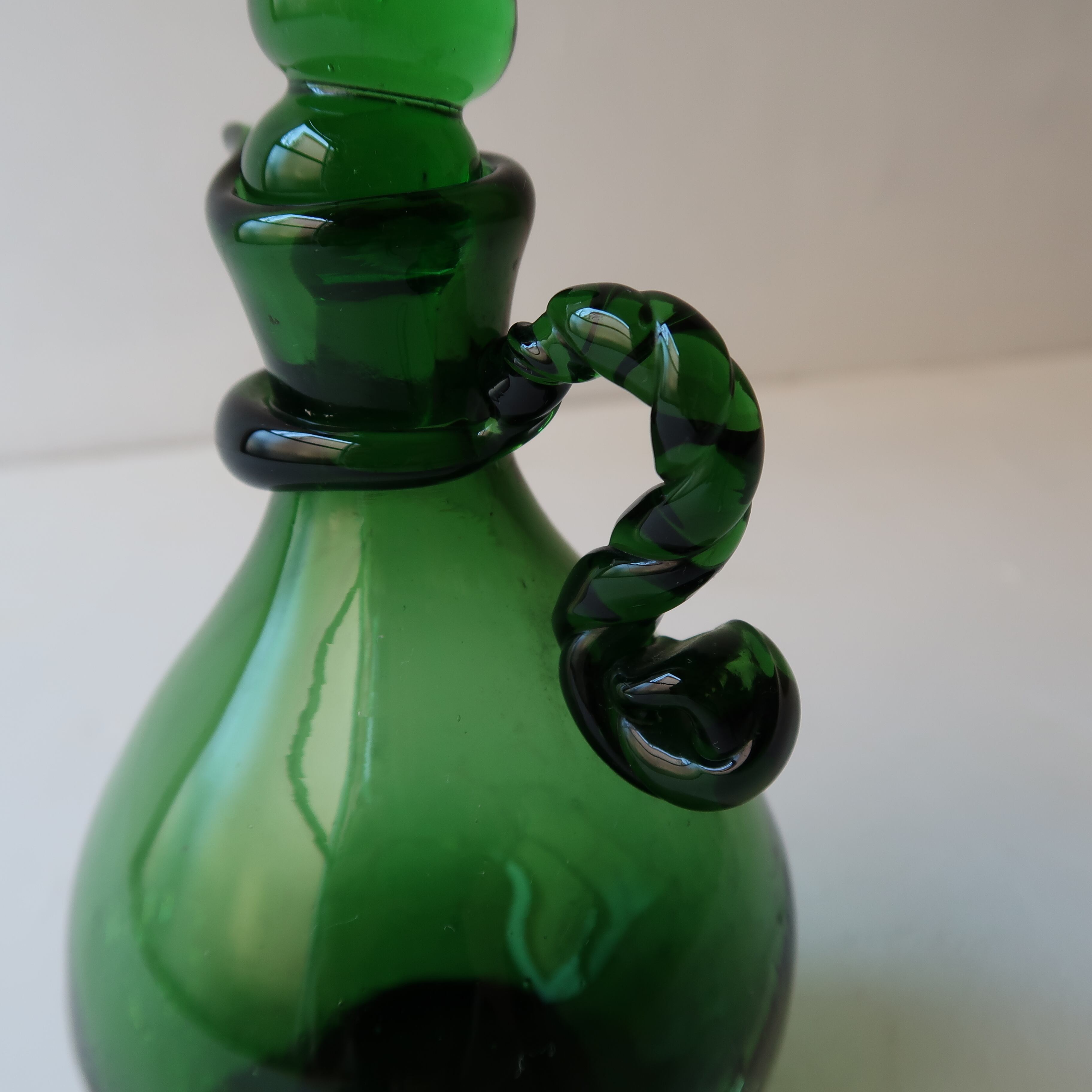 ねじねじした持ち手がかわいい、グリーンの水差し。