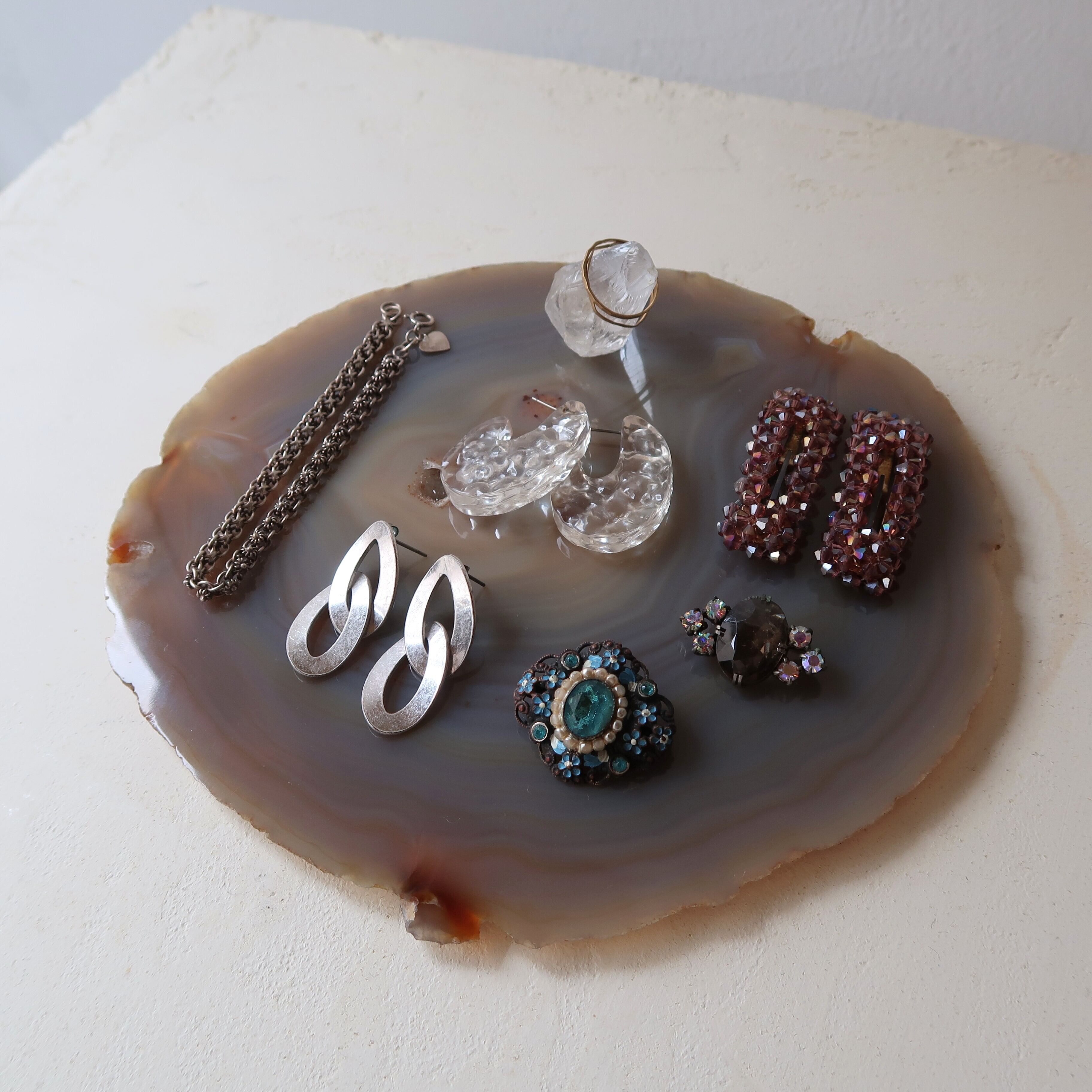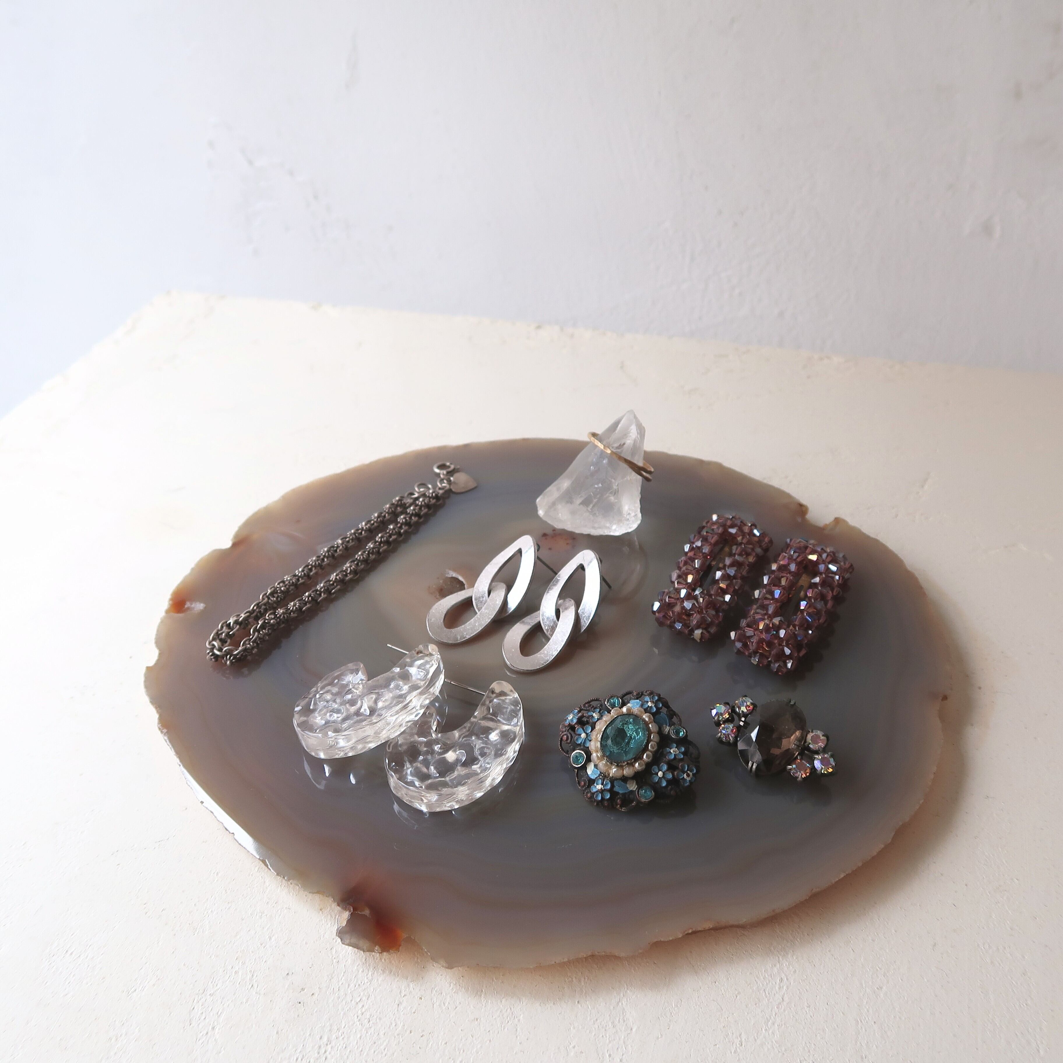 まんまるの石、コーヒーにミルクを注いでかき混ぜたときのようなマーブル模様。お気に入りのジュエリーを飾るのに◎