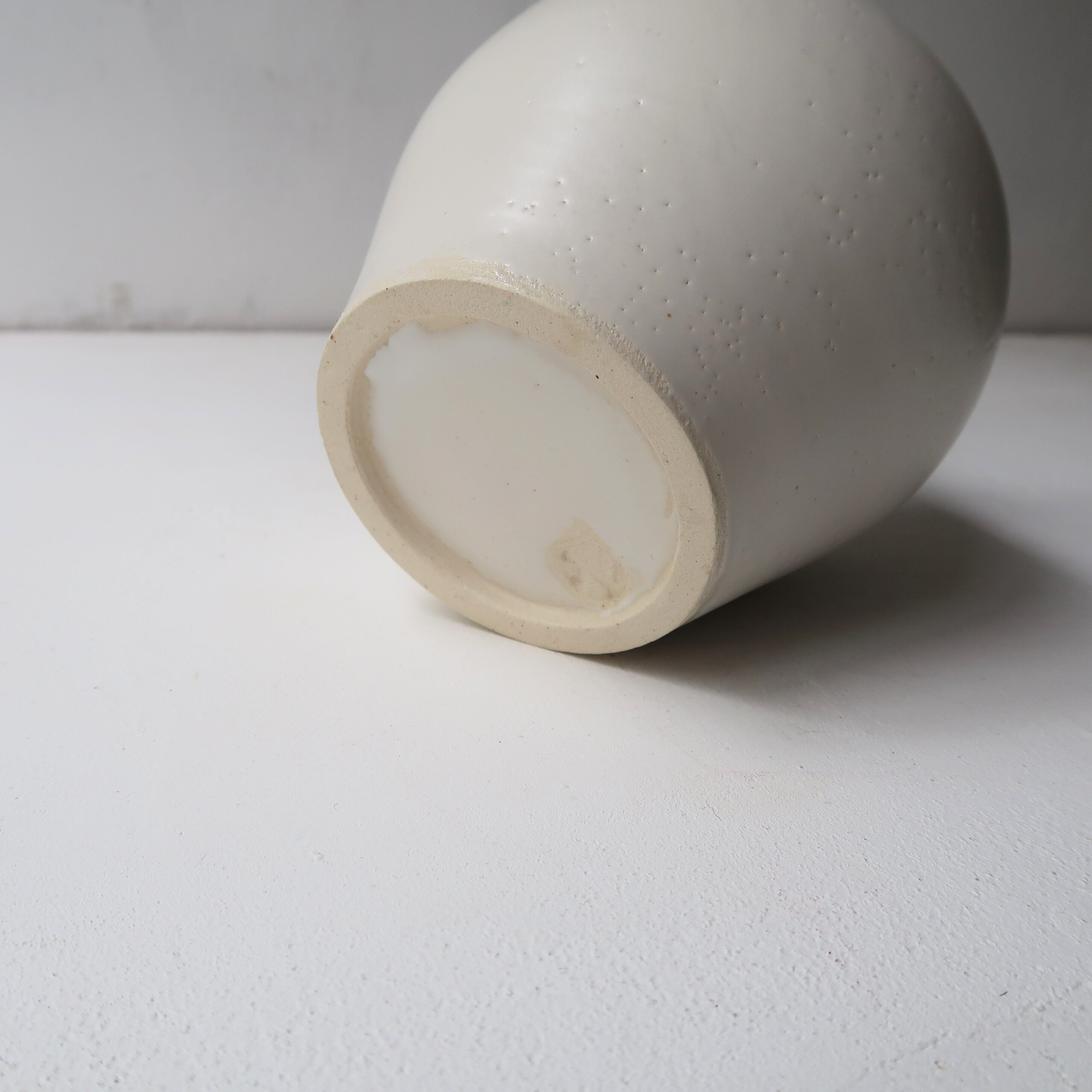まるっとしたフォルムがかわいい、マットな白い花瓶。ほっそりとした一輪のお花や、蕾のある枝物を生けたり。シンプルなお部屋にも合いそう。