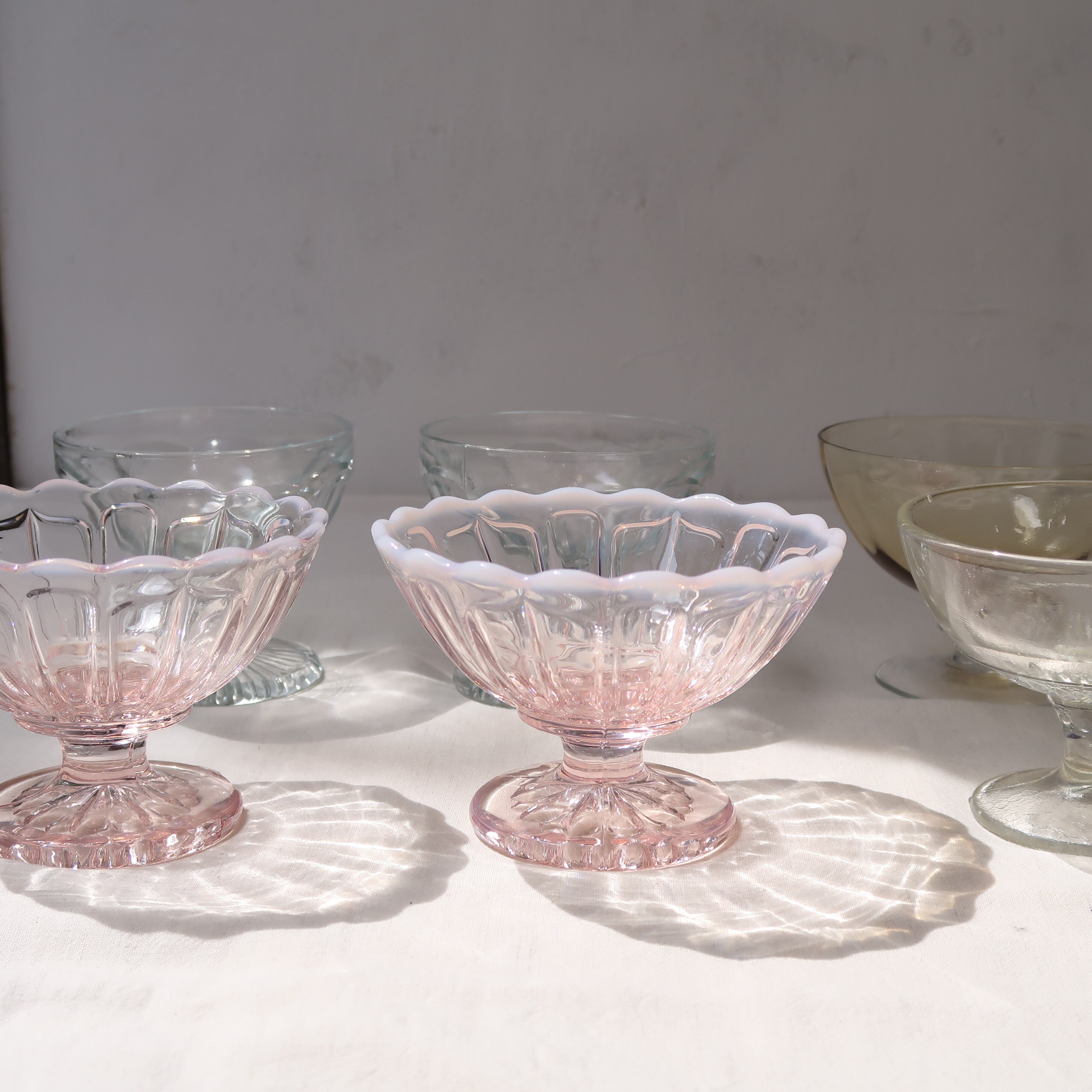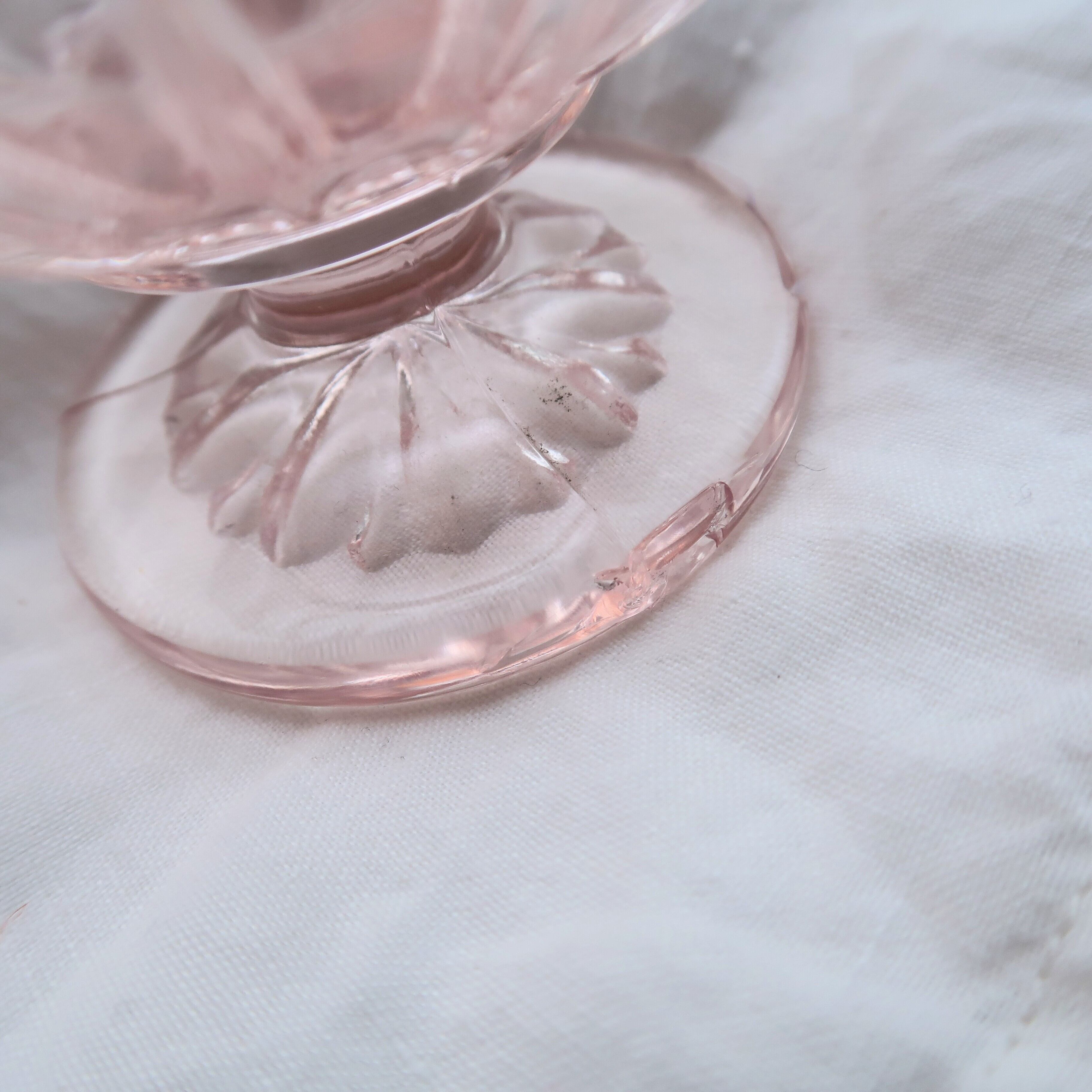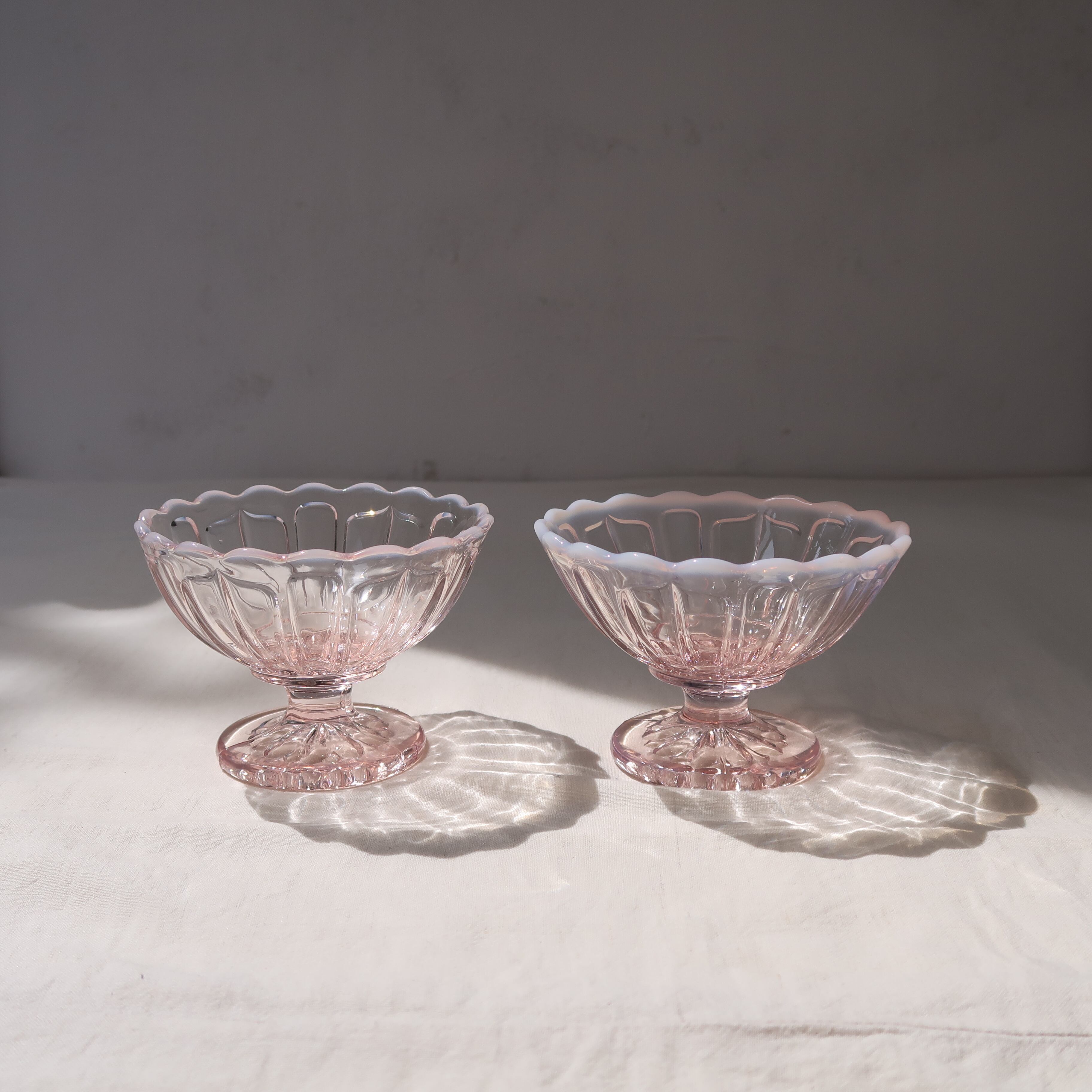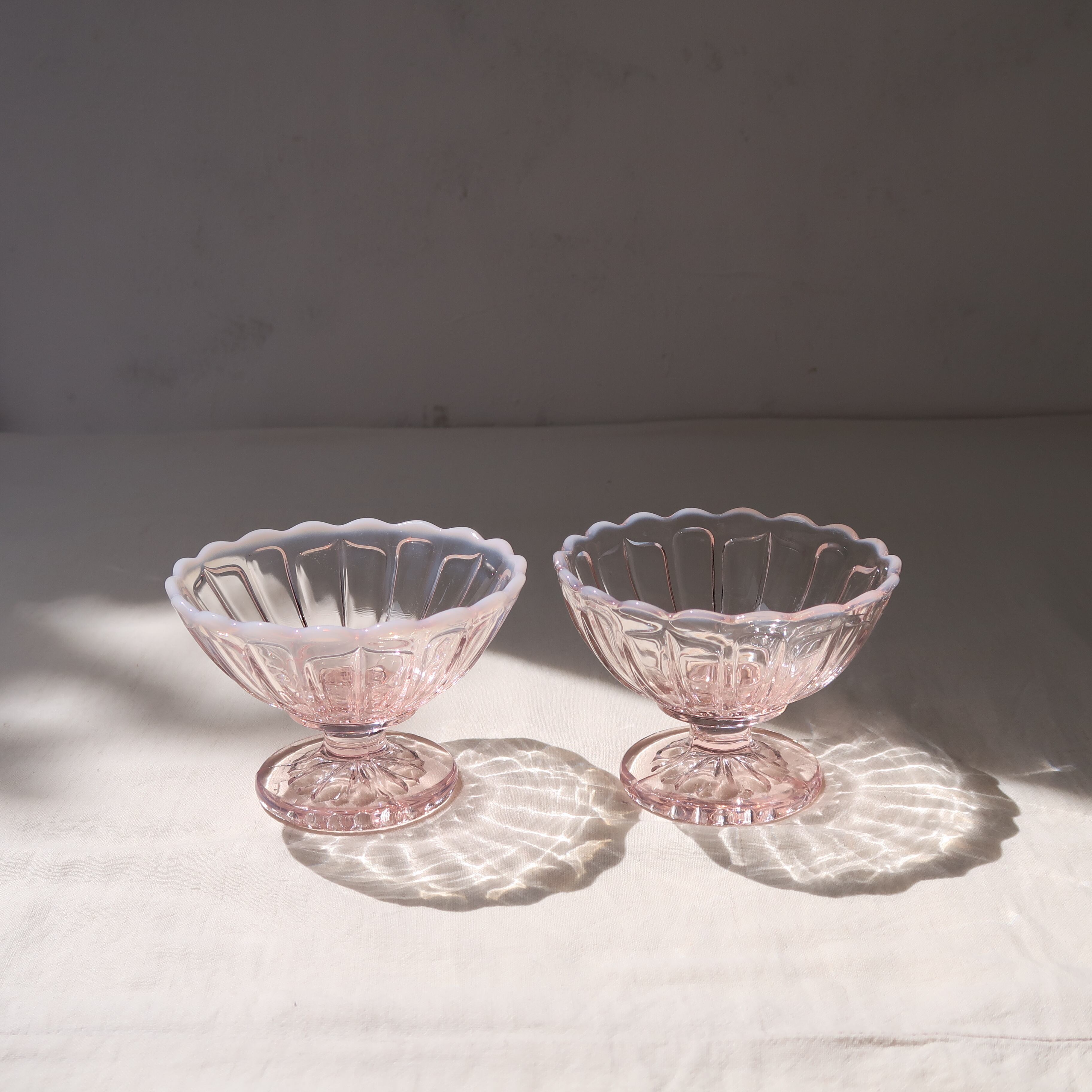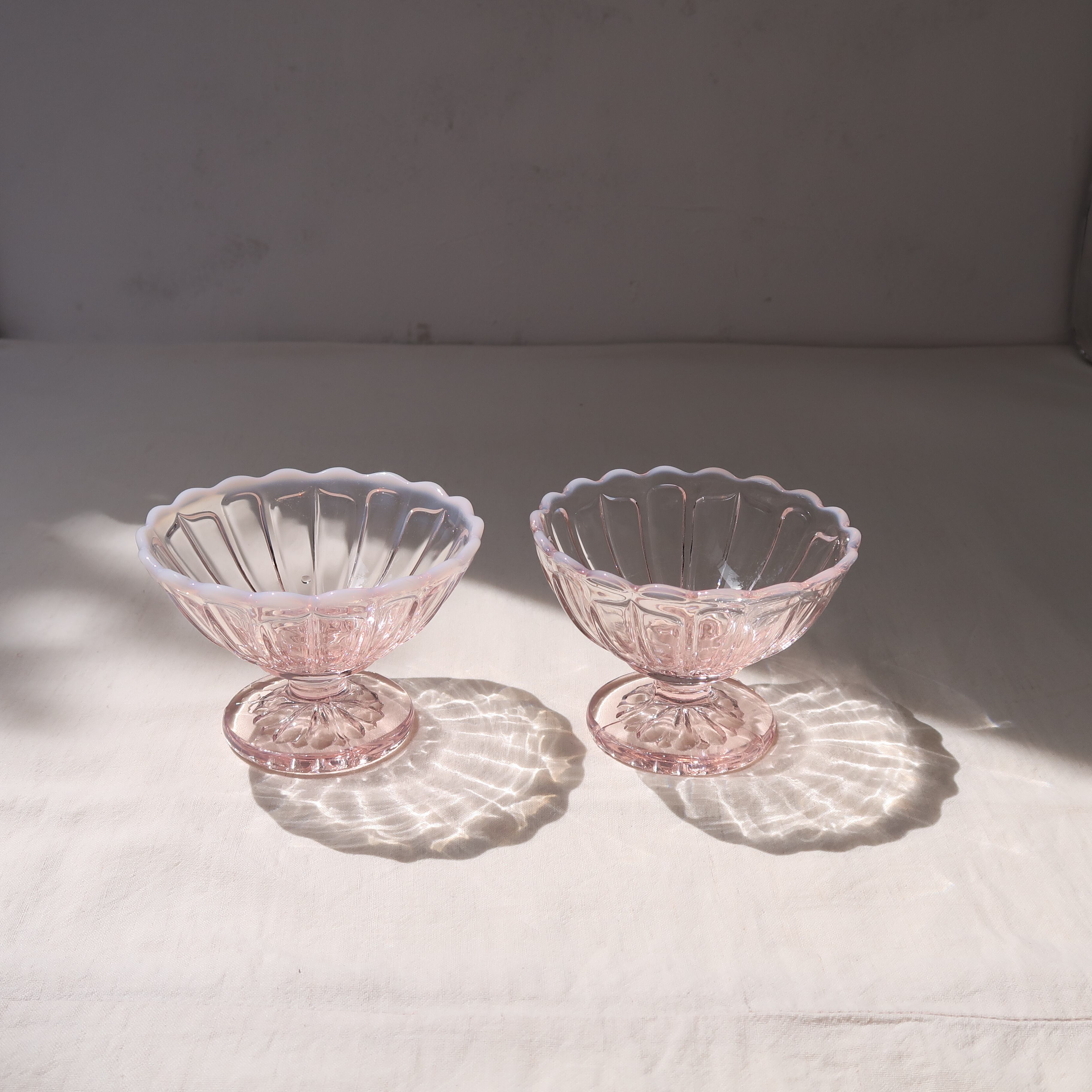 うすいピンクと、ぽってりとしたガラス、ふちのひらひらがかわいい、アイスクリームカップ。
