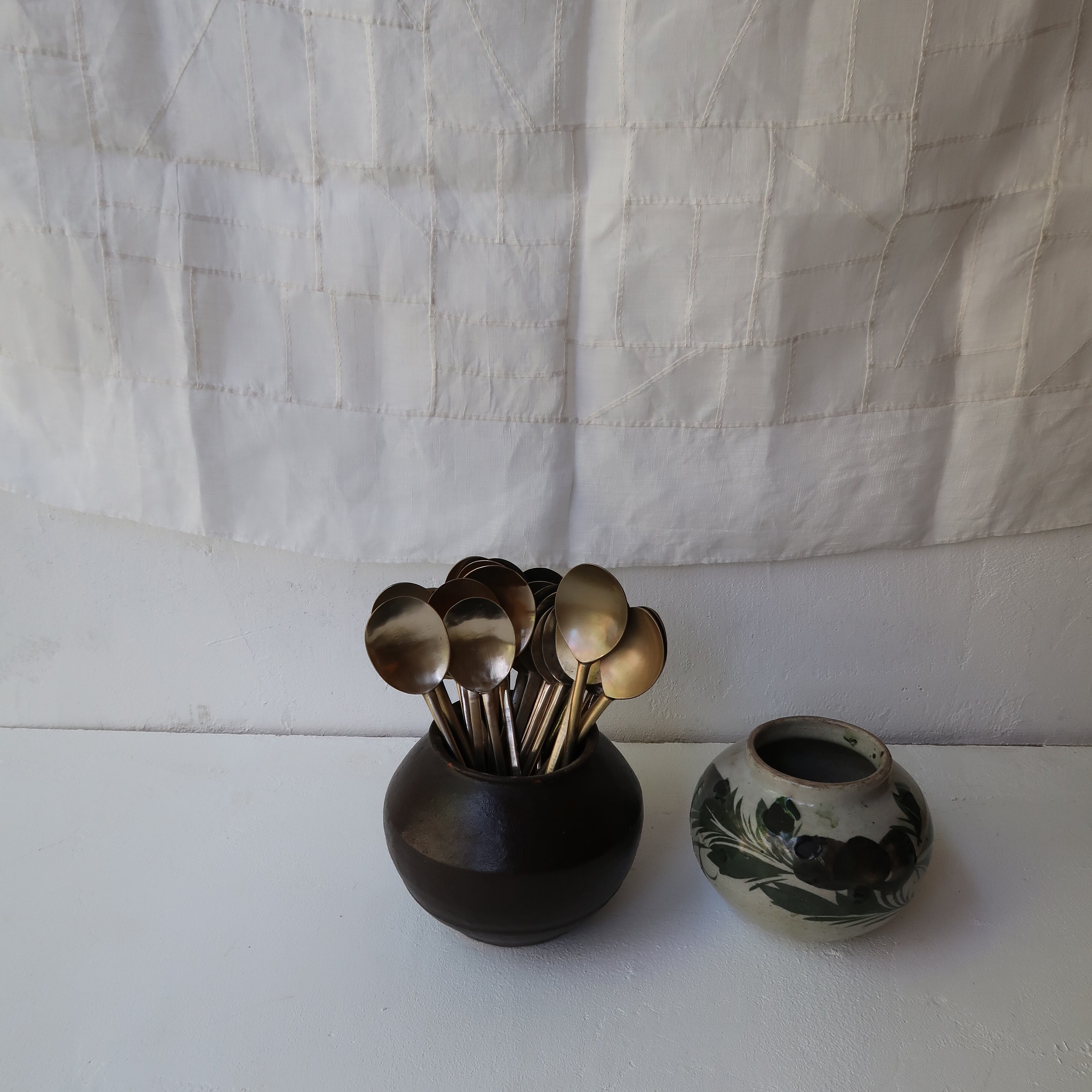 韓国で出会ったスッカラ。ビビンバ、スープ、などなど、スプーンより少し大きいこのスッカラでなんでも食べます。種類はつやつやとマットの2種類。