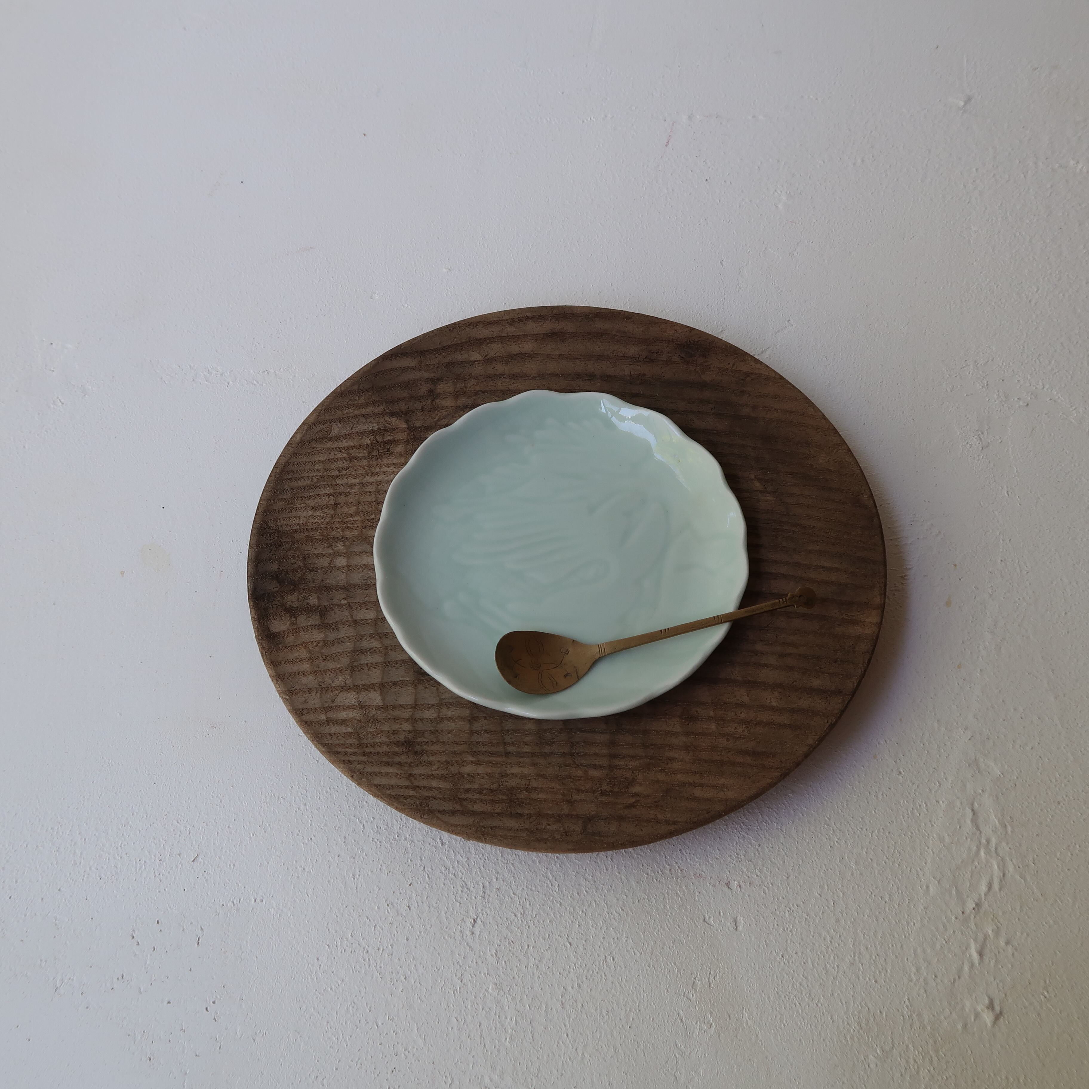 こんがり焼いたパンをのせたり、お皿と重ねて使ったり、真鍮のアクセサリーを飾ったり。工夫しがいのあるプレートです。