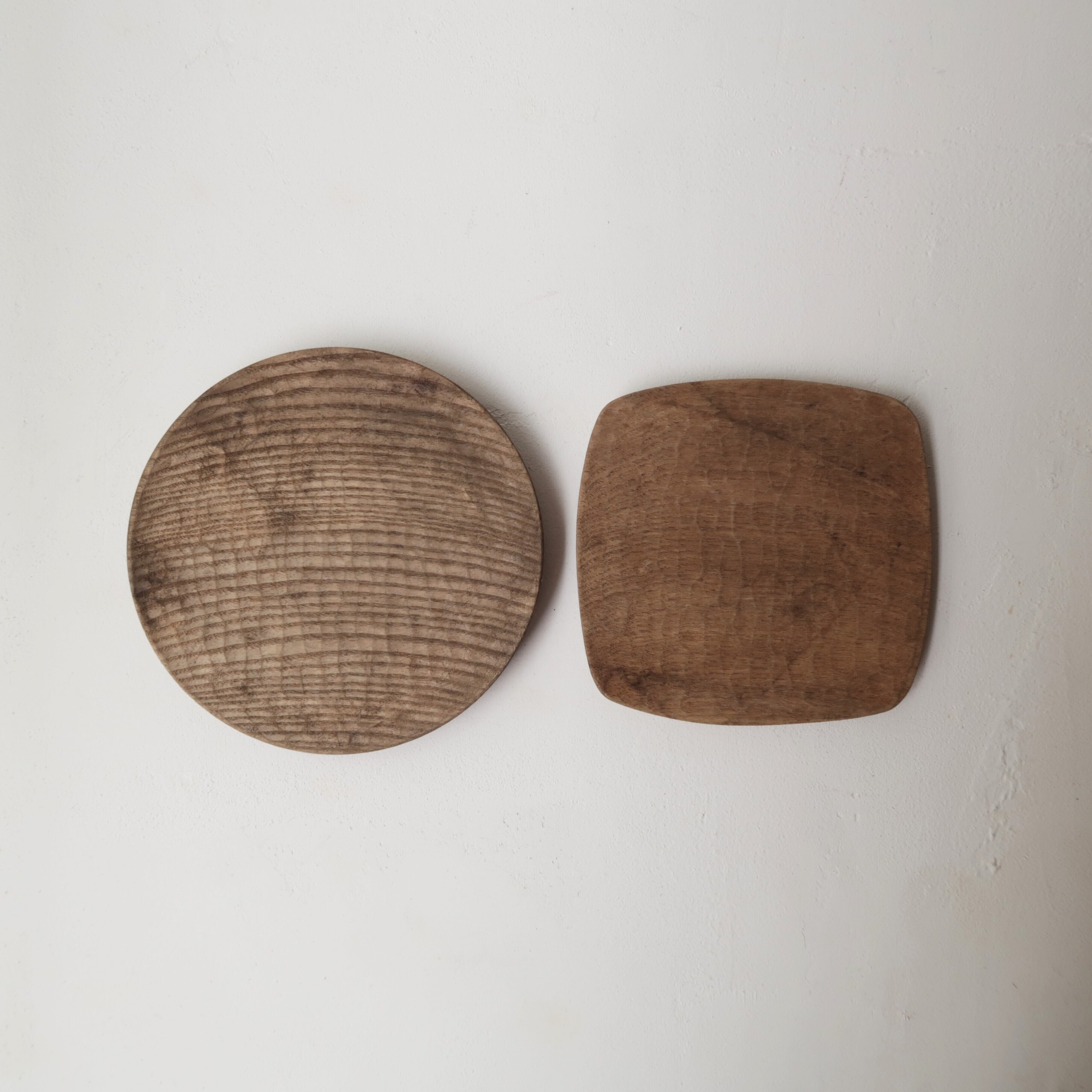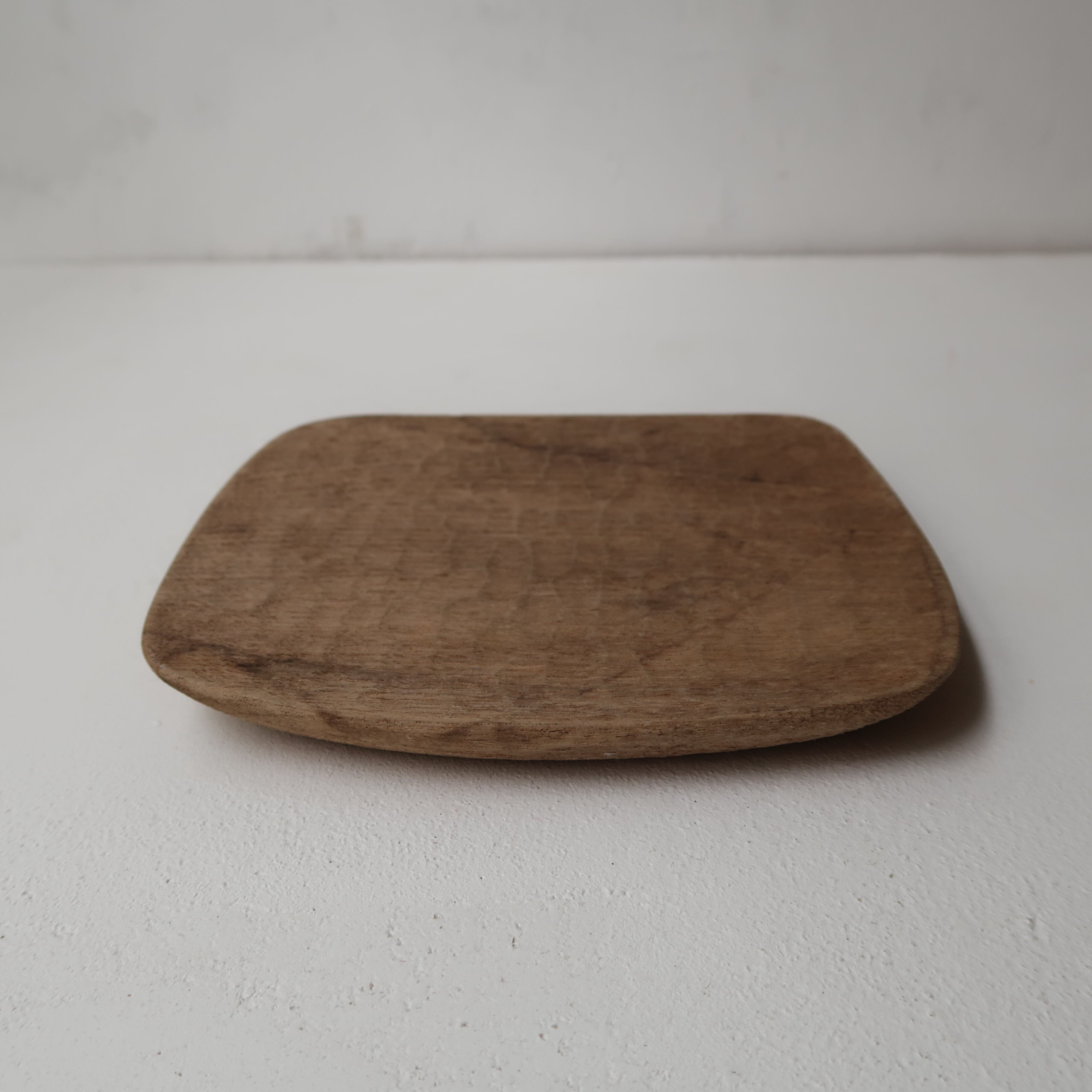 手彫りと思われる木のプレート。四角もあるんです。表面をよく見るとわかる、彫りのでこぼこがかわいい。晒されたざらりとした木の感じや、使いやすくくり抜かれていない木の厚みが、原始的な雰囲気。