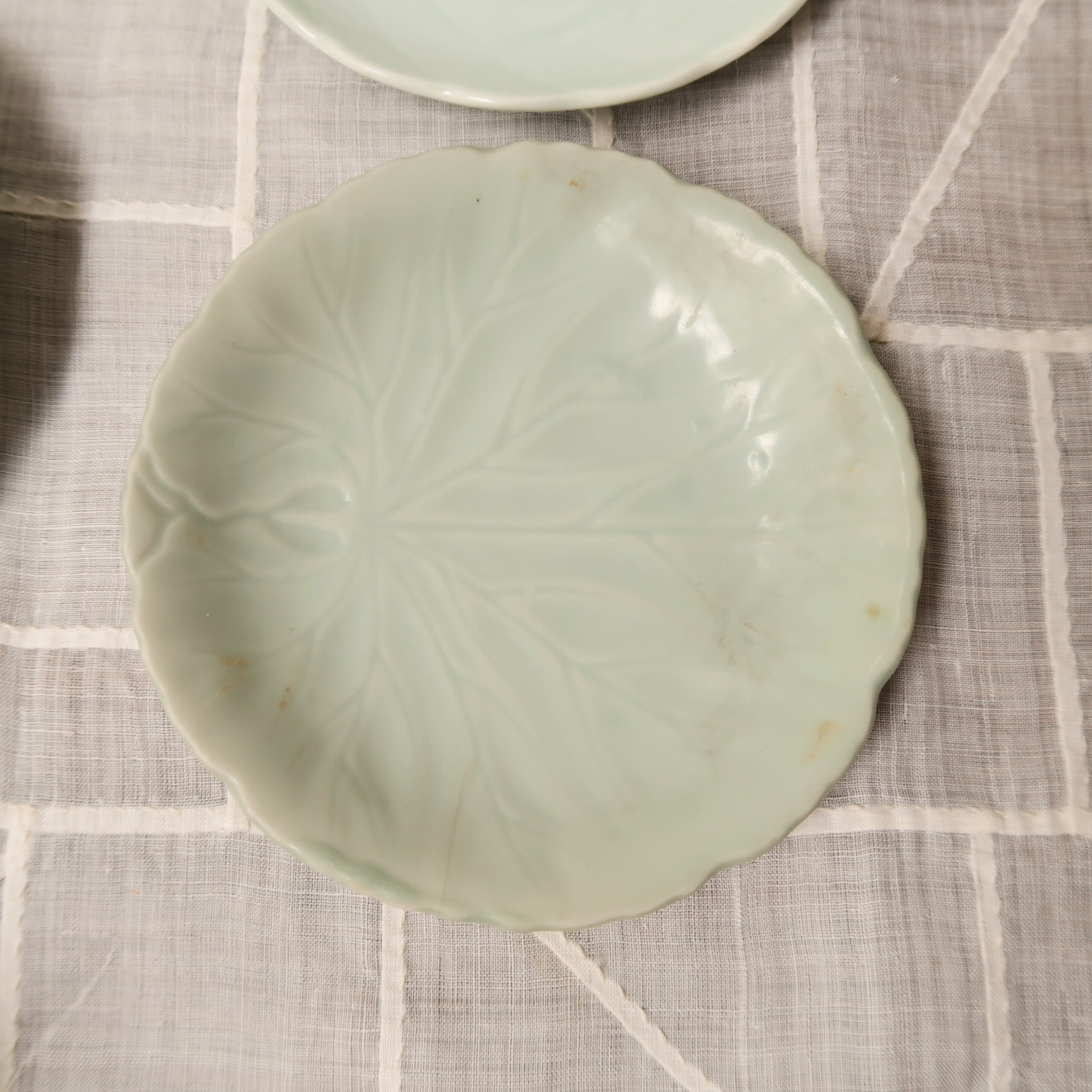 柄は、芙蓉が咲く横顔と、cの一枚は葵の葉のような模様。アジアンな食卓に、ぴったりのひとさらです。