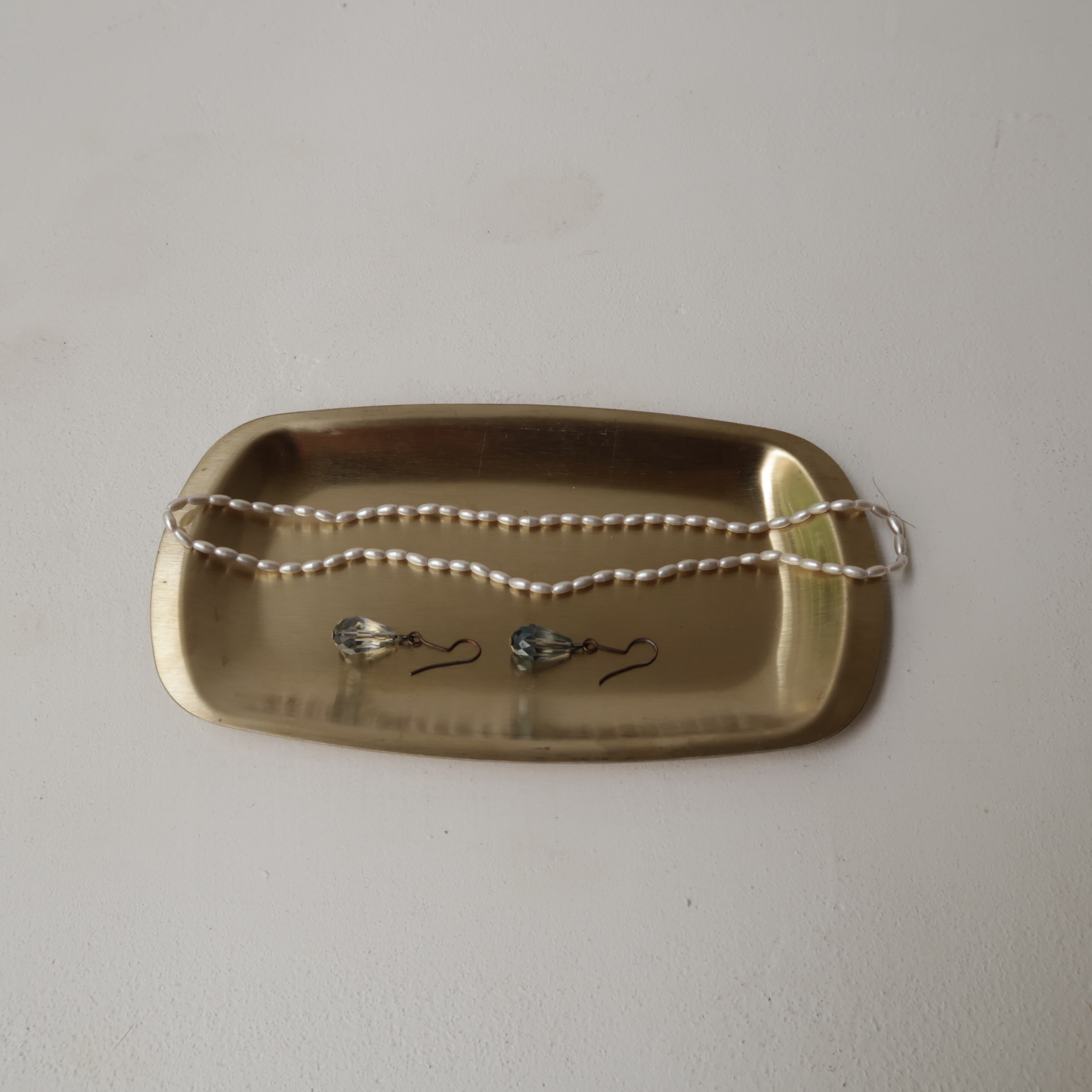 韓国で見つけたトレイ。カトラリーやおしぼりなどを置いていたのか、定かではありませんが、シンプルなかたちがかわいいのでセレクト。アクセサリーを並べたり、文房具を置いたり、お会計のトレイとしたり、なんでも使いやすそうです。