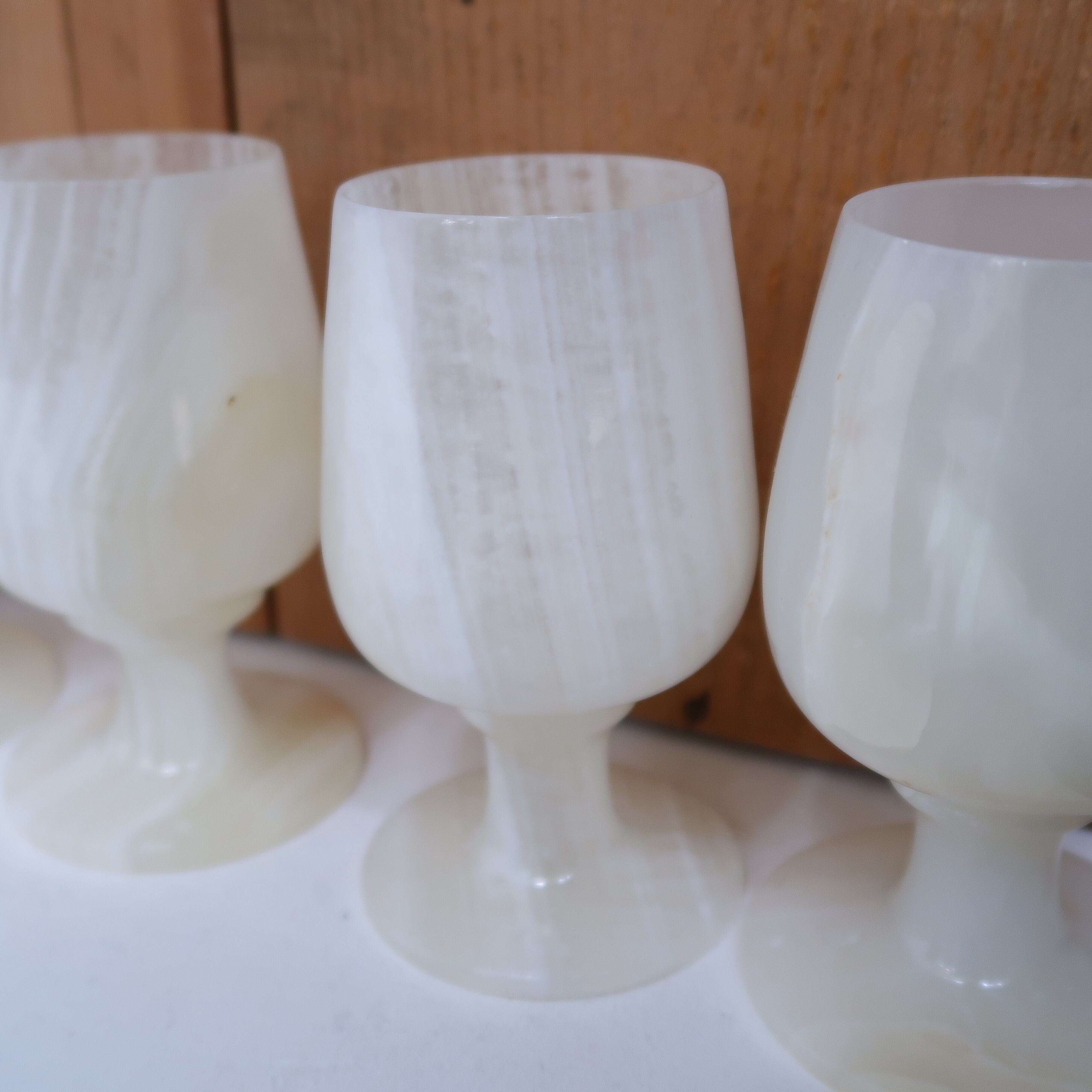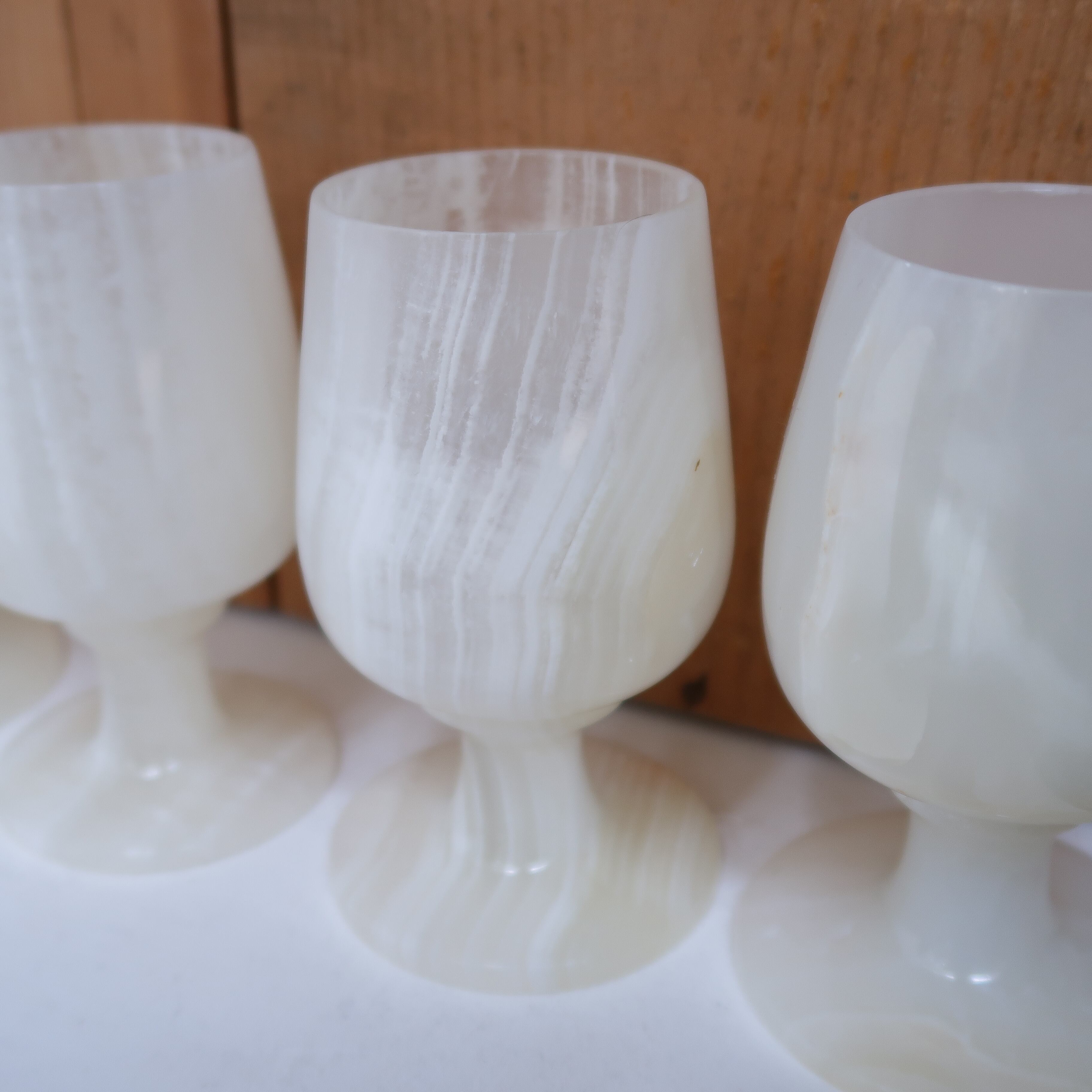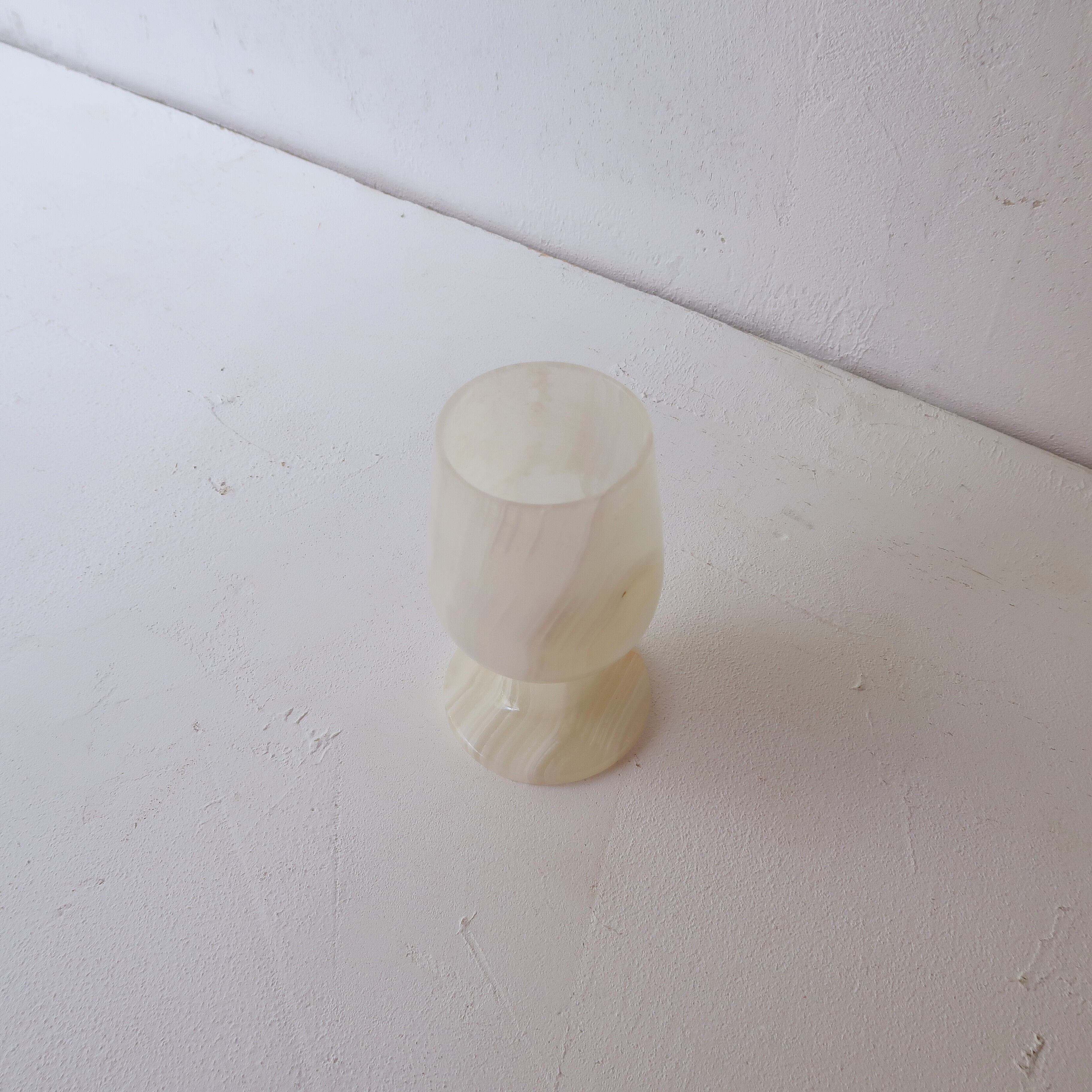 石の層が見えるくらい、白くて透明な石のゴブレット。光に当たると透けてきれいです。ピアスを引っ掛けておいたり、ネックレスを掛けたり。はたまた、キャンドルホルダーとしてもお使いいただけます。