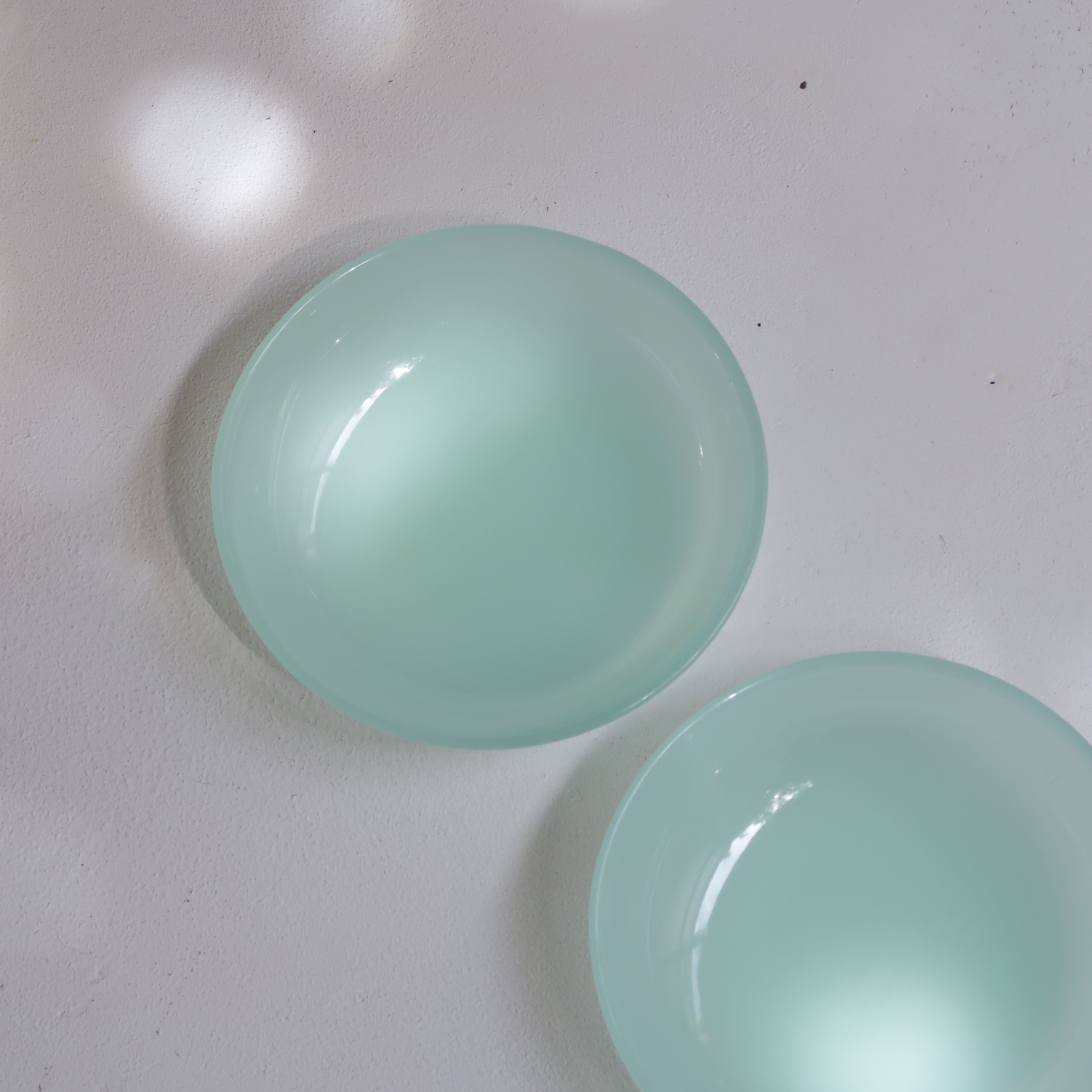 つるっとパステルなブルーグリーンのお皿。ぶどうやりんご、洋梨…秋の果物を載せてもよさそう。アクセサリートレイとしてもお使いいただけます。