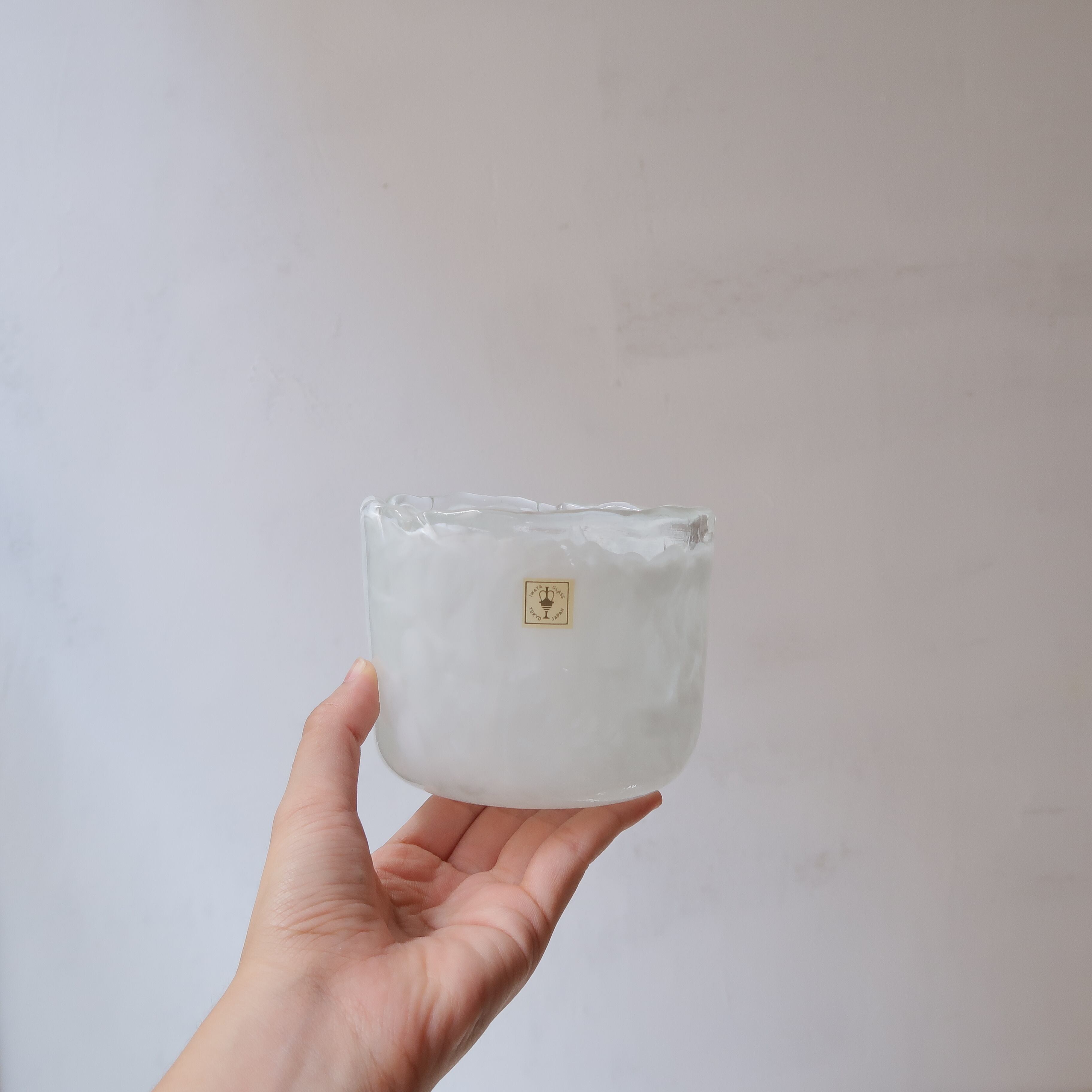 もとは花瓶だと思われるこちらのアイテム。白と透明のマーブルが、流れる雲のようでかわいい模様です。花瓶として使ってもよし、アクセサリーを置いてもよし、と思いセレクトしました。