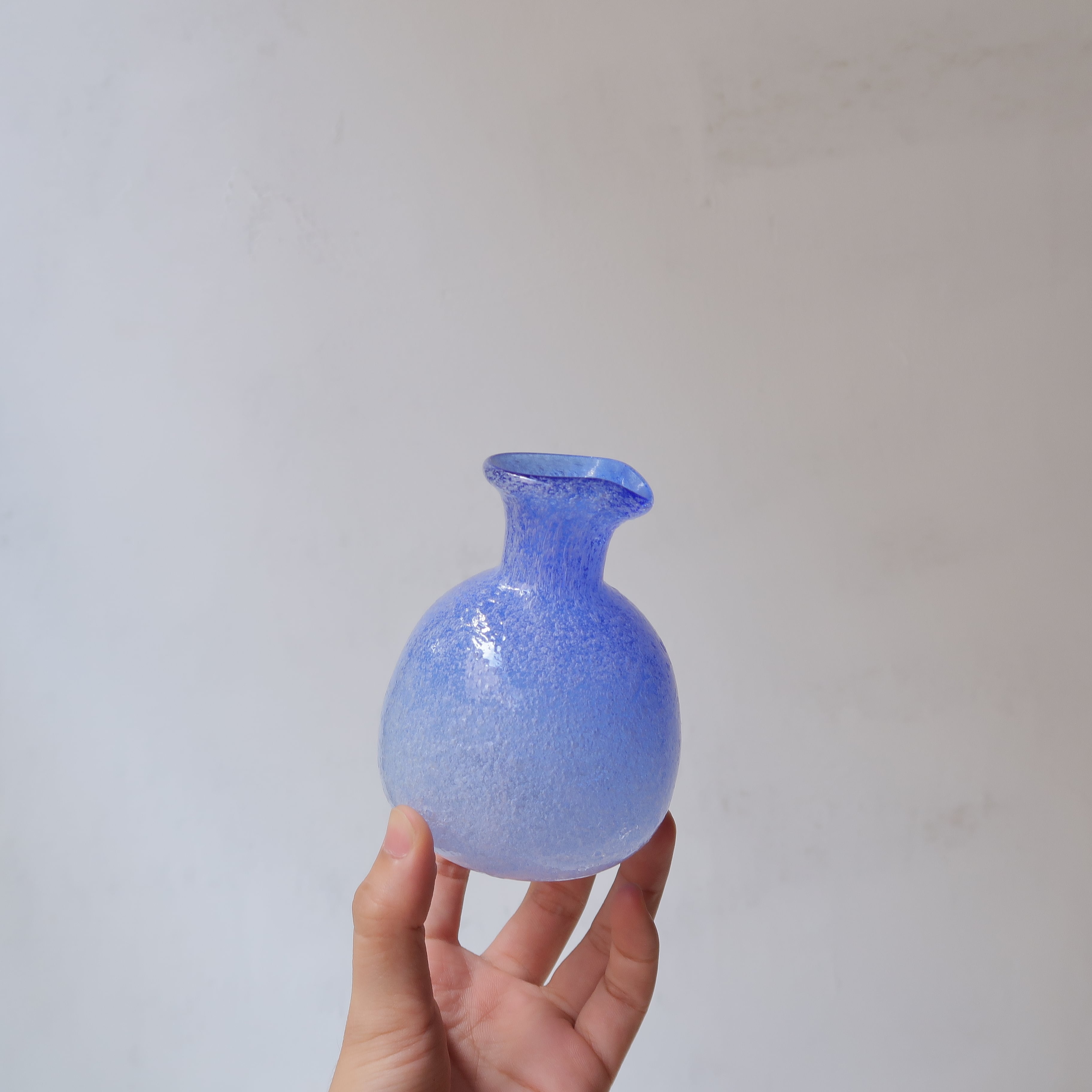 しゅわしゅわしたブルーのグラデーションがかわいいガラスの一輪挿し。徳利ですが、茎の細い黄色のお花を2輪くらい、ぴょんぴょんと生けたら、きっとかわいい。