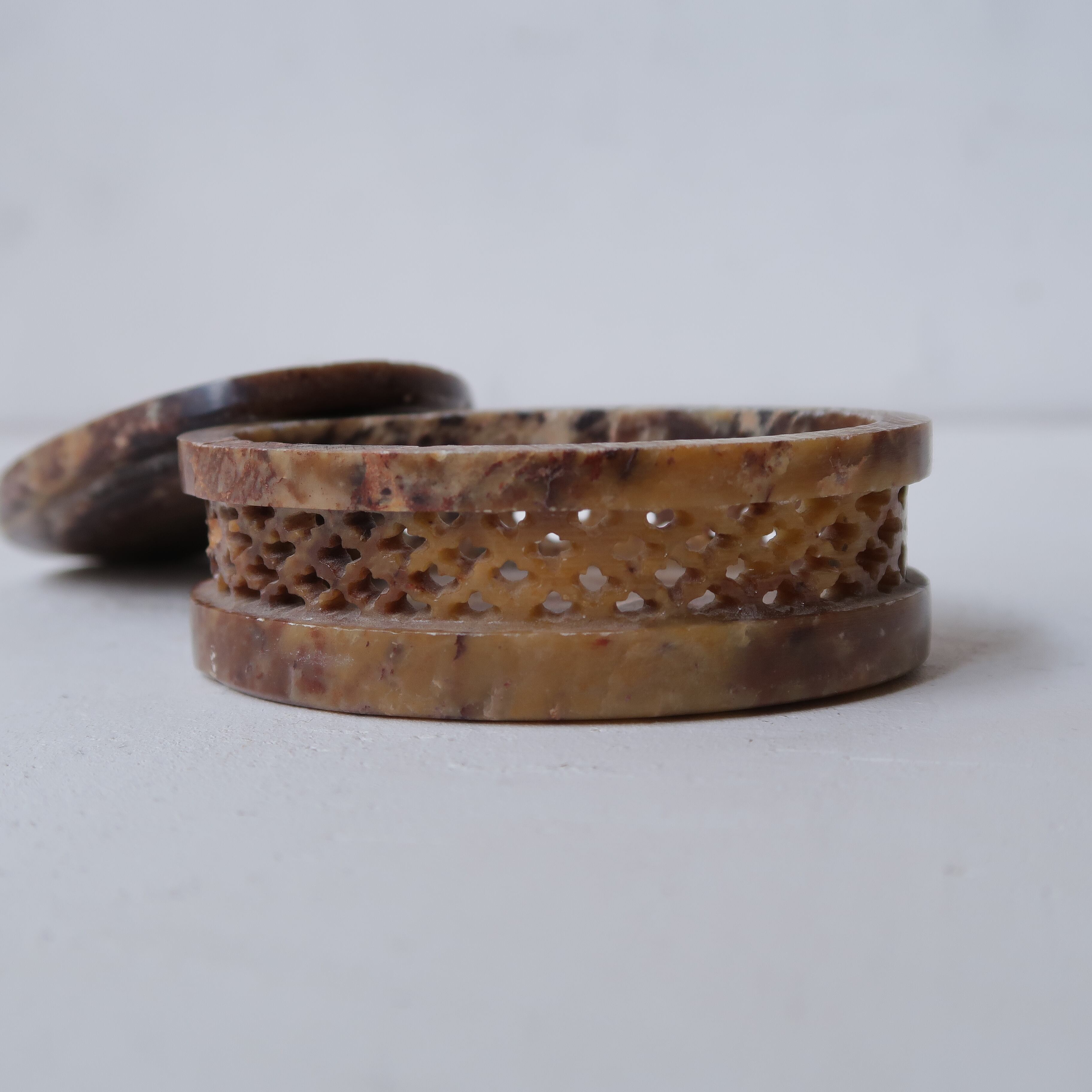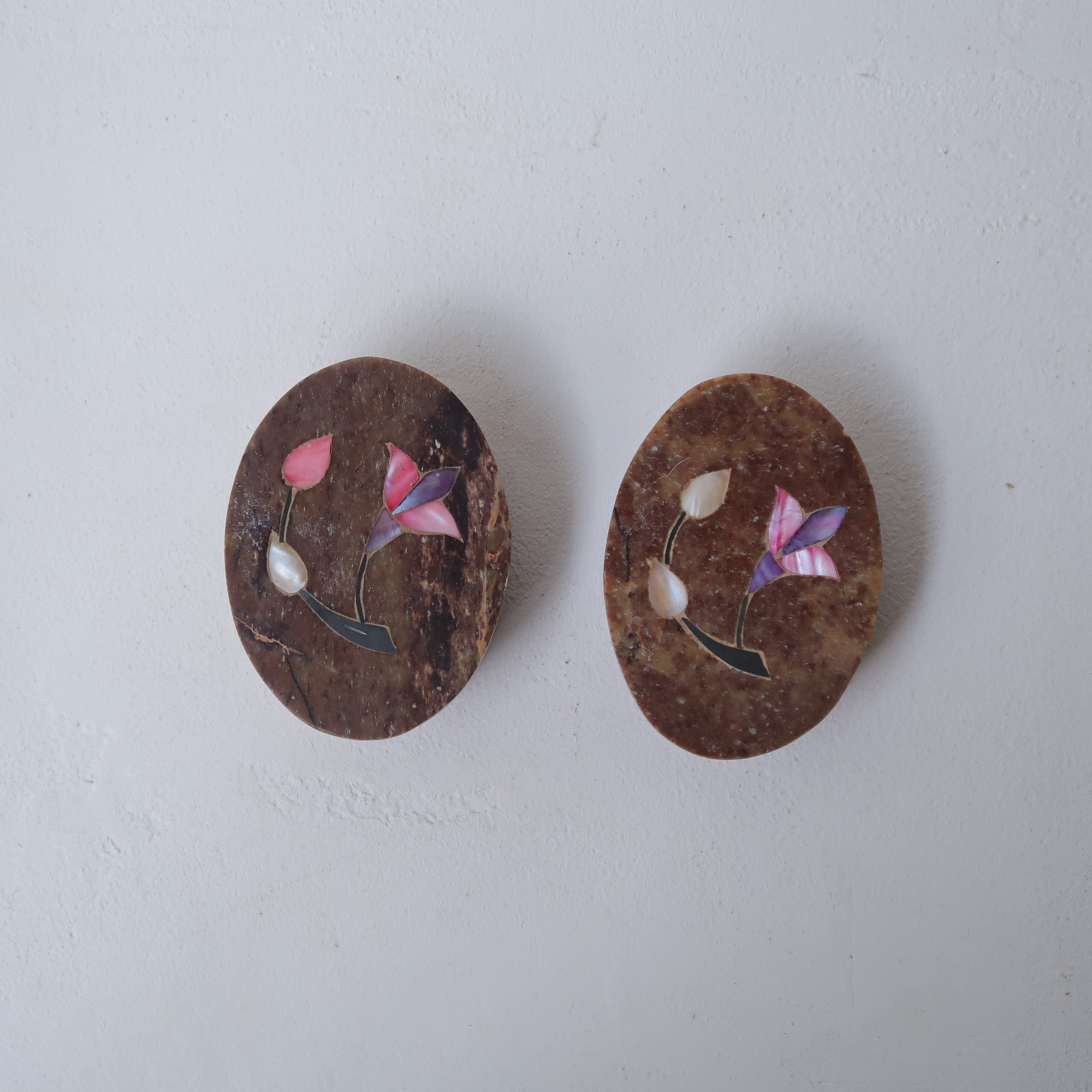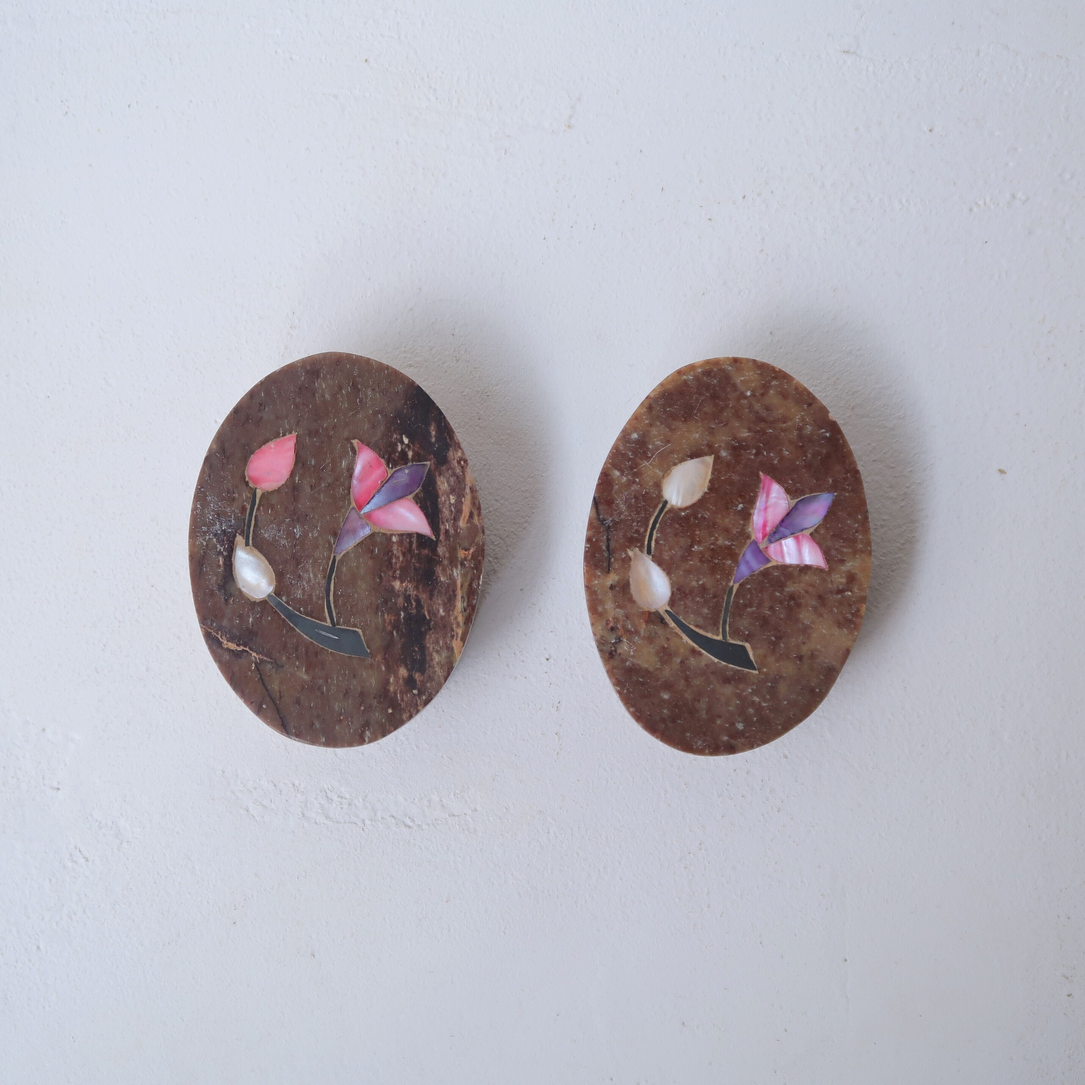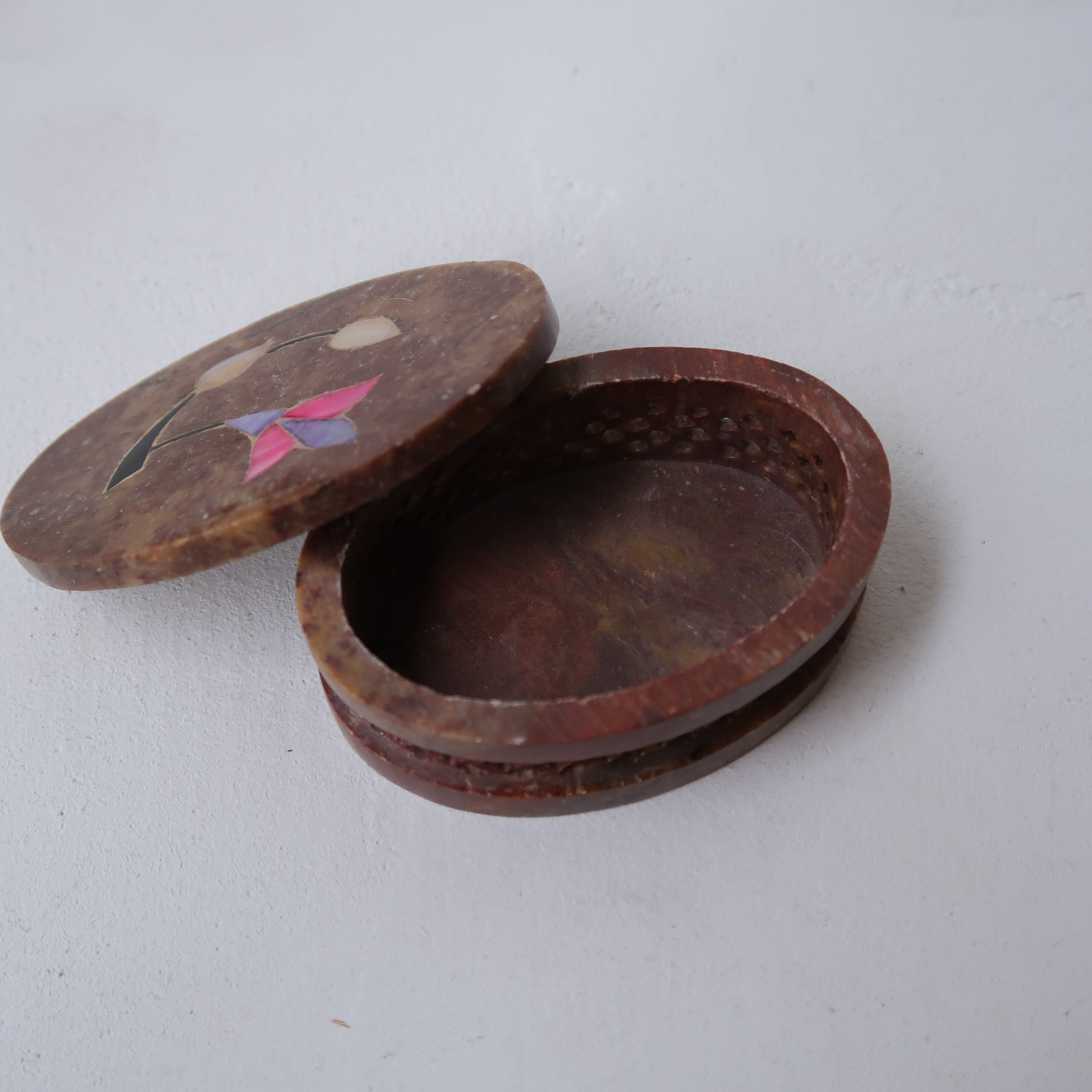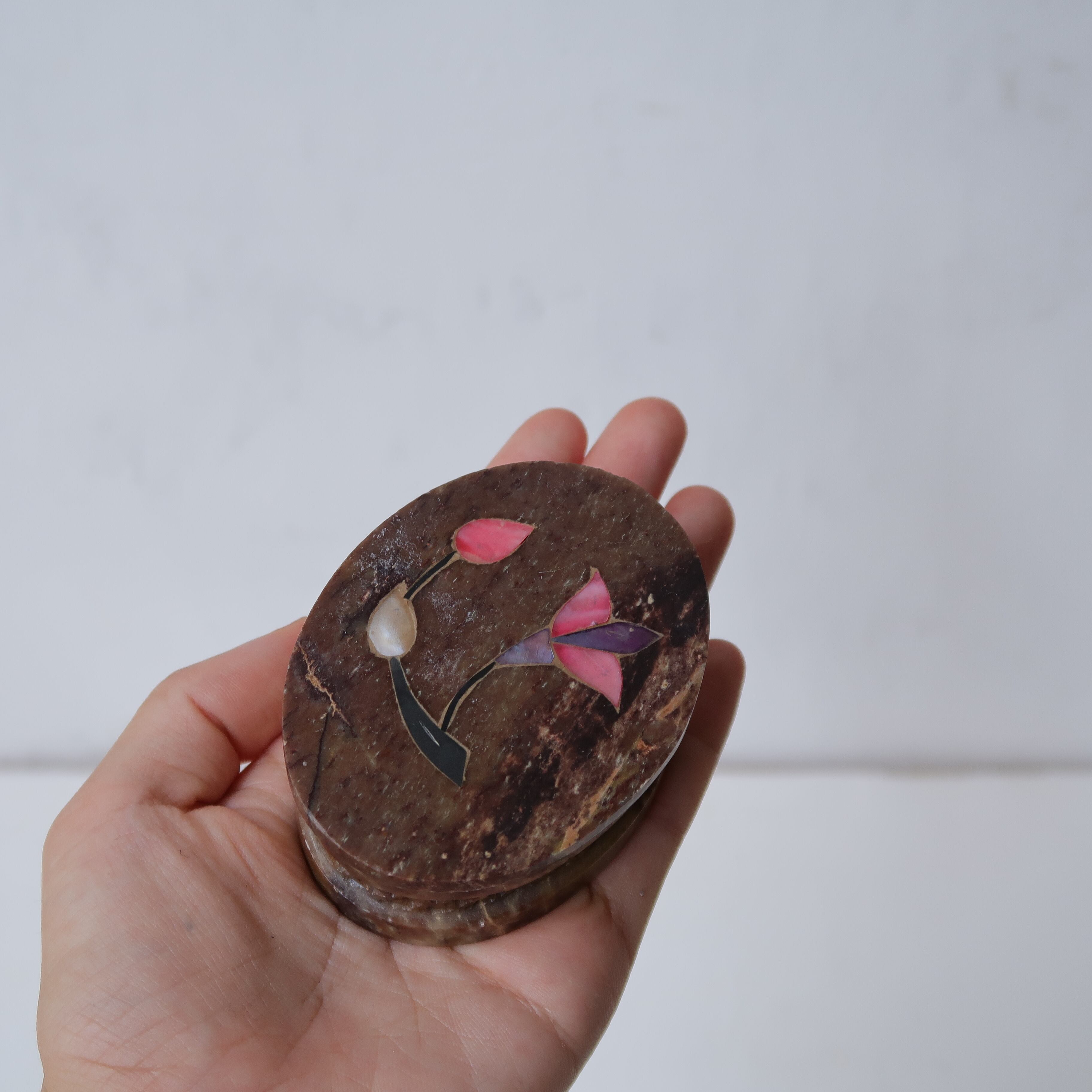 お花の象嵌がほどこされたちいさなジュエリーケース。以前販売していたものより、ひと回り大きいアイテムです。