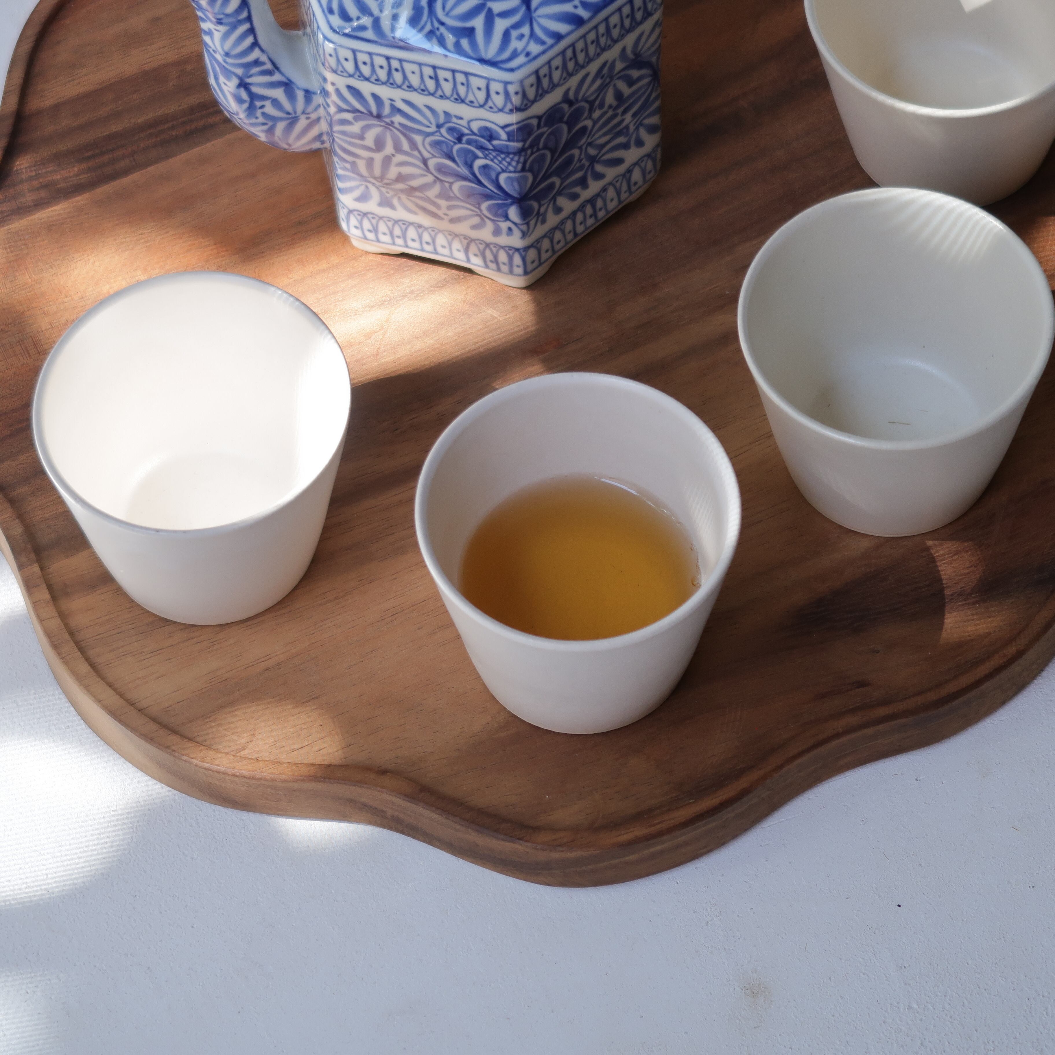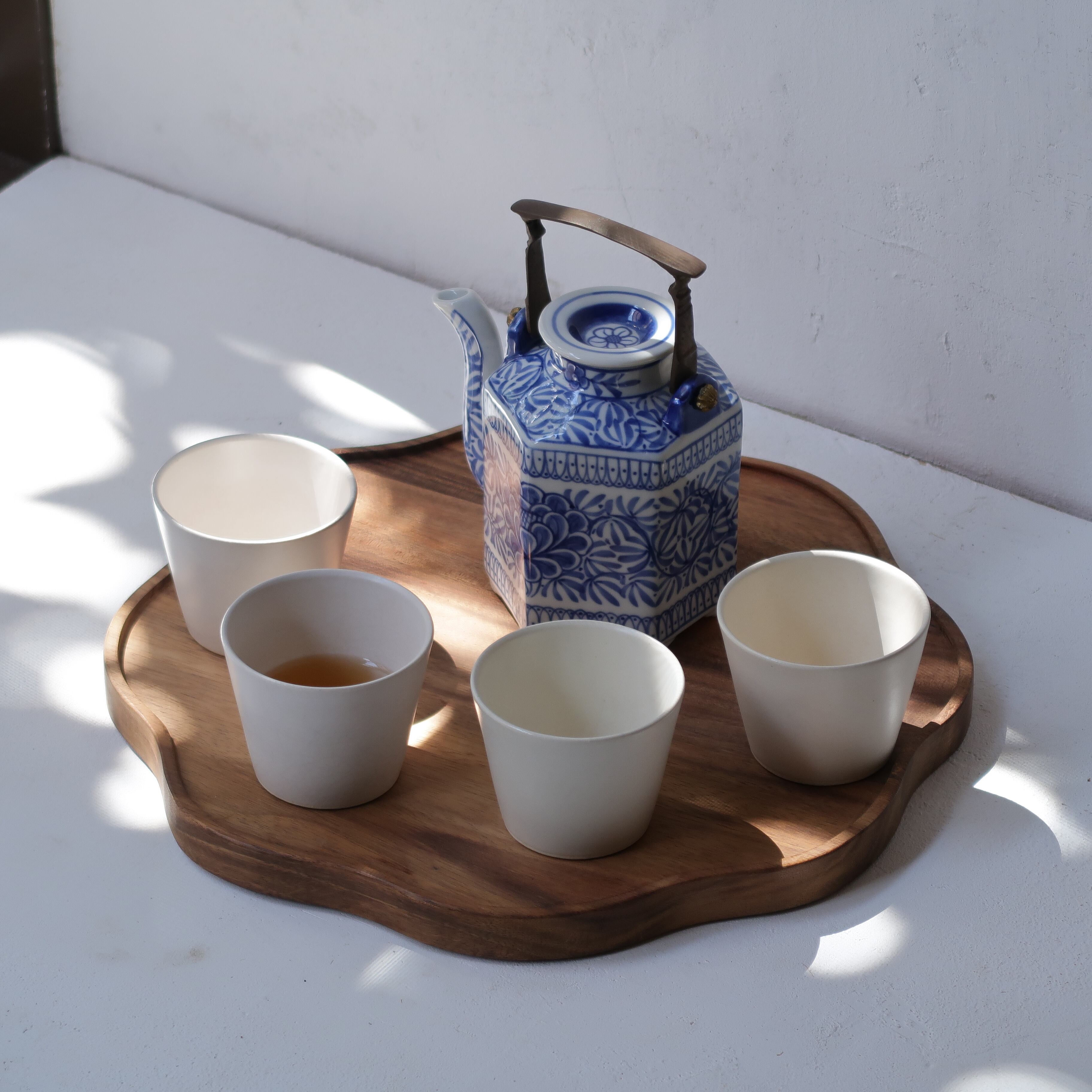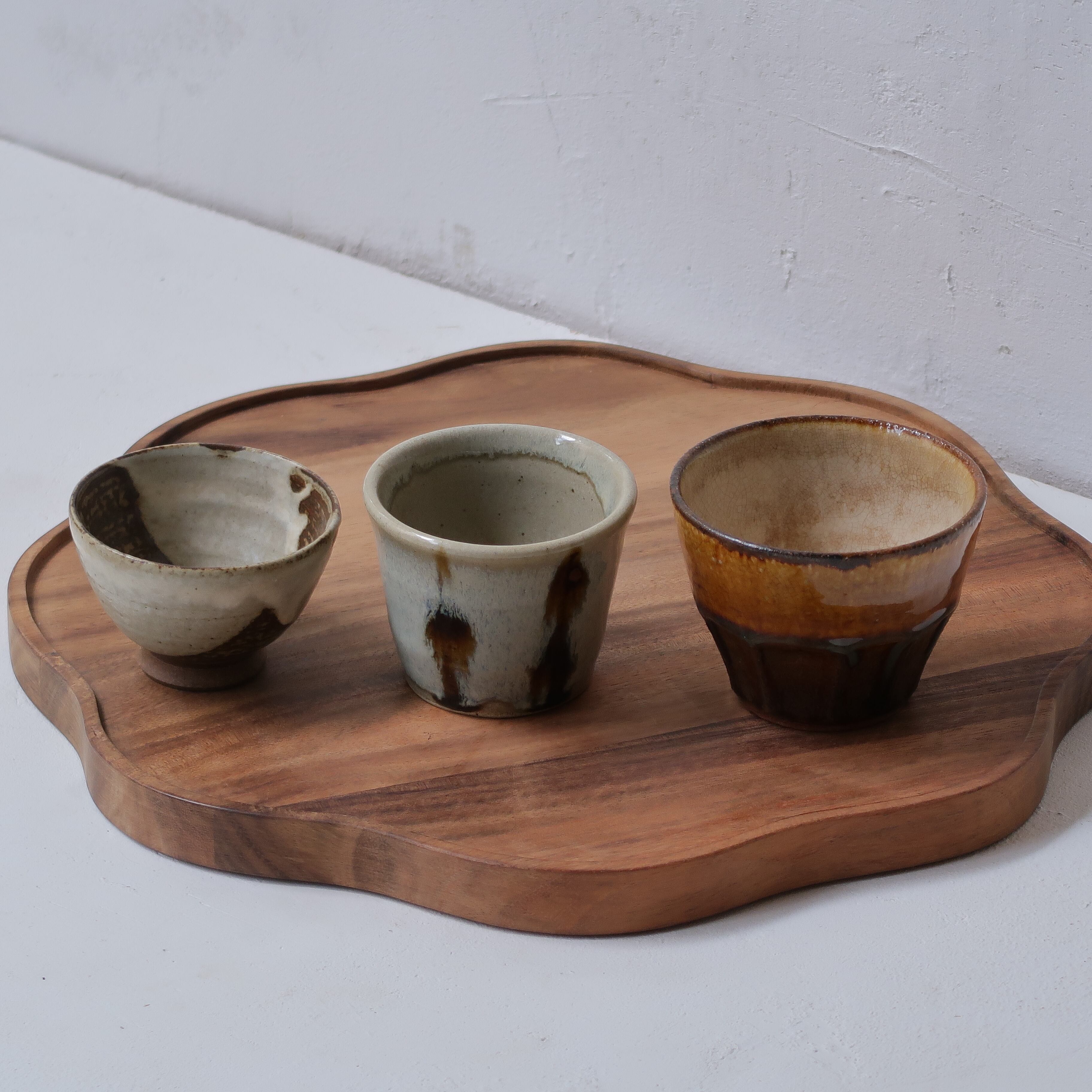 なみなみとしたお花型がかわいい木製のトレイ。厚みがあるぶん、少し重みもありますが、立体的なフォルムがディスプレイにも効いてきます。木目を縦に使っても、横に使っても。ティータイムや、1人分のお食事のトレイとしてなど、活躍してくれそうです。