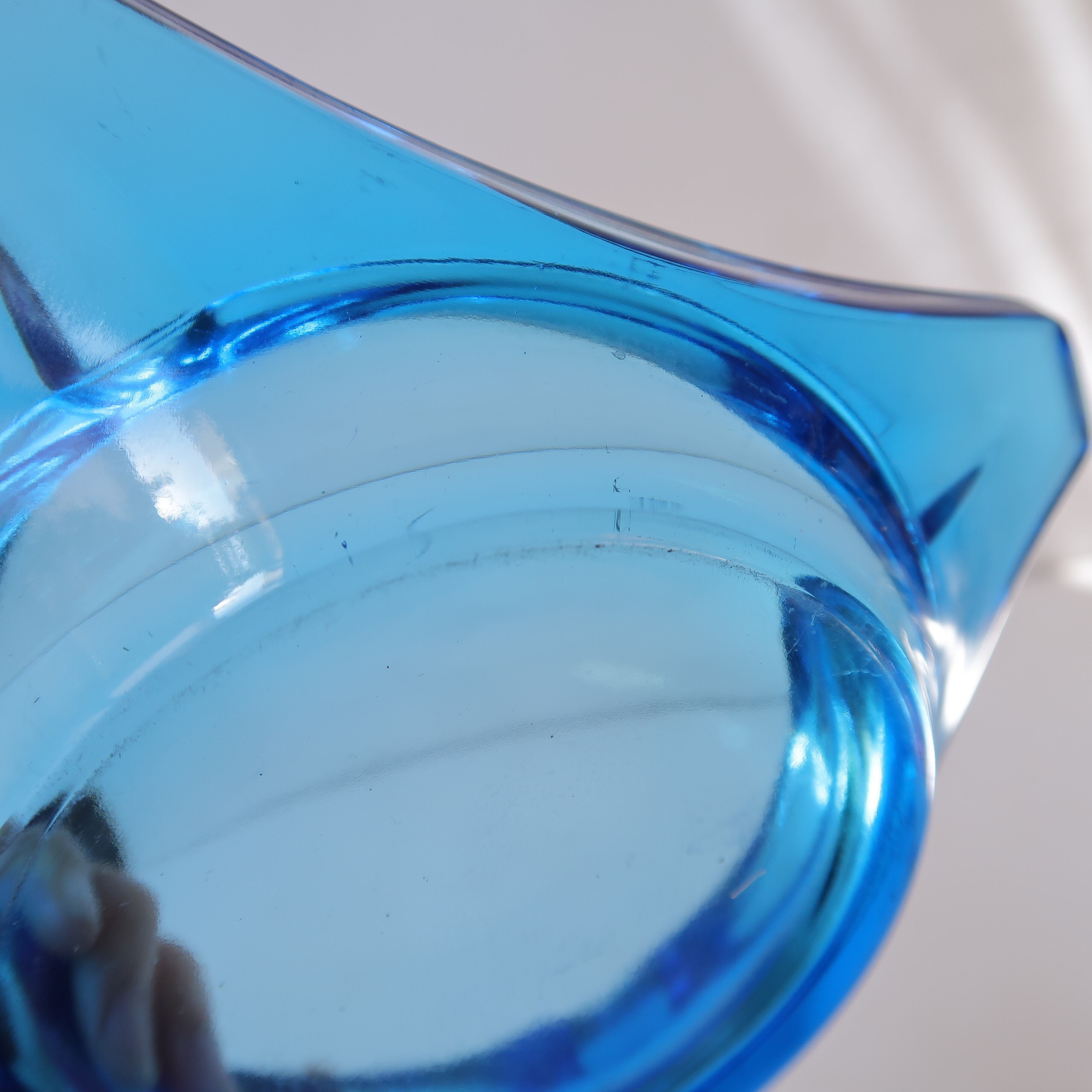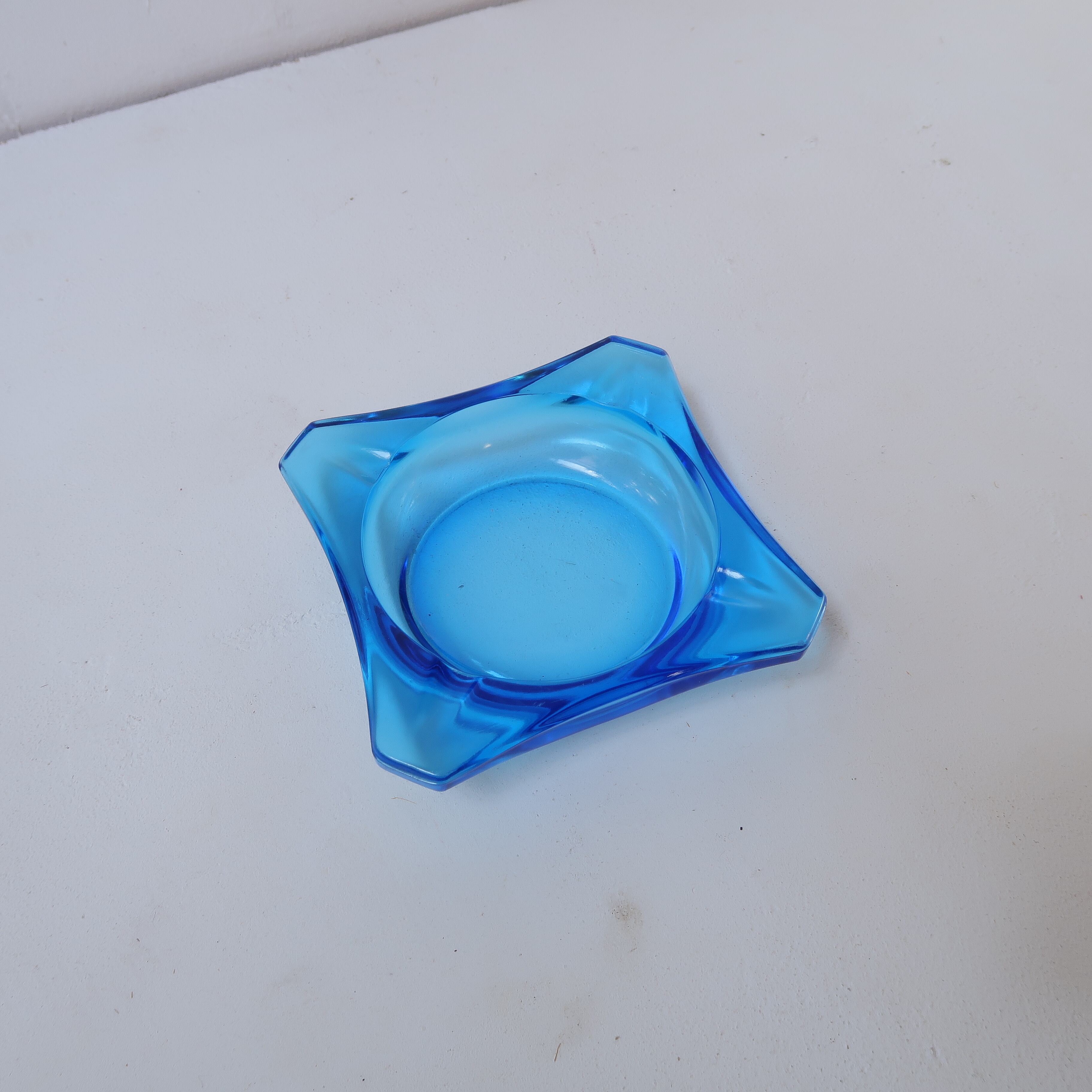 透きとおるブルーが爽やかなアッシュトレイ。厚みのあるガラスで、存在感があります。アクセサリーを入れてトレイとして、玄関先に置いて、などなどお使いいただけそうです。