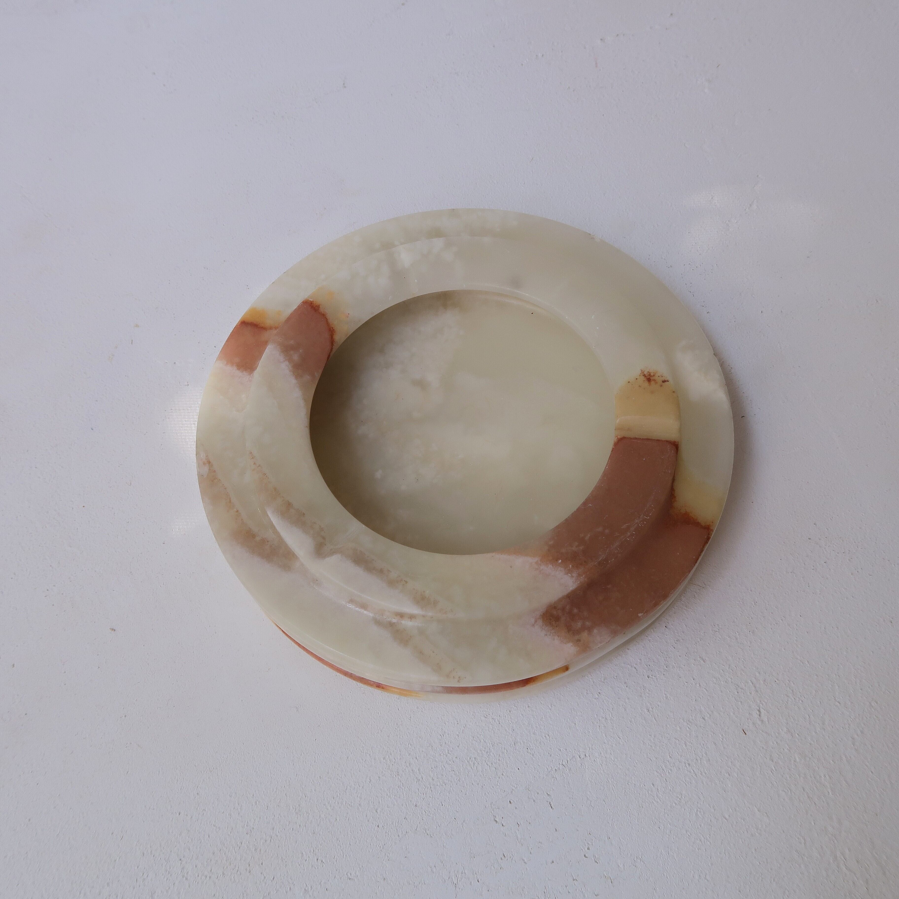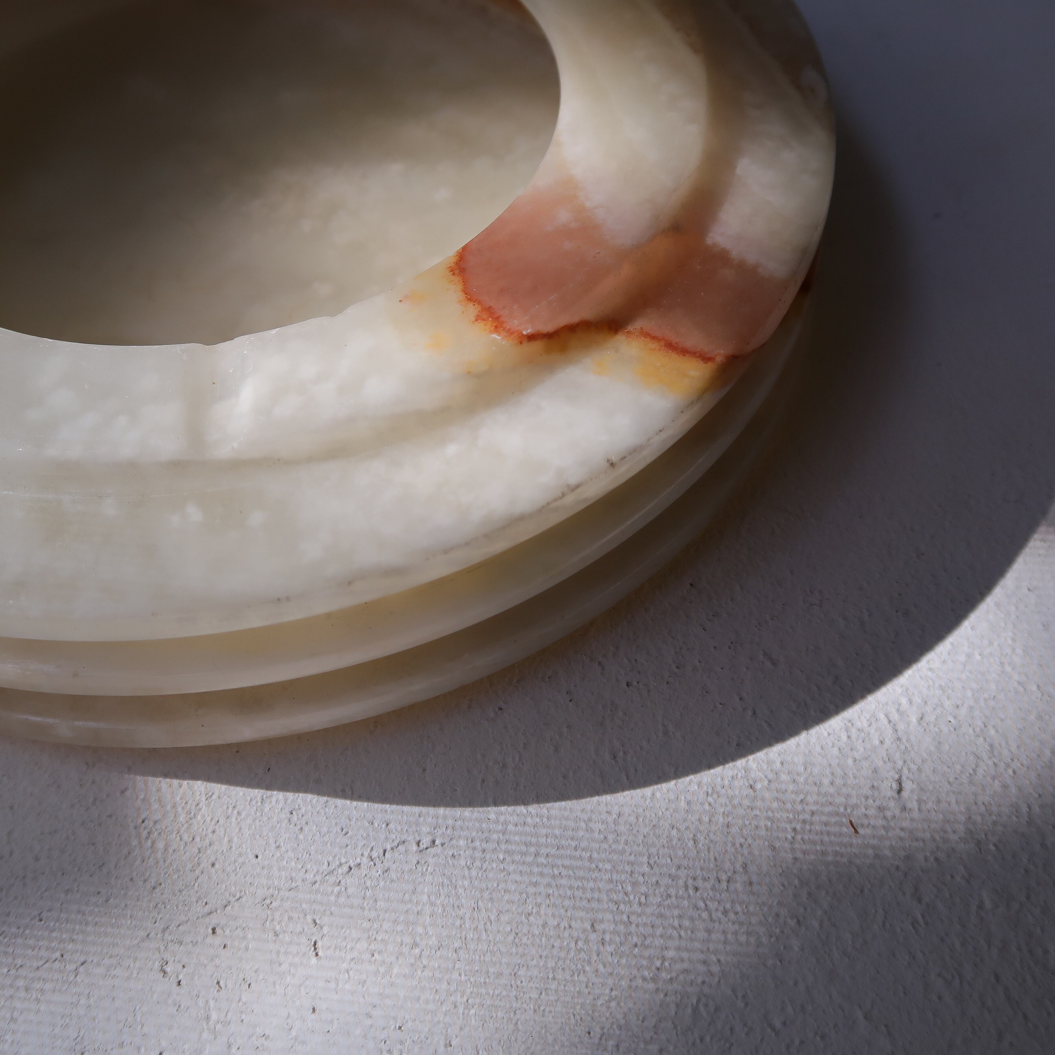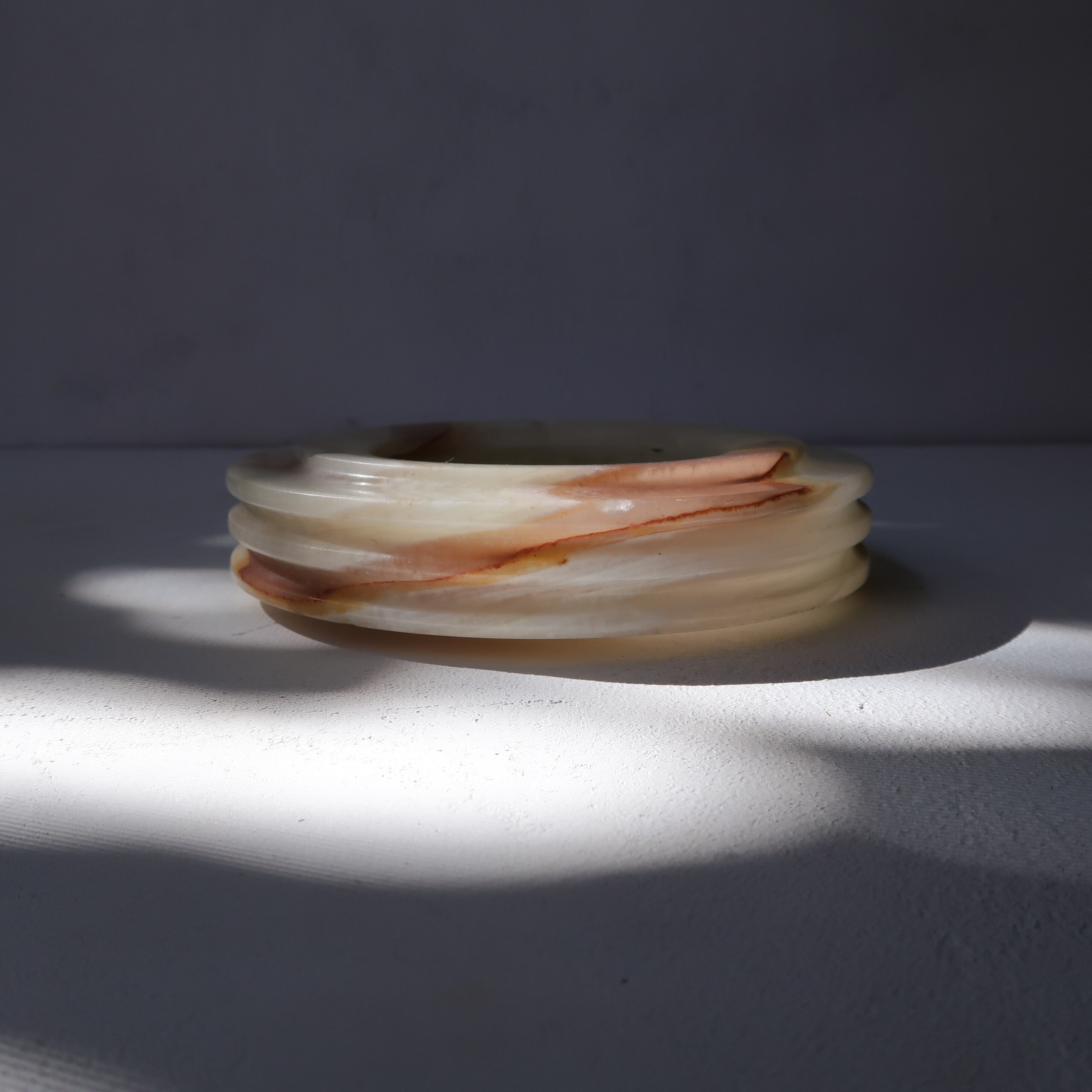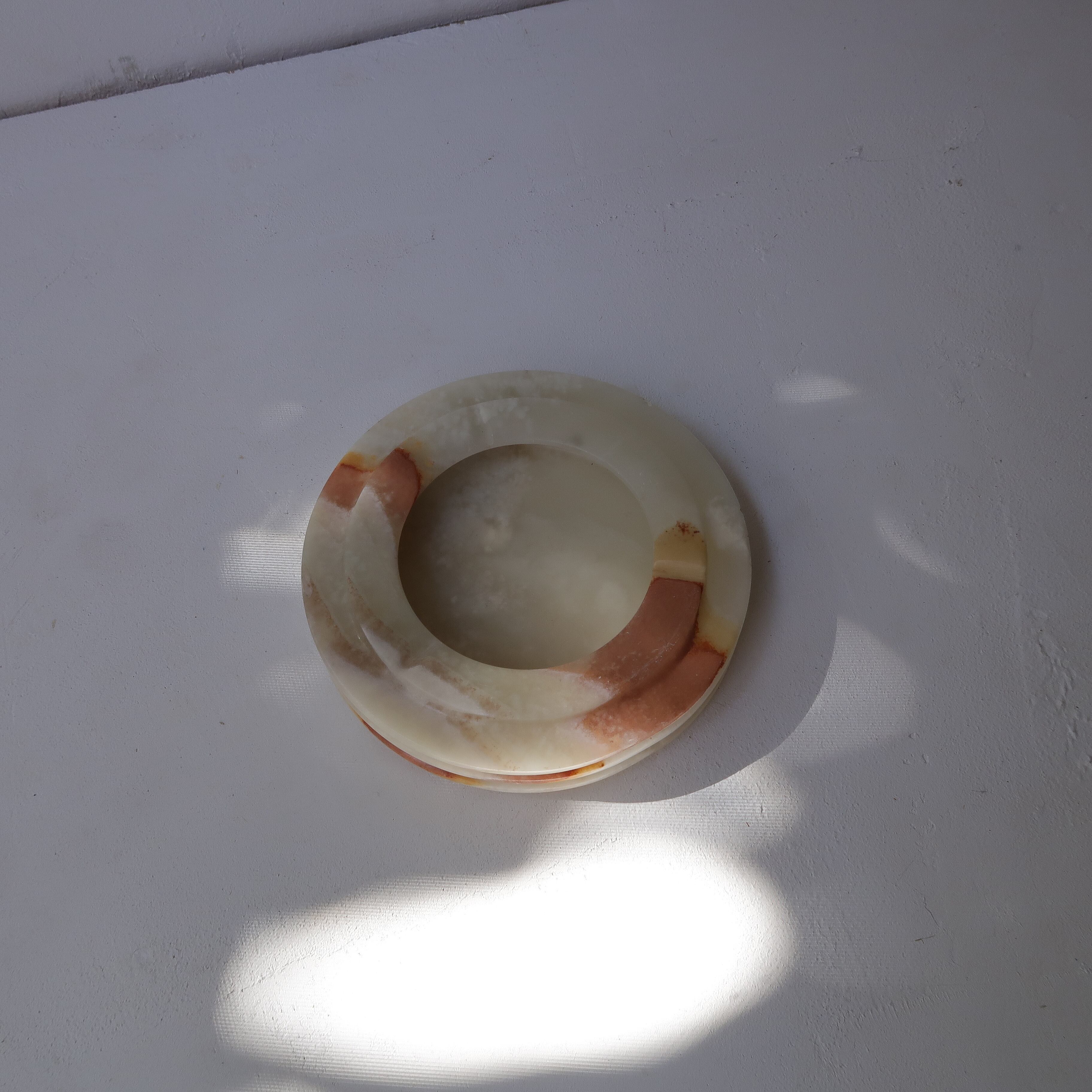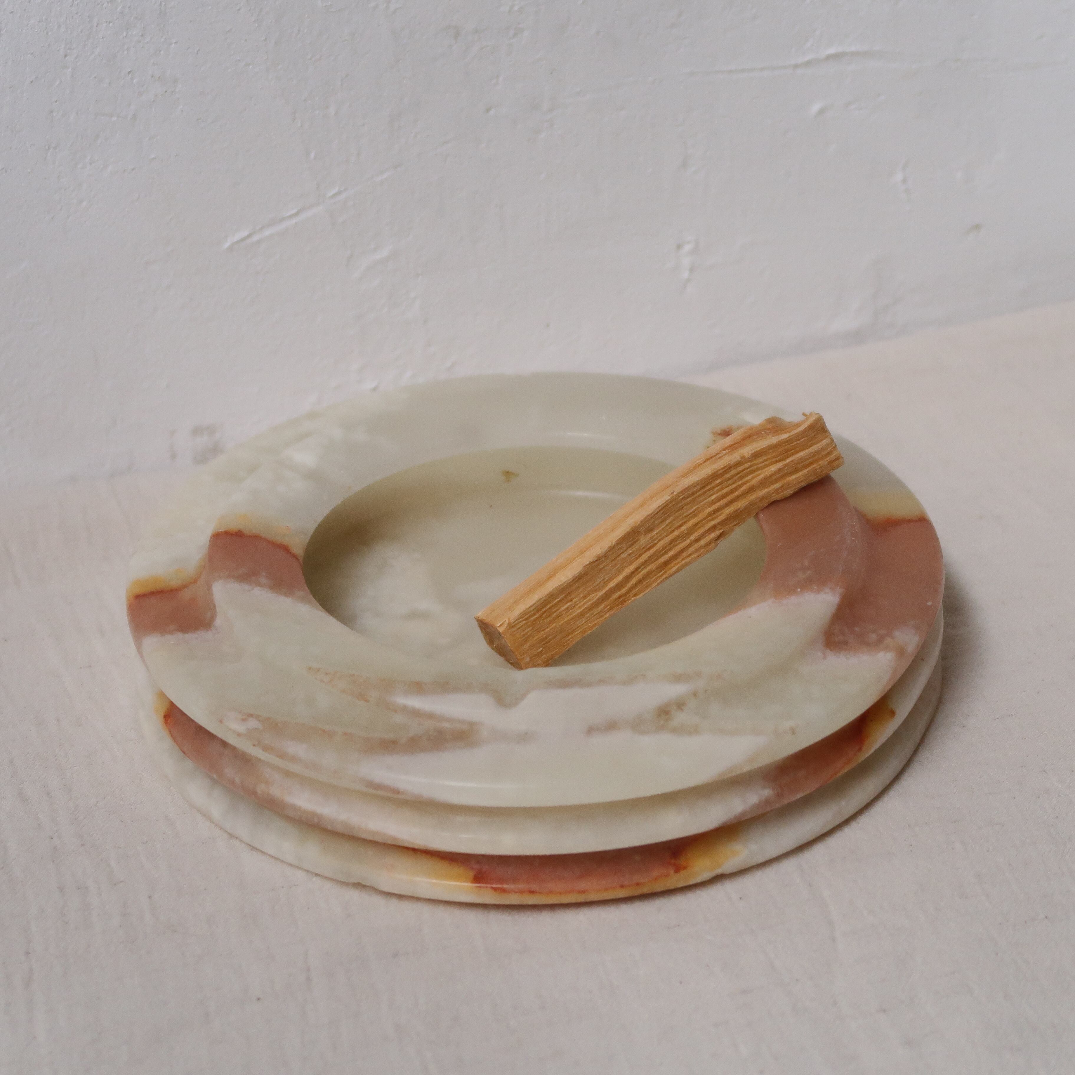 大きくて重たい、石のアッシュトレイ。全体的にマットで、両端のブラウンがなんだか愛らしい。側面は段々になっていながら、浅めなのでいろいろと飾りやすそう。パロサントやアクセサリーなど、この秋のインテリアアイテムに。