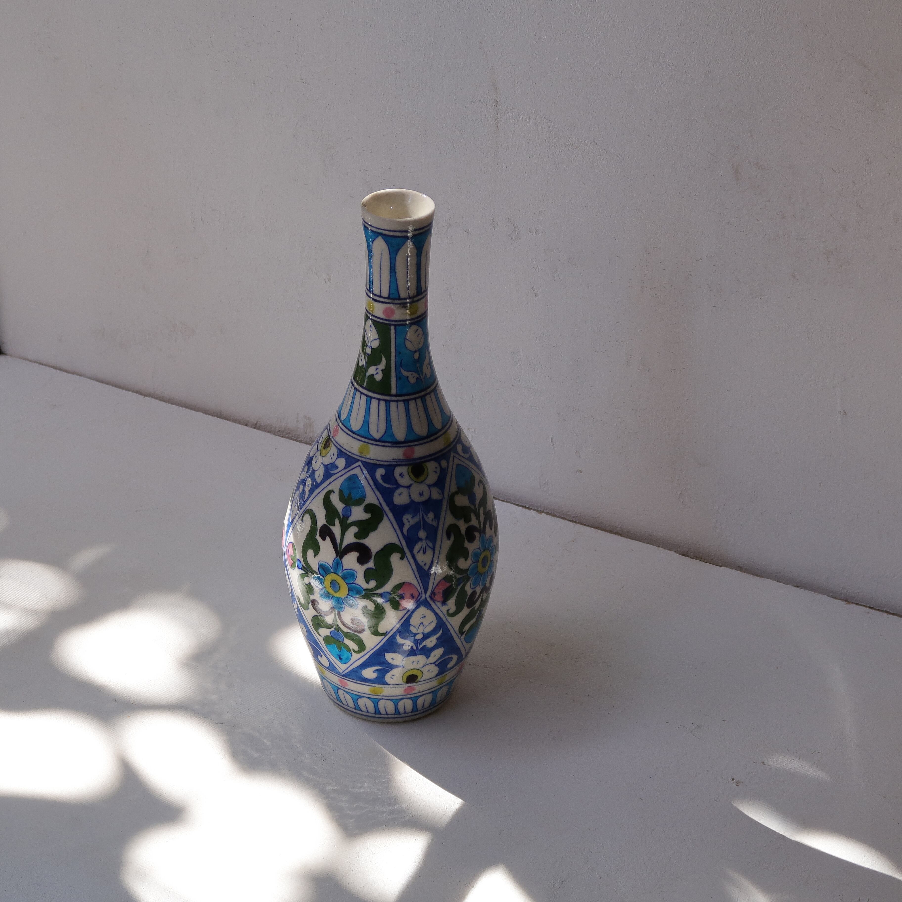 青、緑、ピンク、黄色。鮮やかな色合いで草花が描かれた陶器花瓶。この、ぱきっとした色合いと模様に惹かれてセレクトしました。