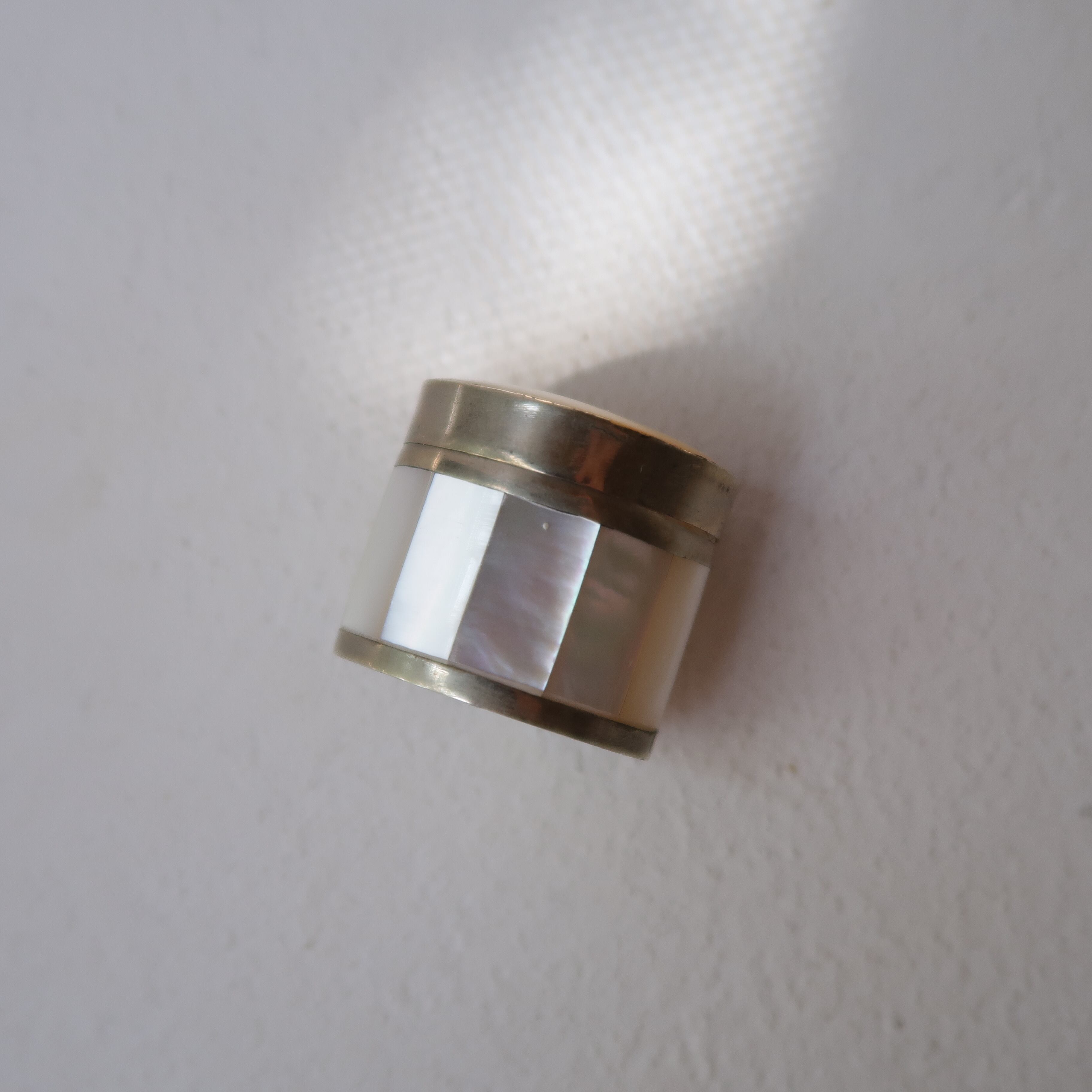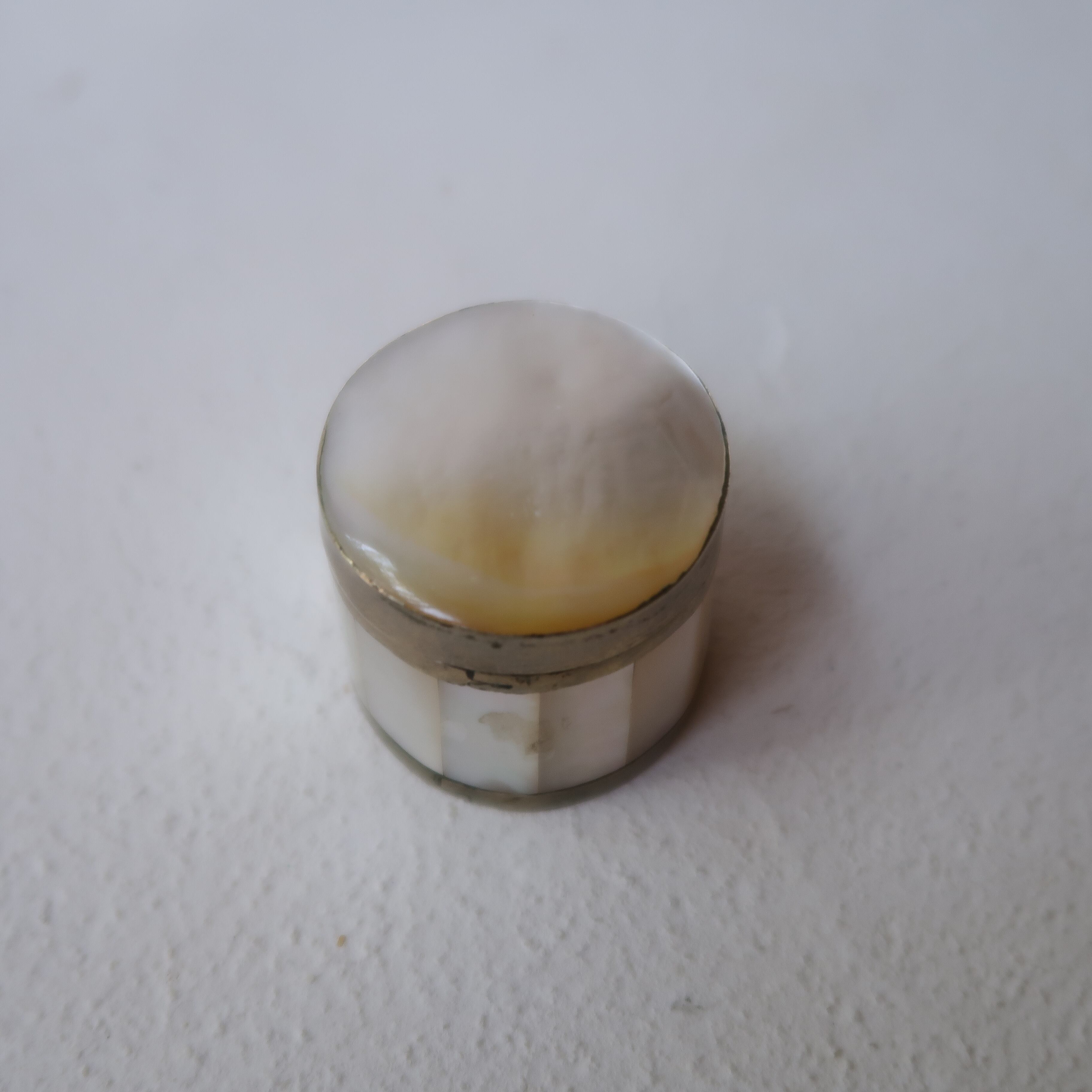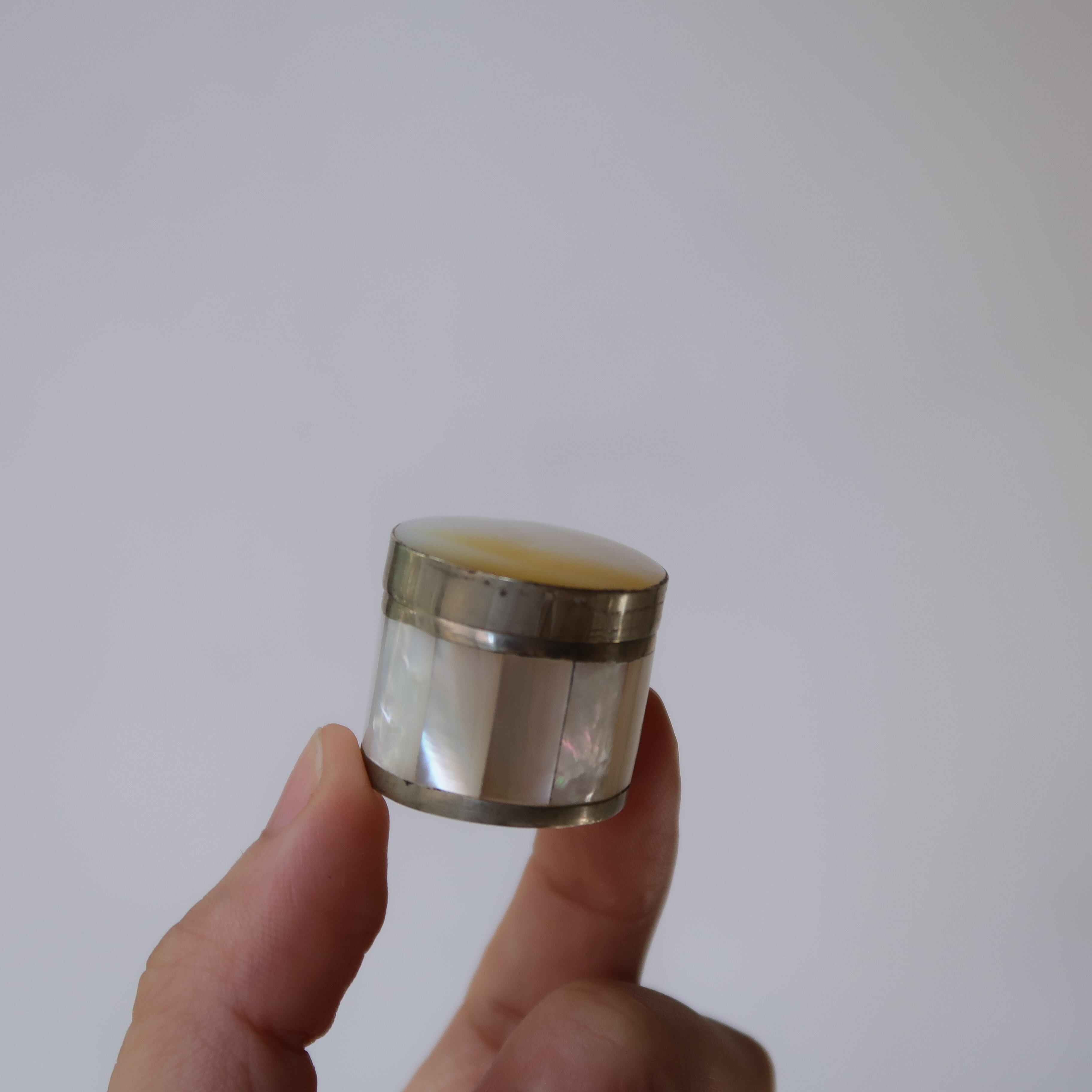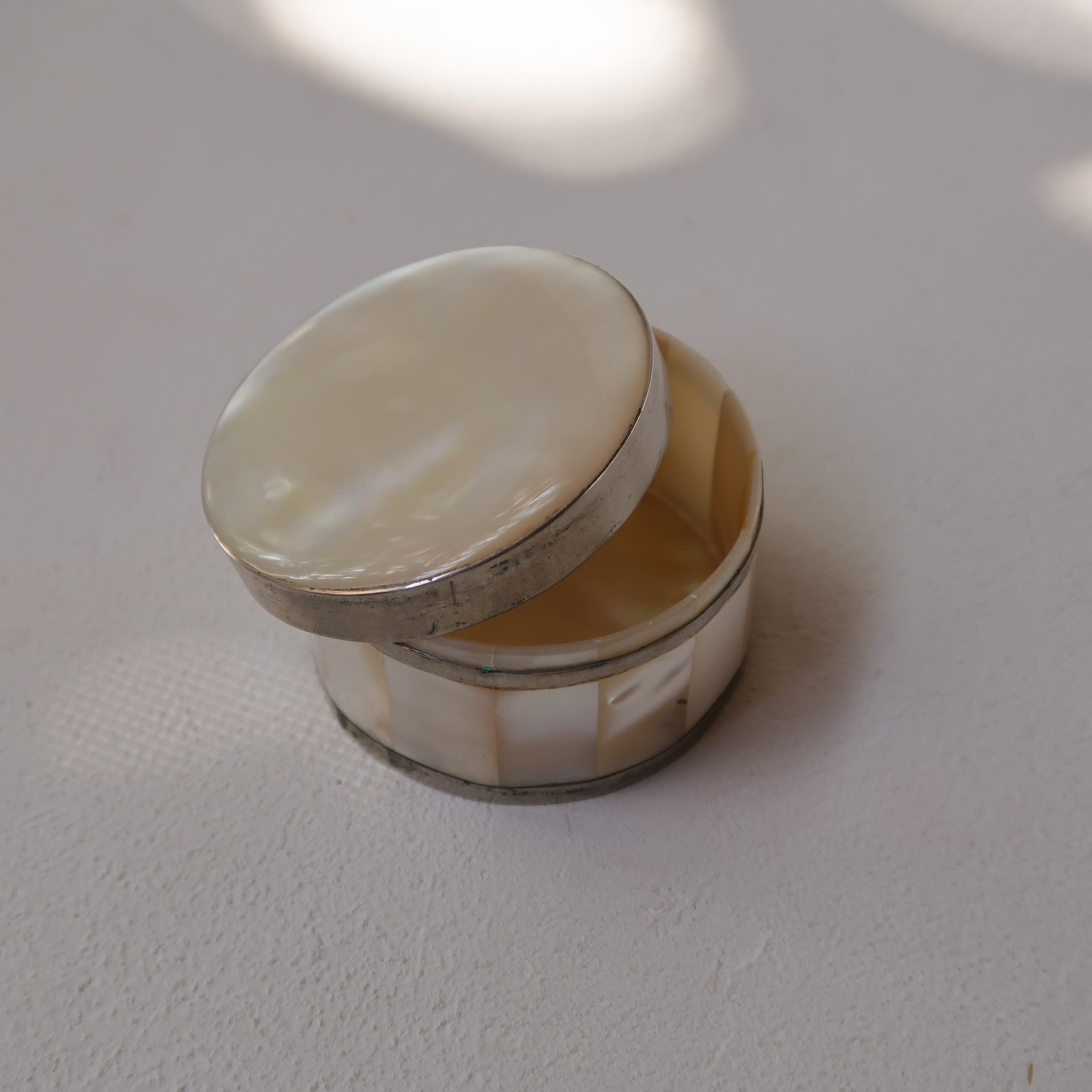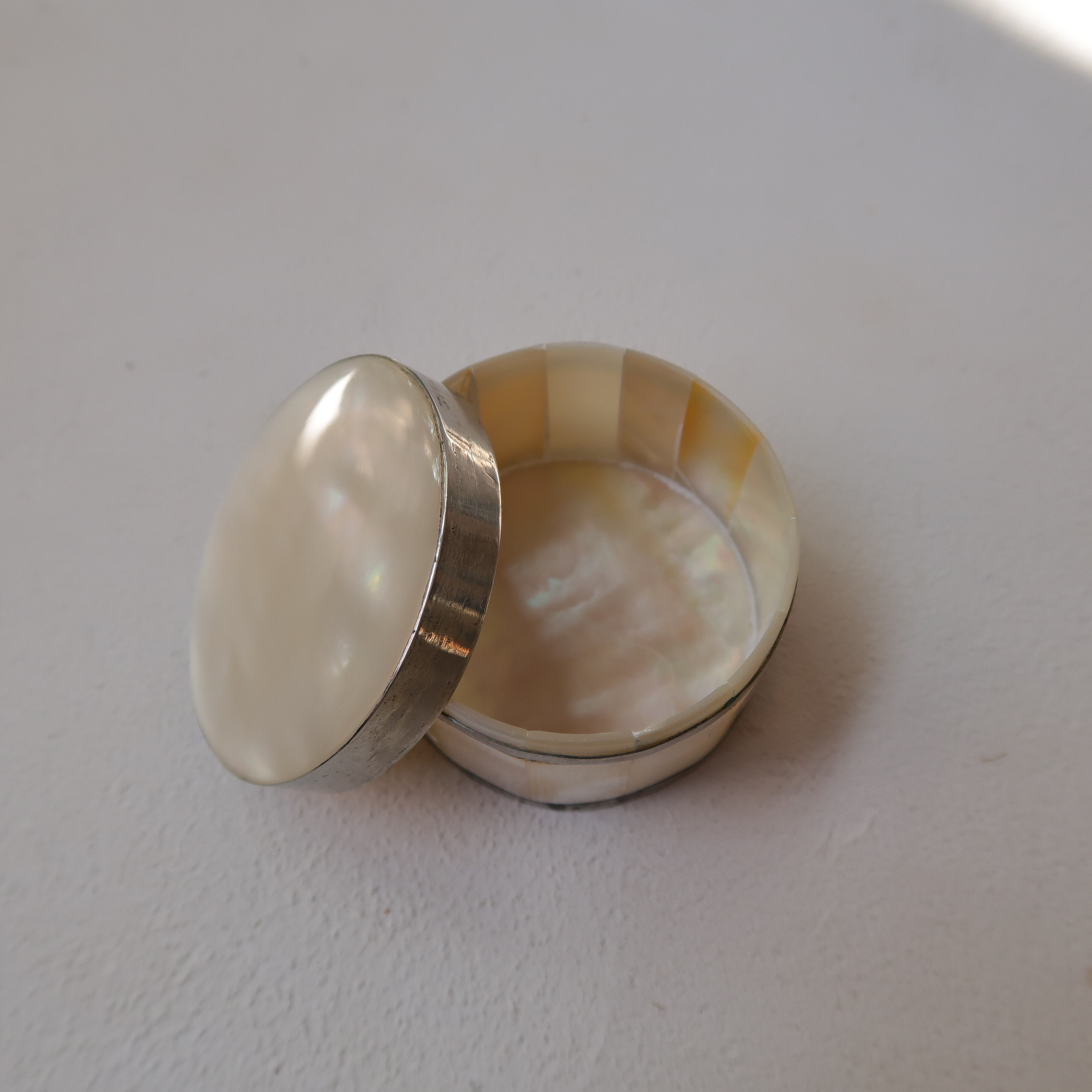 天面と底面は1枚、側面は何枚にも分かれて敷き詰められたシェルのジュエリーボックス。サイズは大小ふたつ、セットで販売いたします。