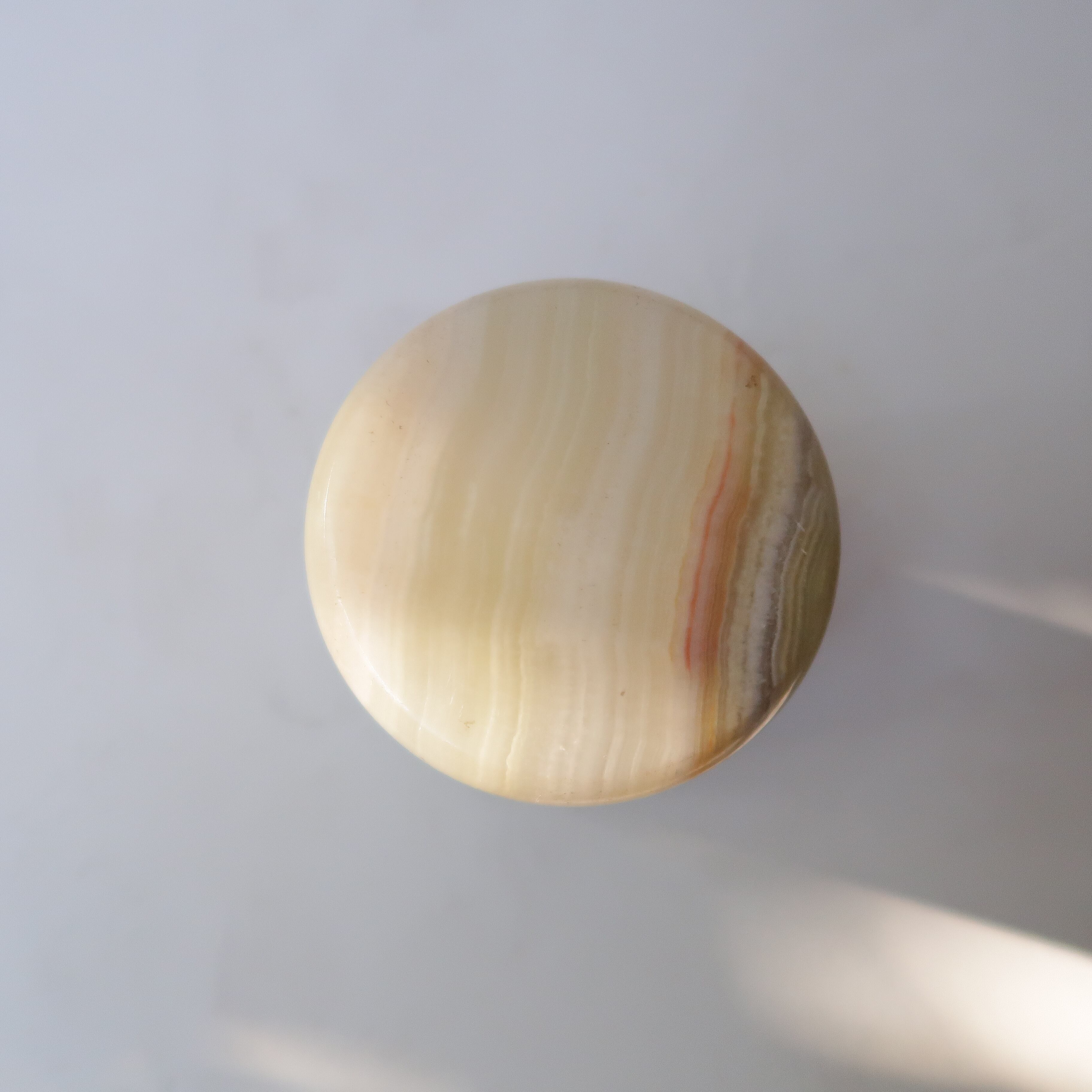 石製の茶筒。お茶やコーヒーを入れておいてもよし、アクセサリーを入れてもよし。捉え方次第で、たくさんの使い方ができそうです。グリーンがベースの石に、茶色い模様がかわいい。