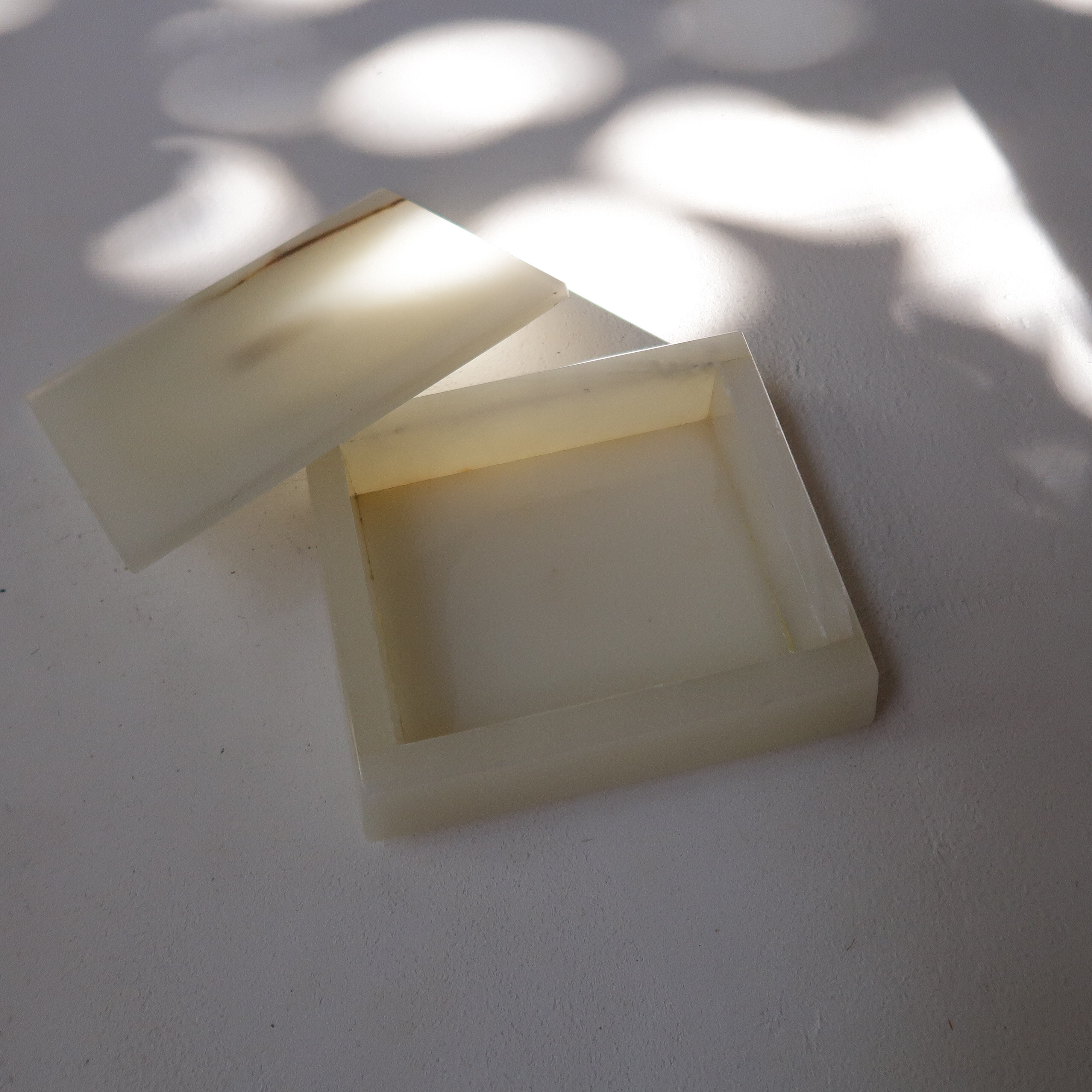 重たい石ながら、蓋は薄い石のジュエリーボックス。蓋がついているので、アクセサリーを入れて飾ったり、お香を焚いたりなどお使いいただけます。