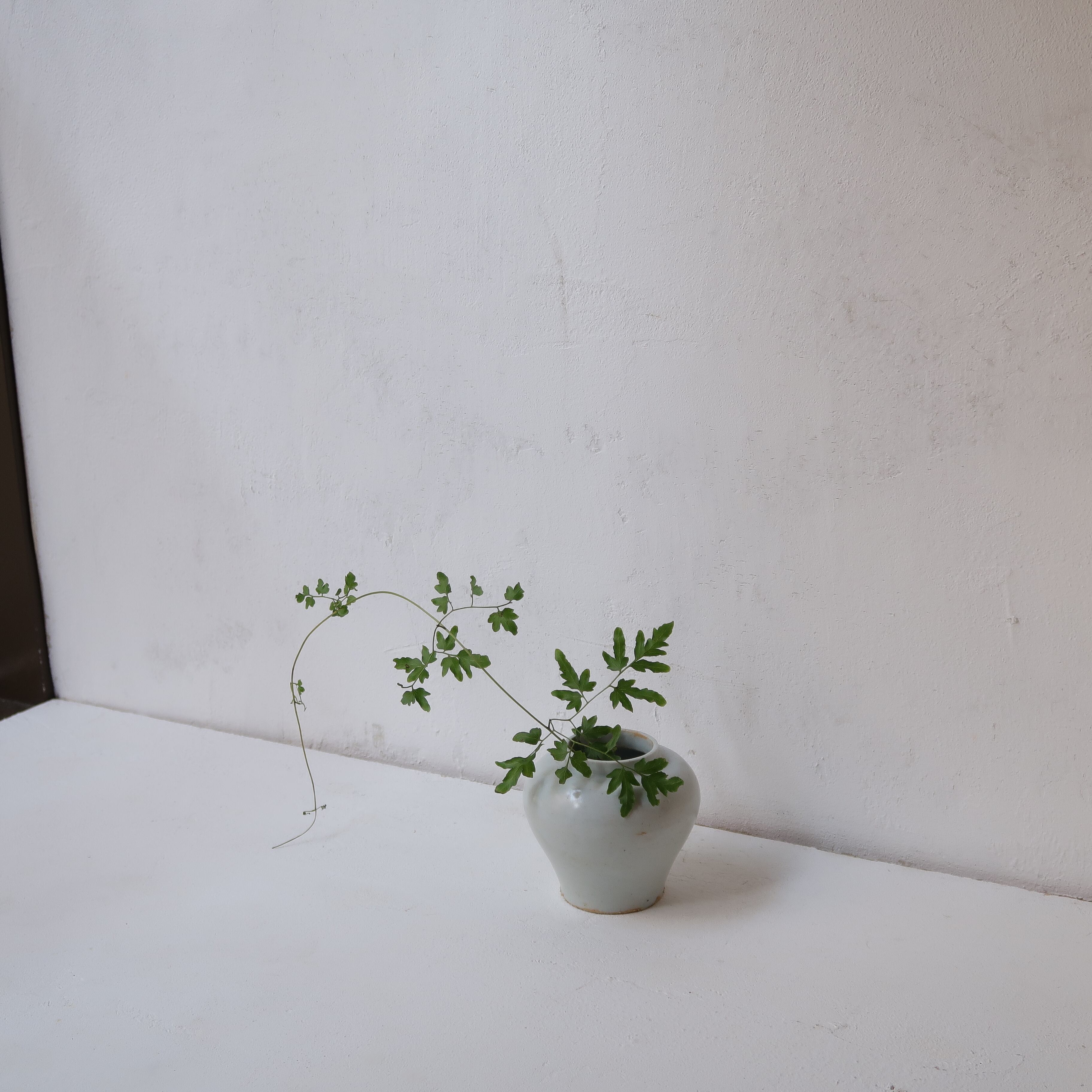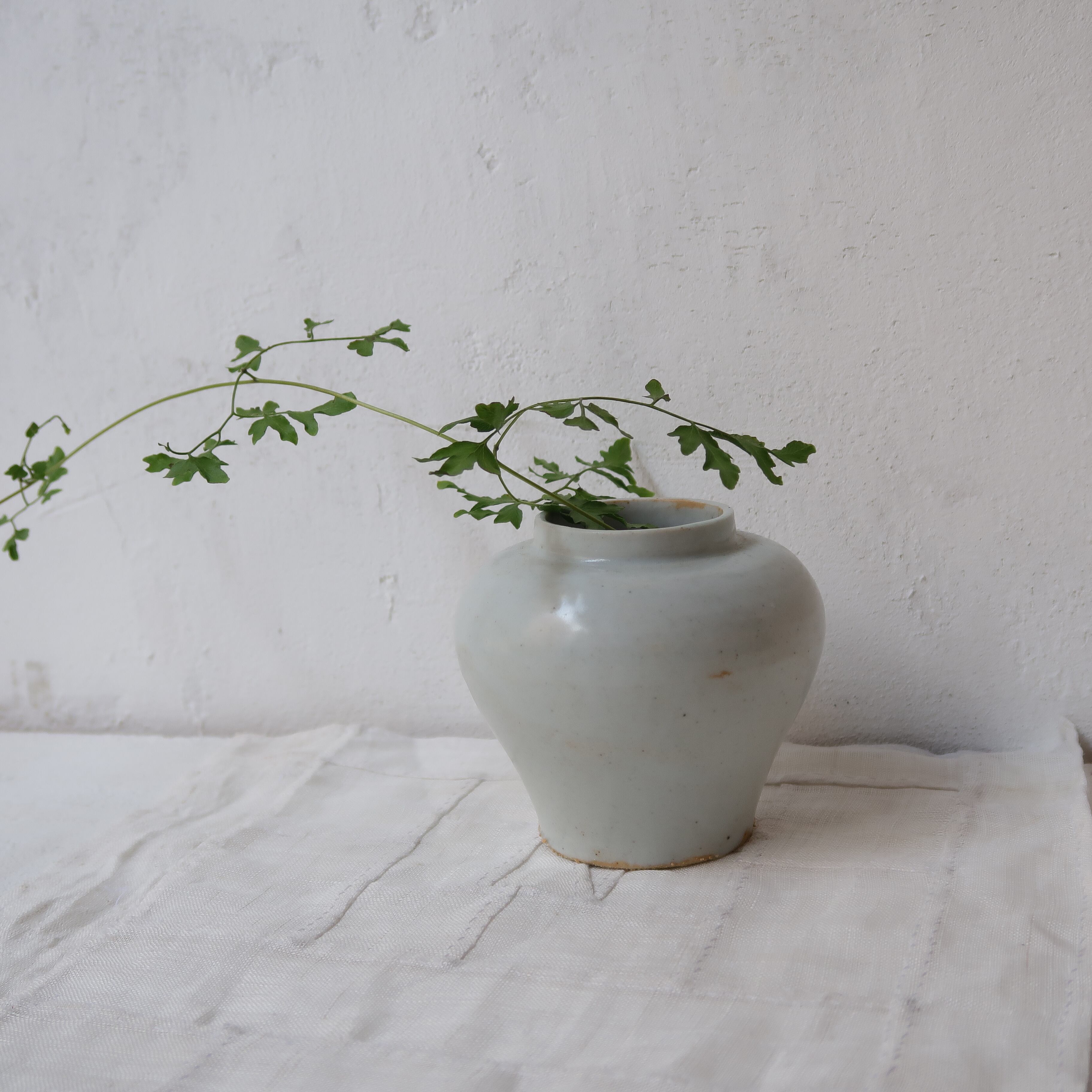 肩がまるく、すぼまったフォルムが美しい花瓶。つるのある草木や、蕾のある枝物を生けたり。シンプルなお部屋にも合いそう。