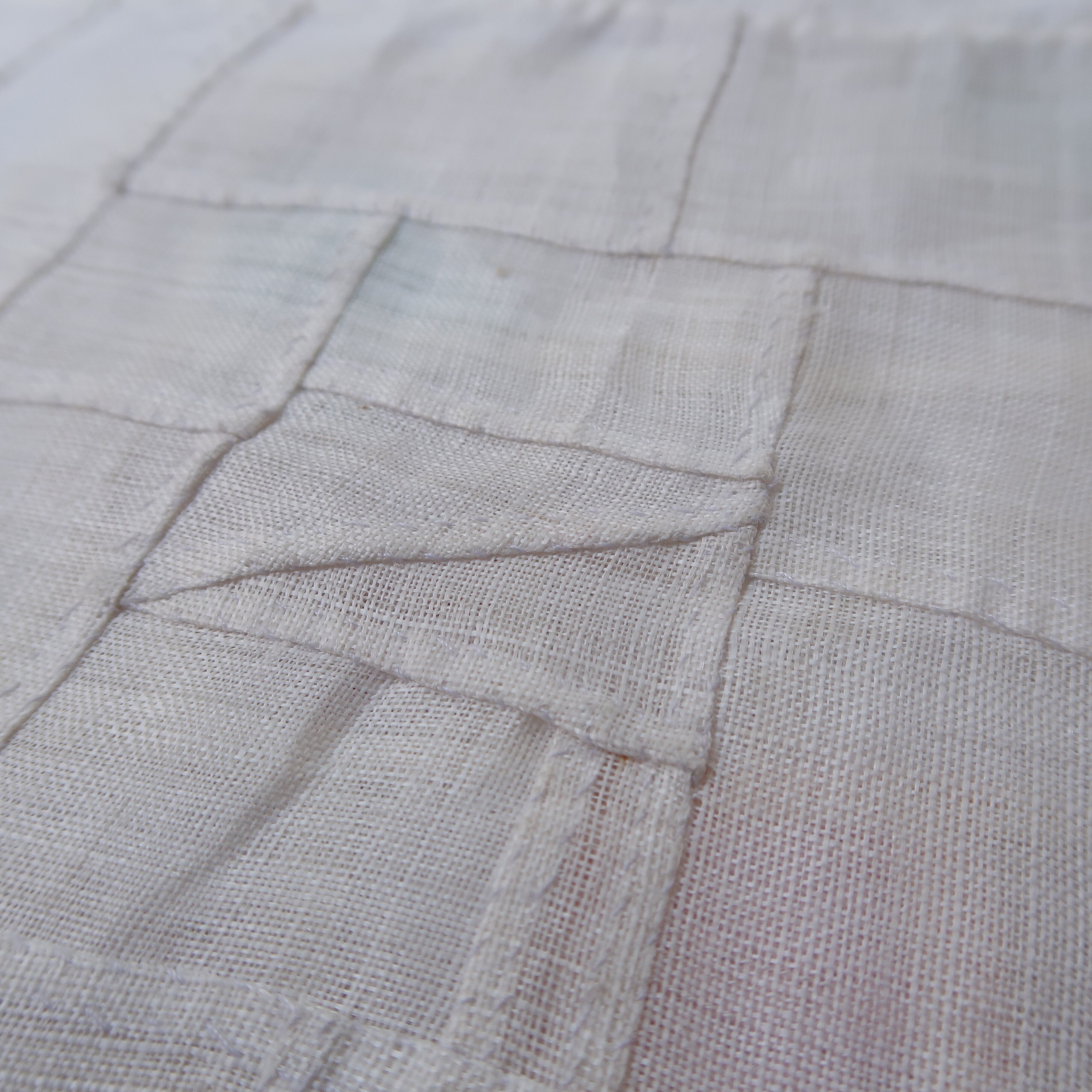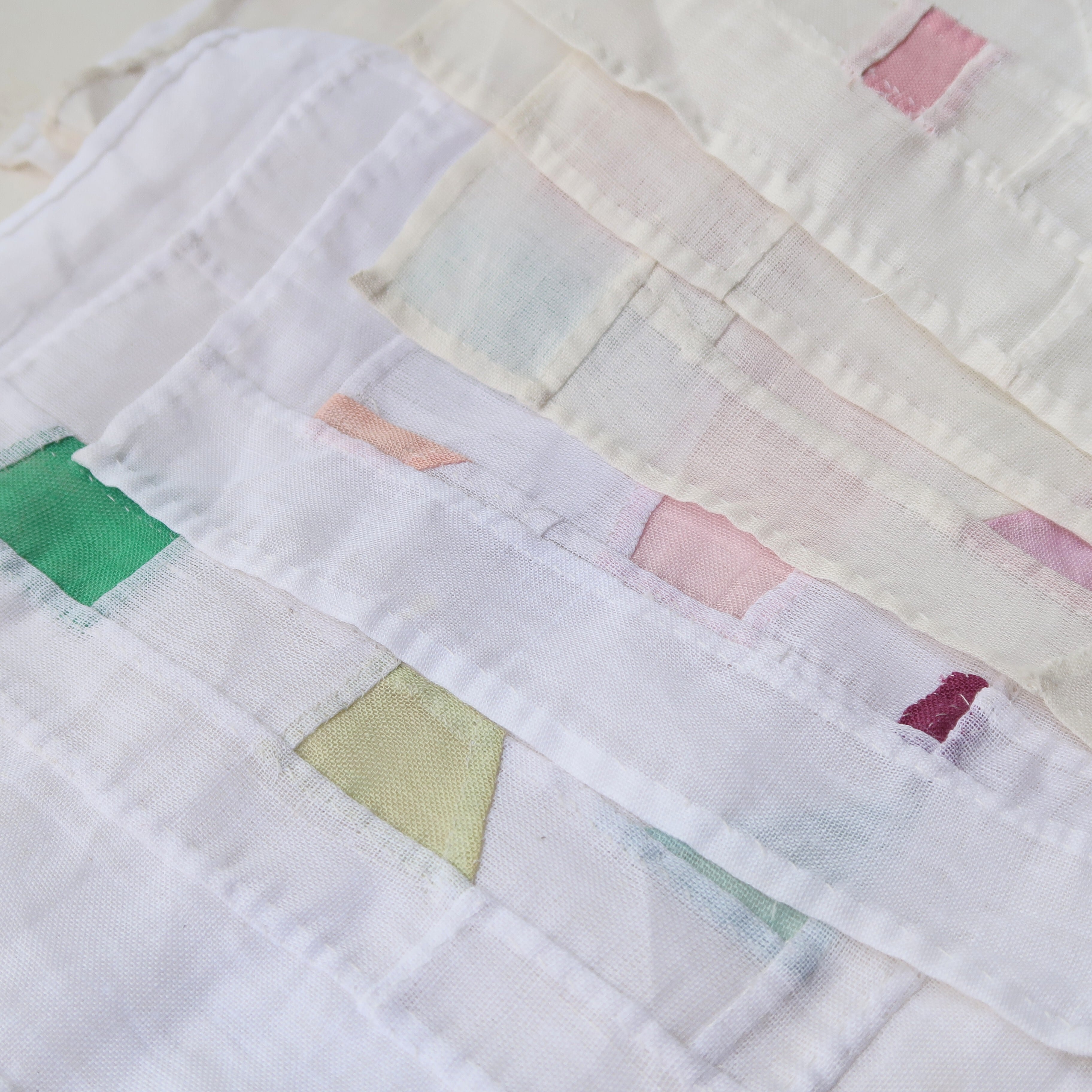 端切れや古くなった衣服をほどいて、一針一針縫い合わせ、1枚の布に仕立てあげた韓国のポジャギ。物を覆ったり包んだりする、日本でいう風呂敷のようなものです。ポジャギで品物を包むと福を呼ぶといういわれがあるようです。