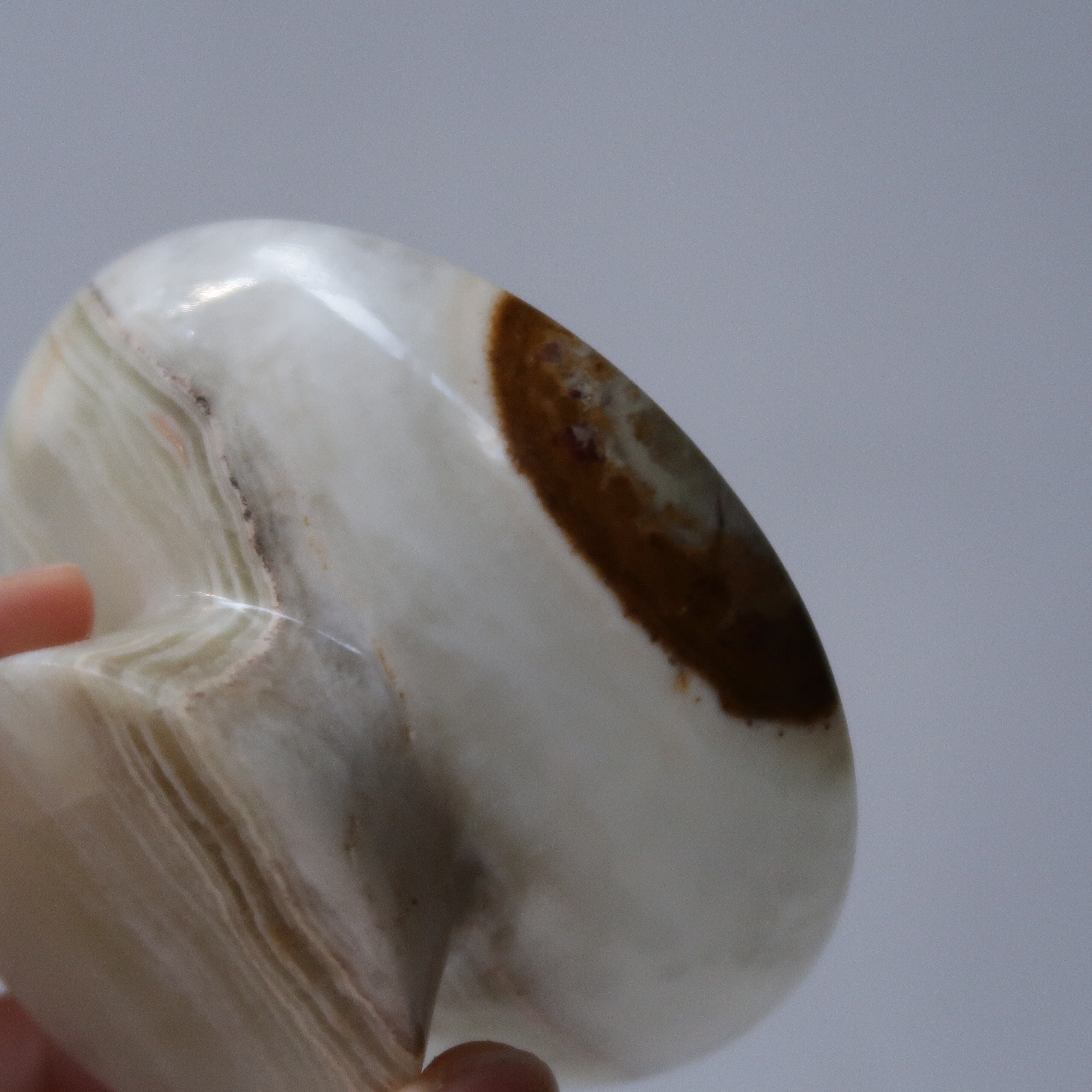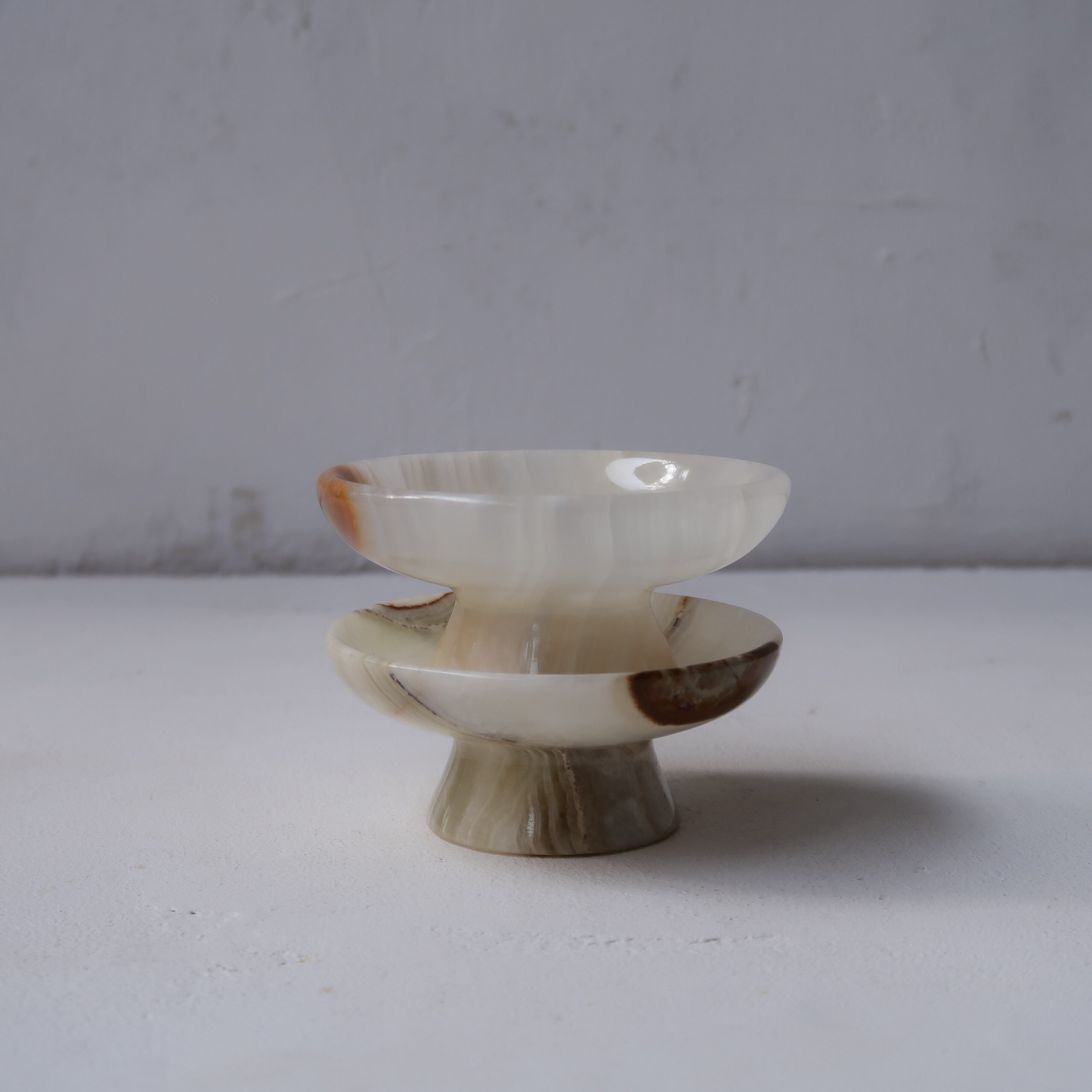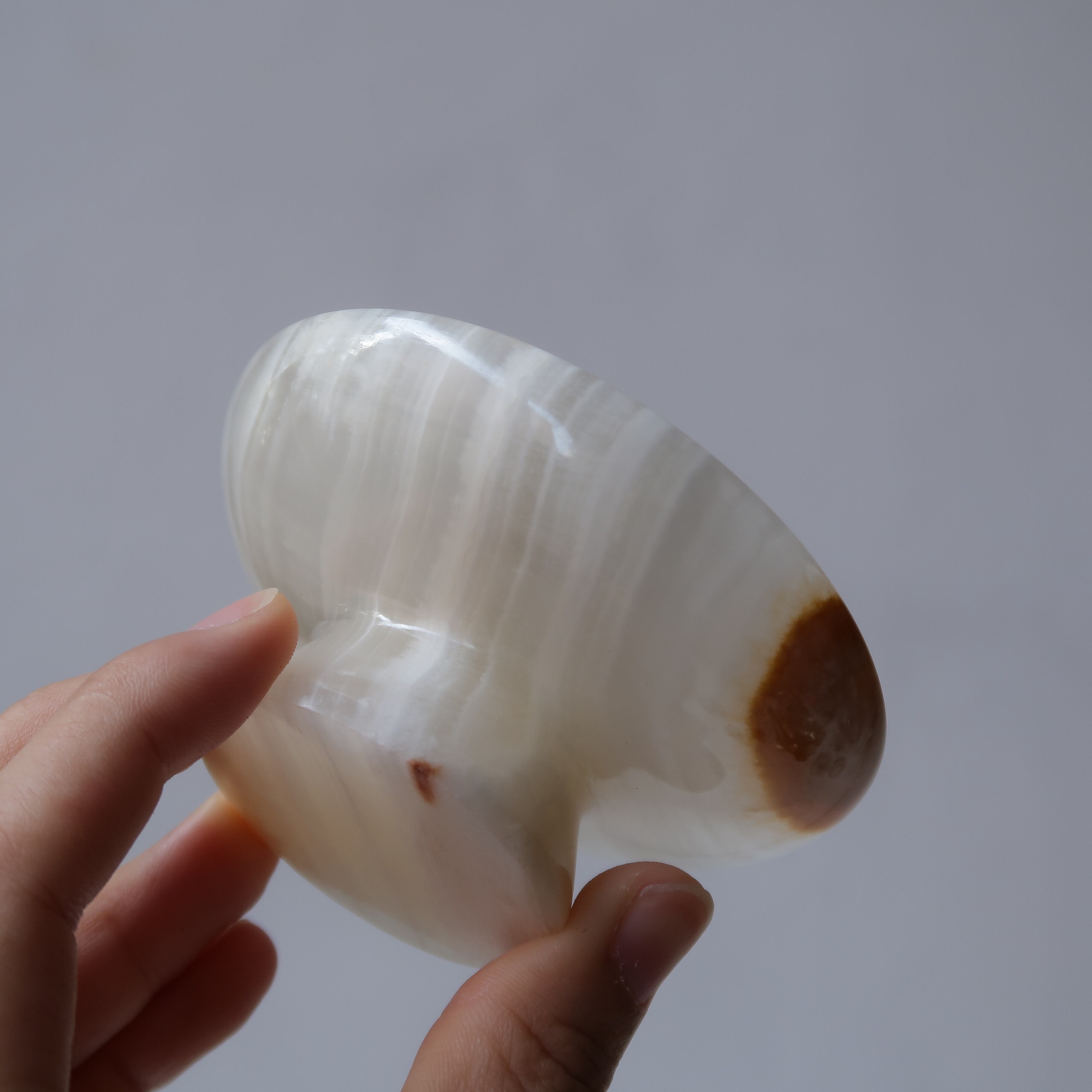 すこし口が広く、脚もしっかりと安定感のある石のおちょこ。お酒を飲むのはもちろん、アクセサリートレイとしてもお使いいただけます。