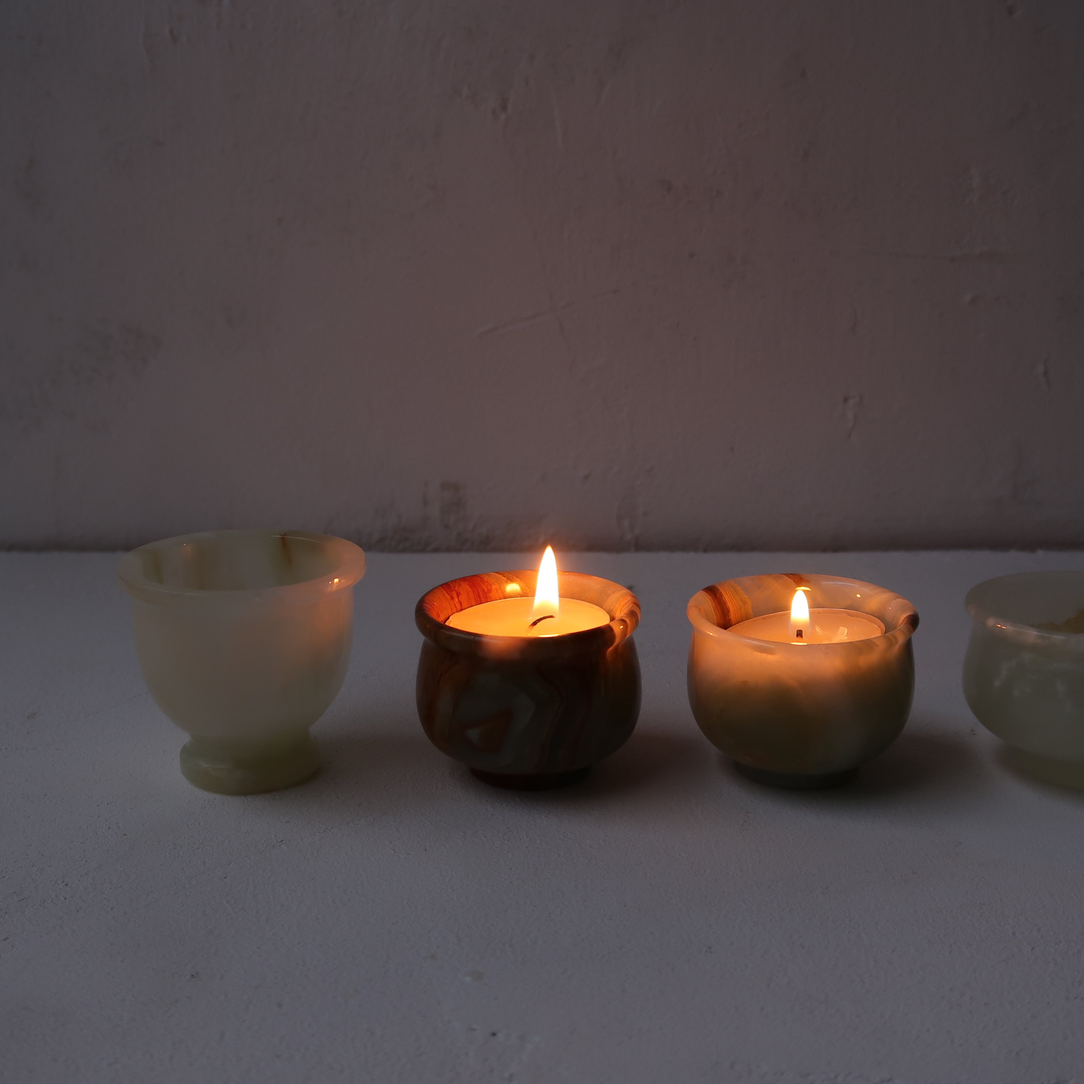 写真には、無印良品で購入したティーライトを入れています。直径4cm以内のキャンドルなら入りますので、キャンドルホルダーとしても、ぴったりです。
