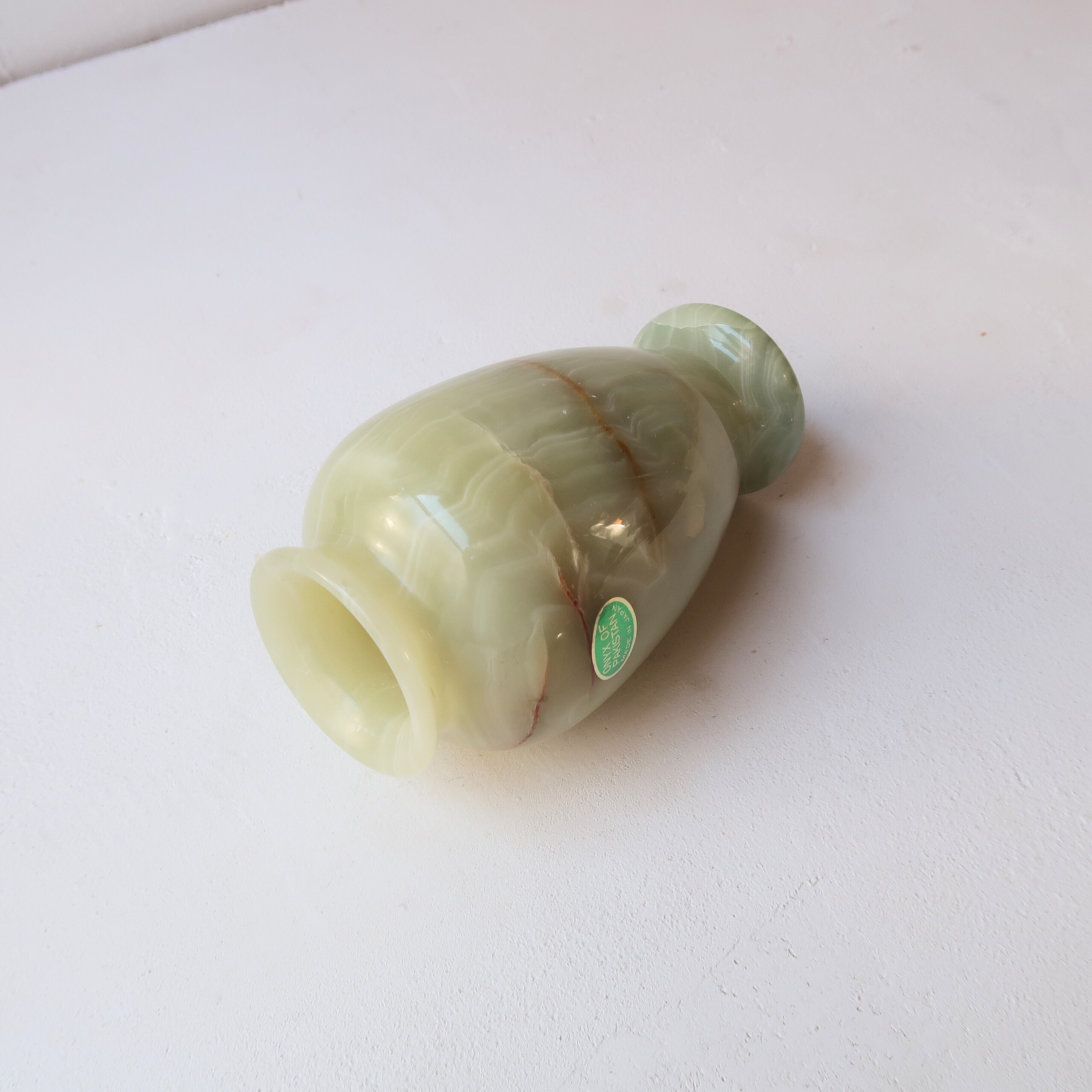 グリーンのオニキスの花瓶。コロンとした丸みのあるフォルムがかわいい。内側の高さは全体の半分くらいなので、ちょっとだけ浅く感じるかもしれませんが、短い茎が挿せるのでかえってよいかも。