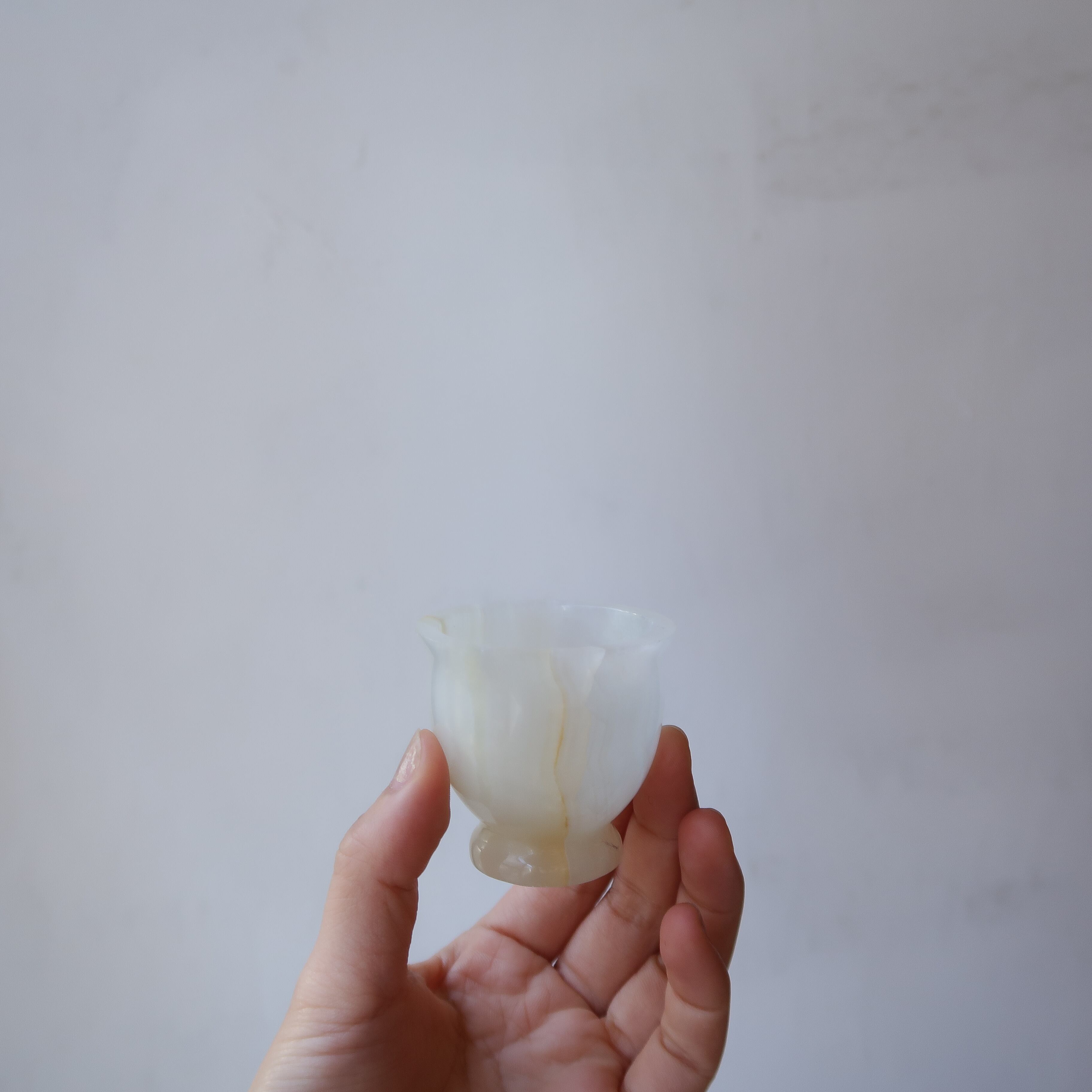 まるみのある翡翠のおちょこ。ホワイトグリーン系を3種類入荷しました。f,gと比べると、少しだけ背が高いのがh。