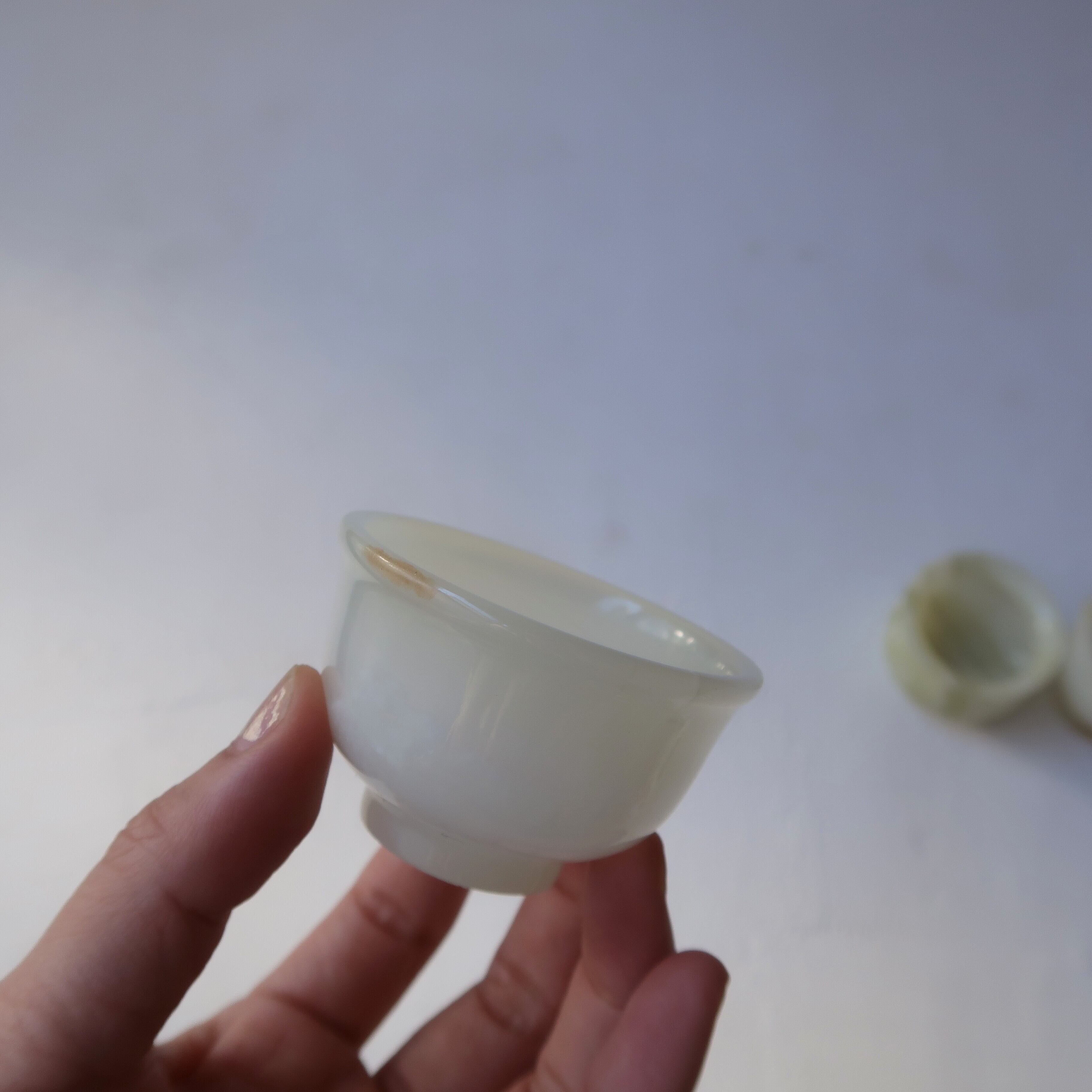 まるみのある翡翠のおちょこ。ホワイトグリーン系を3種類入荷しました。g,hと比べると、少しだけ薄く背が低いのがf。