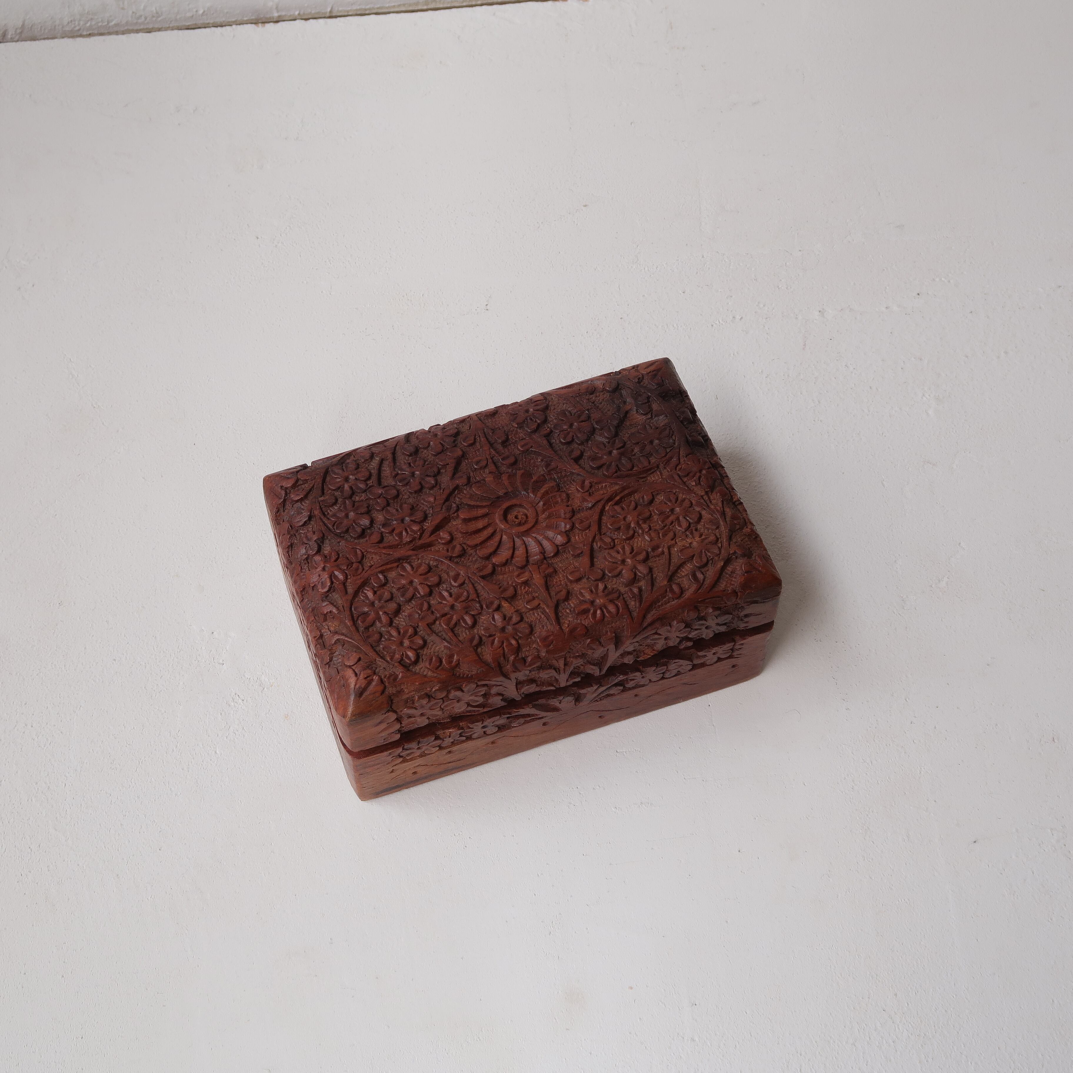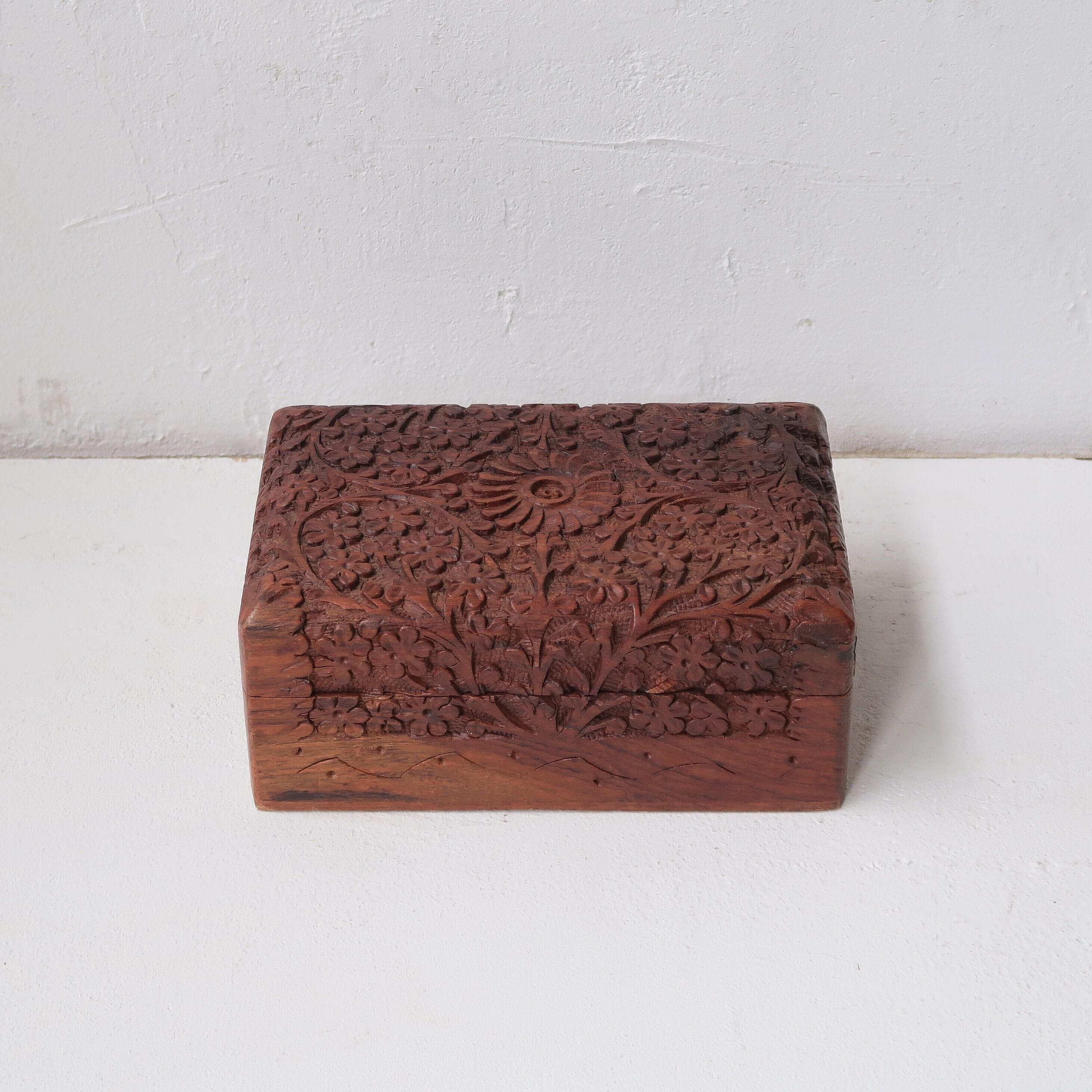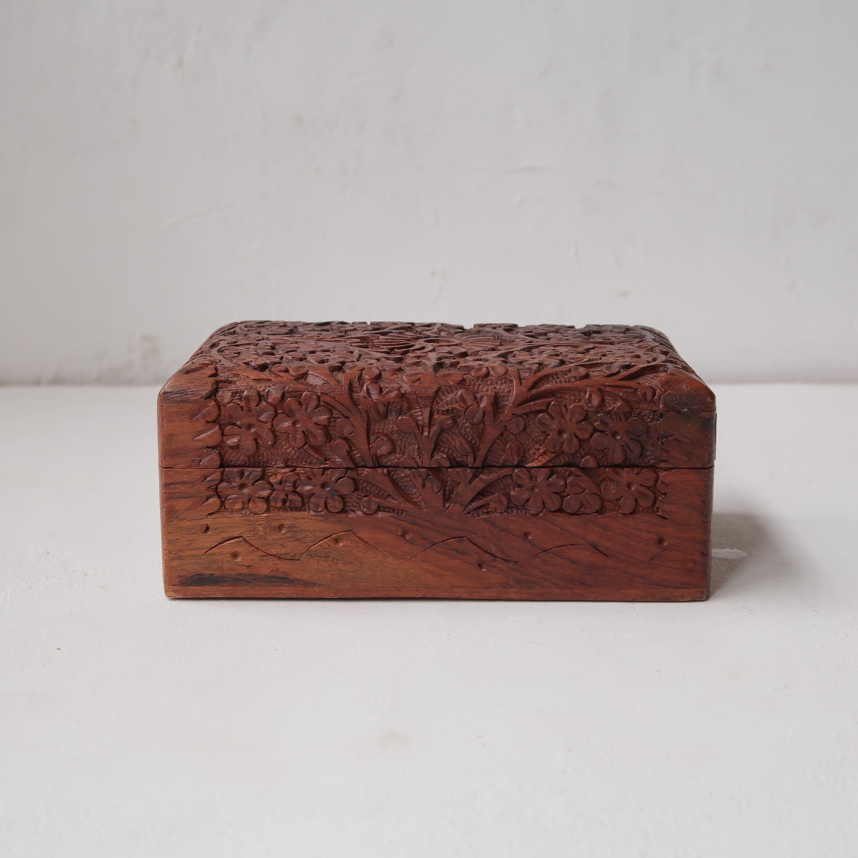 まるで桜の木が生い茂っているかのような、お花と枝葉の木彫りが美しいジュエリーボックス。