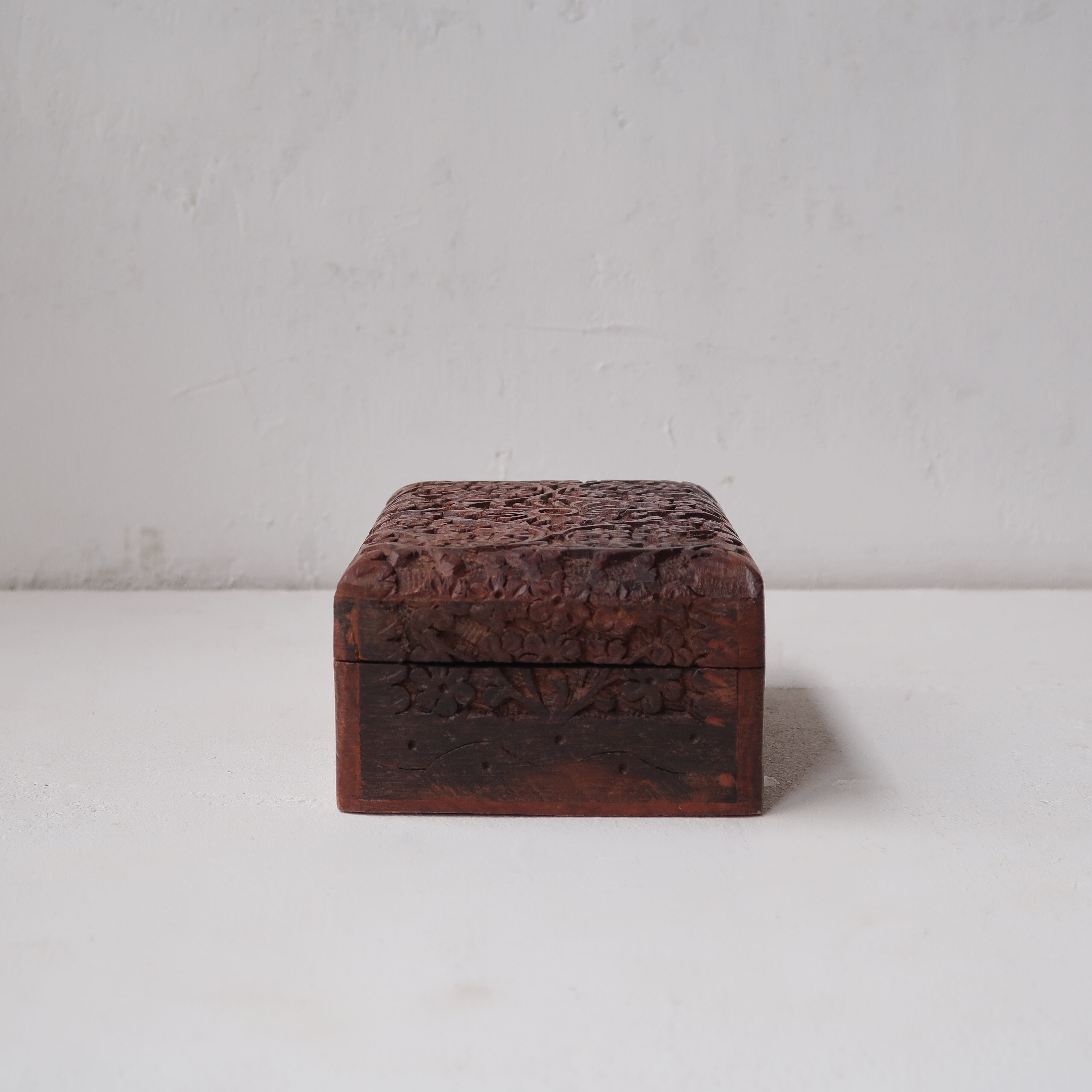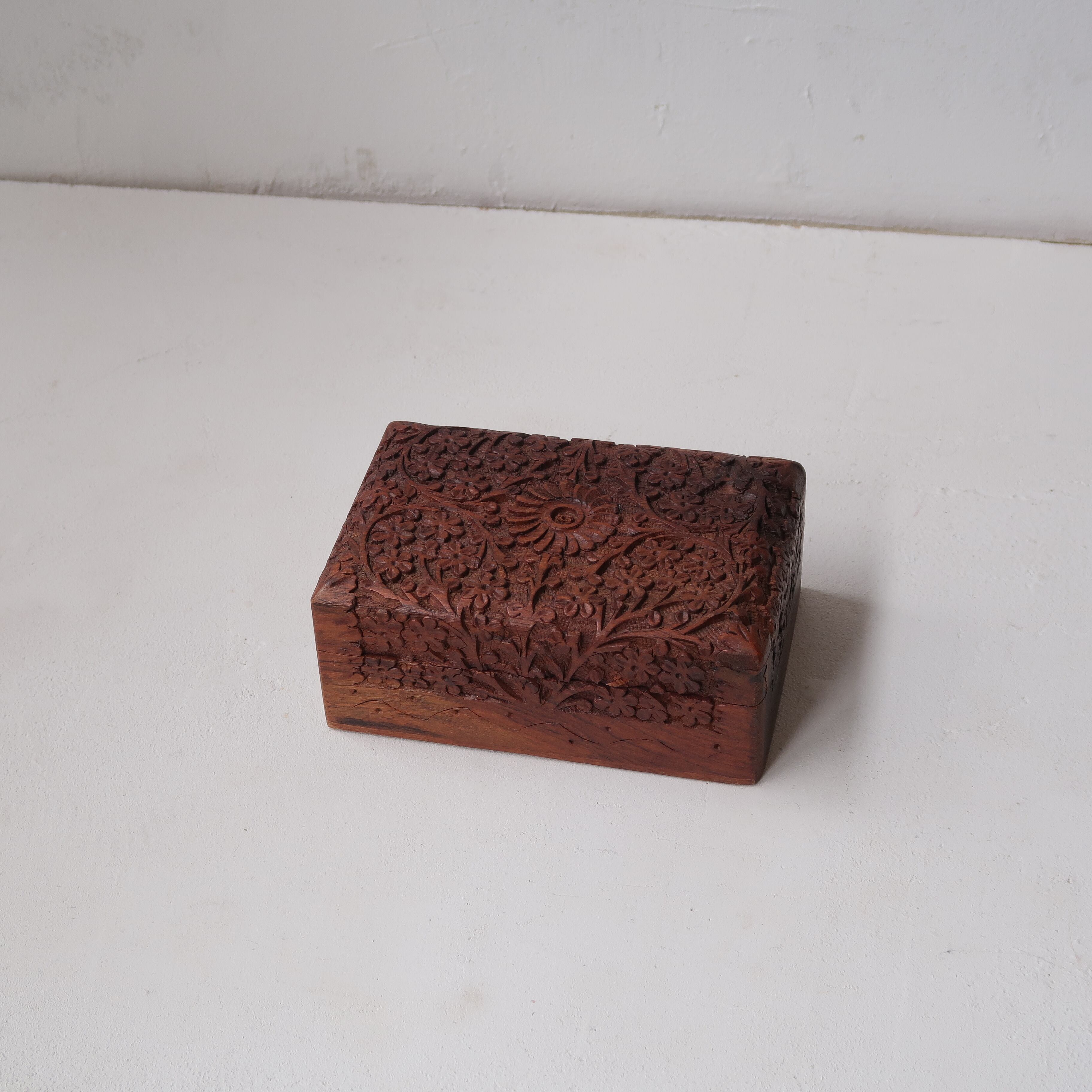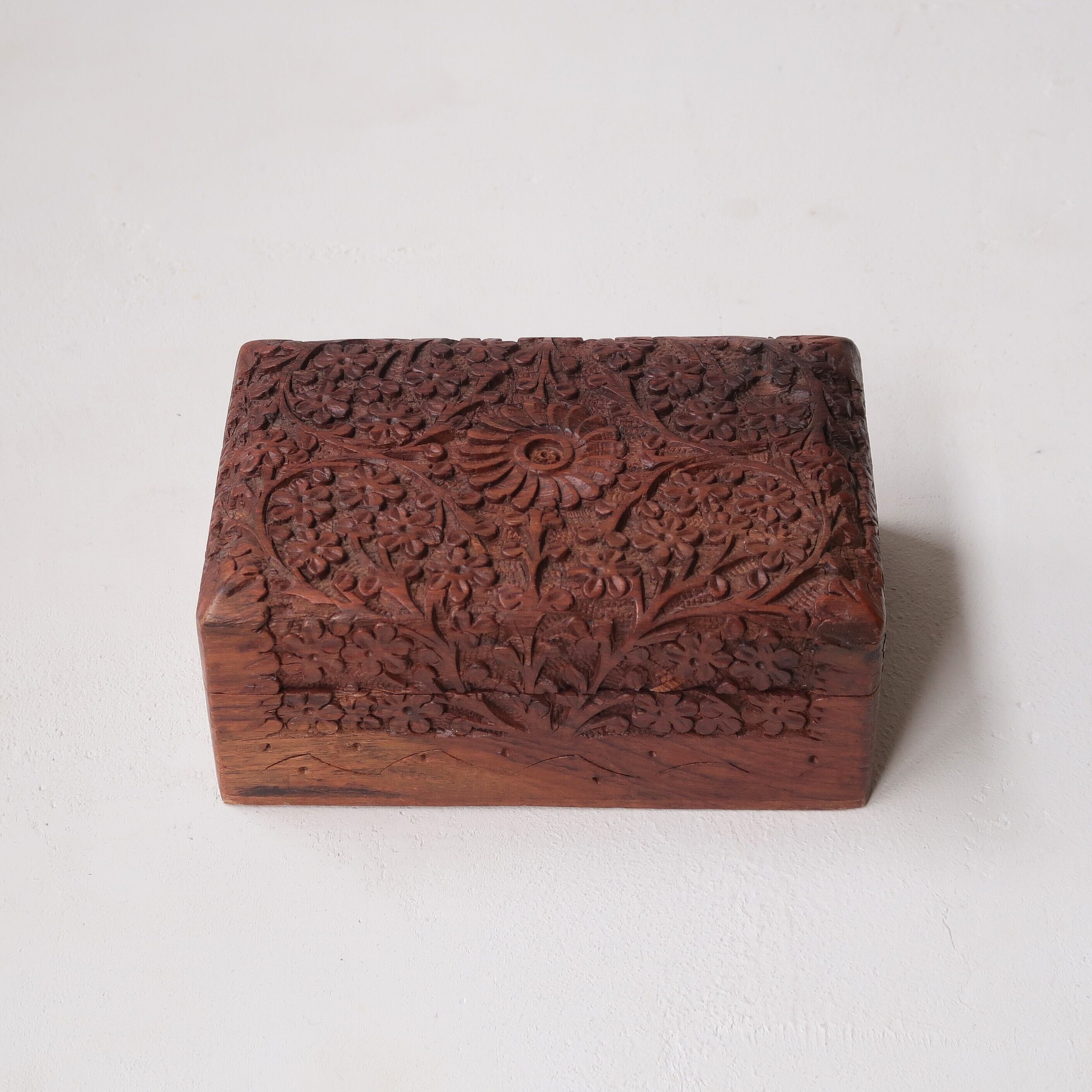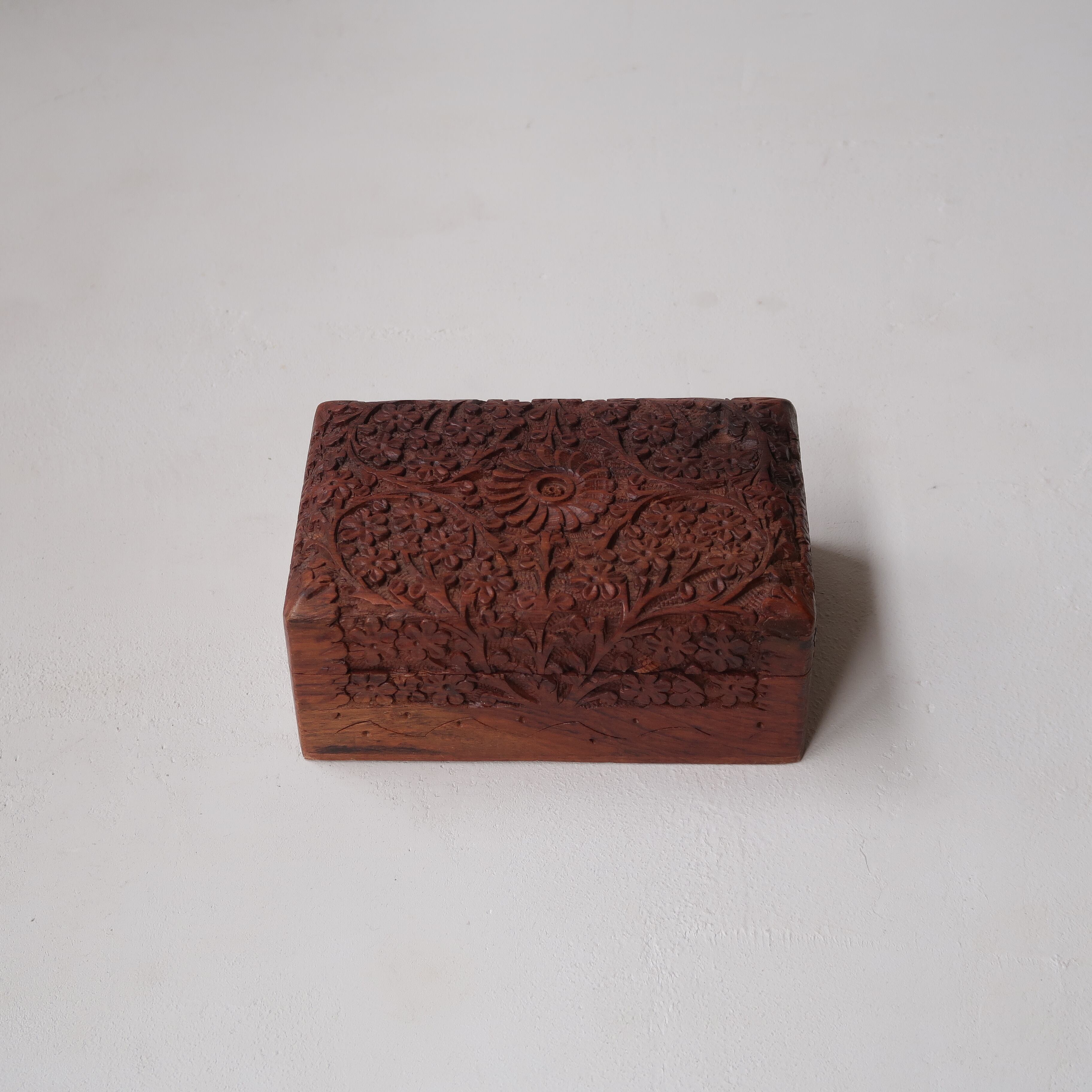 まるで桜の木が生い茂っているかのような、お花と枝葉の木彫りが美しいジュエリーボックス。