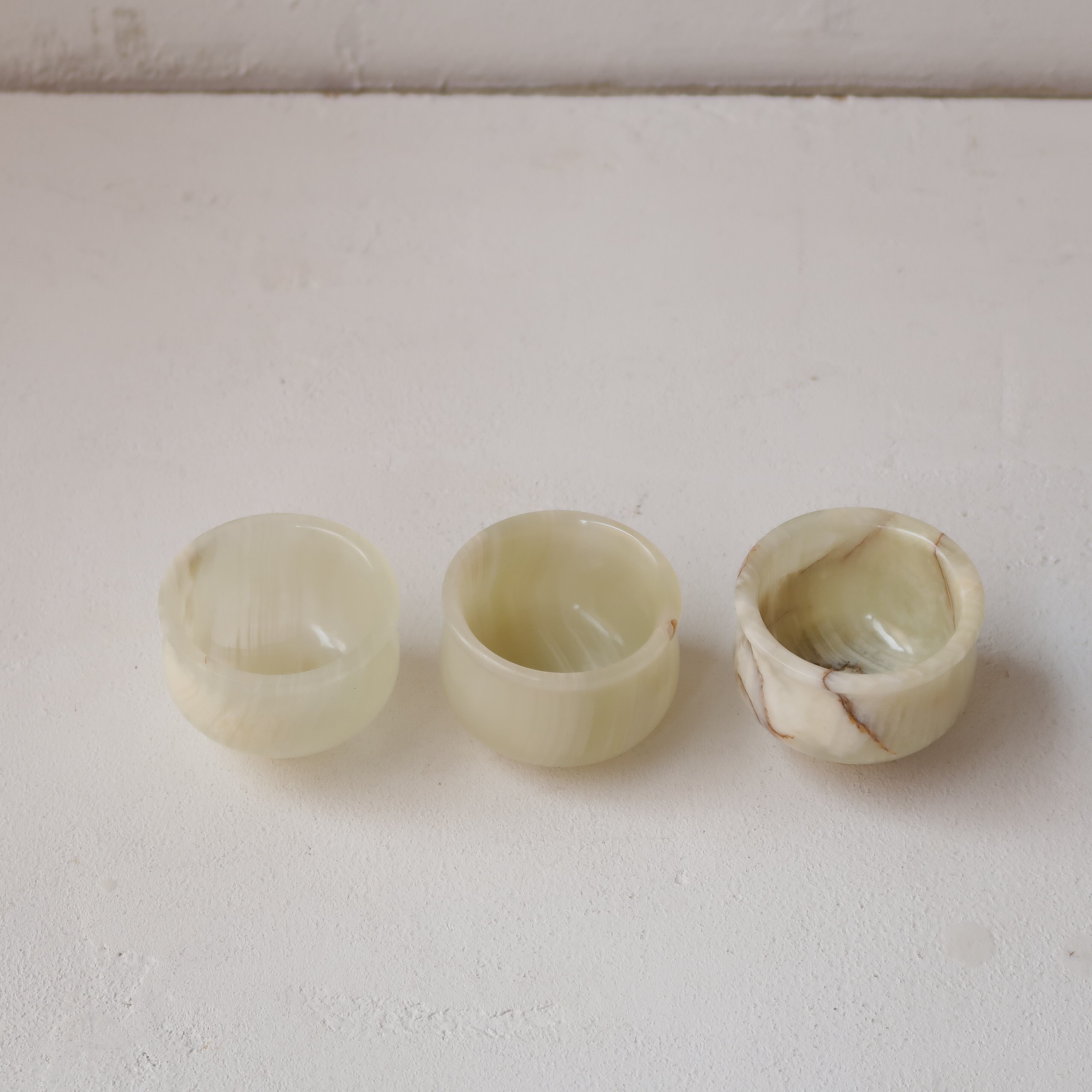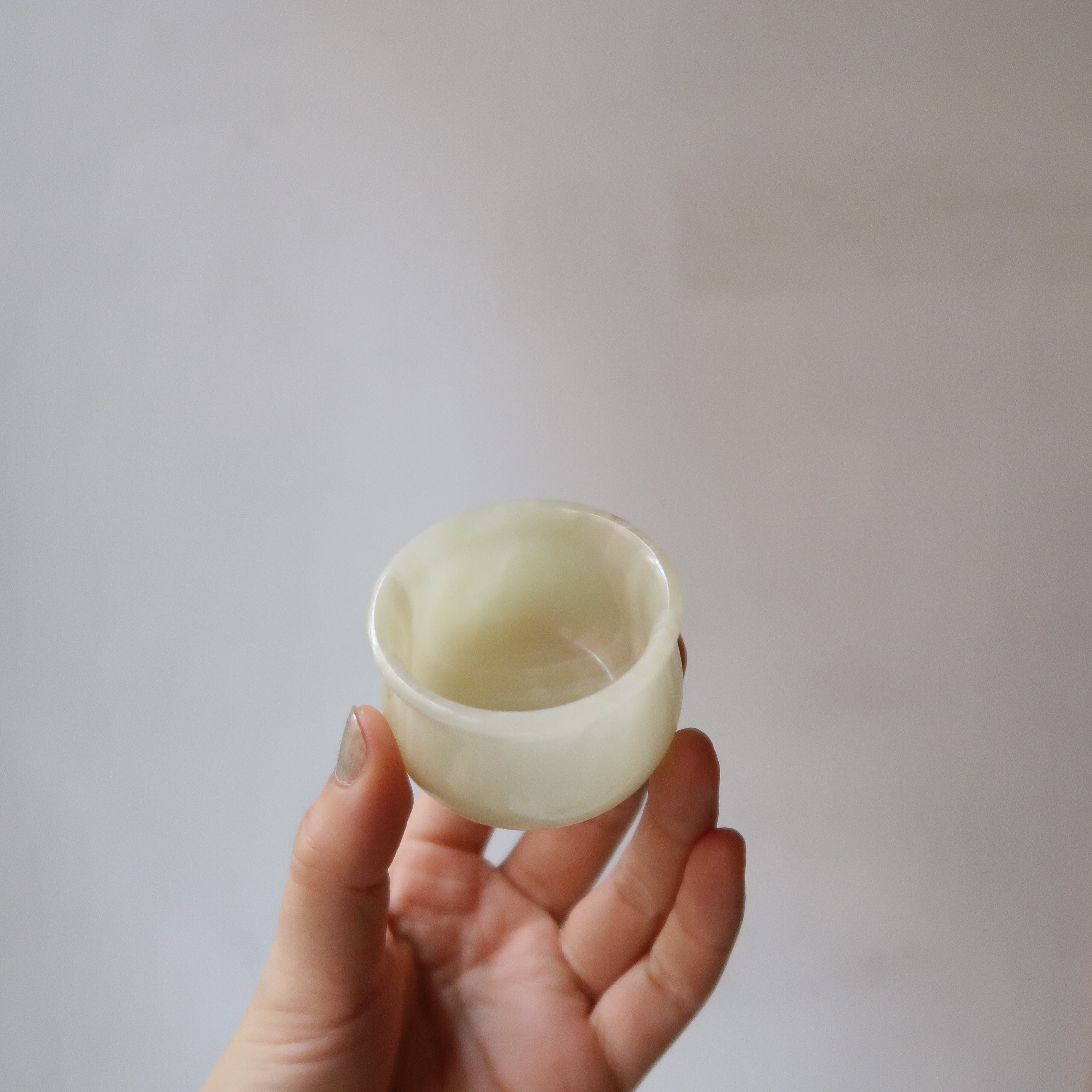 まるみのある翡翠のおちょこ。ホワイトグリーン系を3種類、新入荷しました。