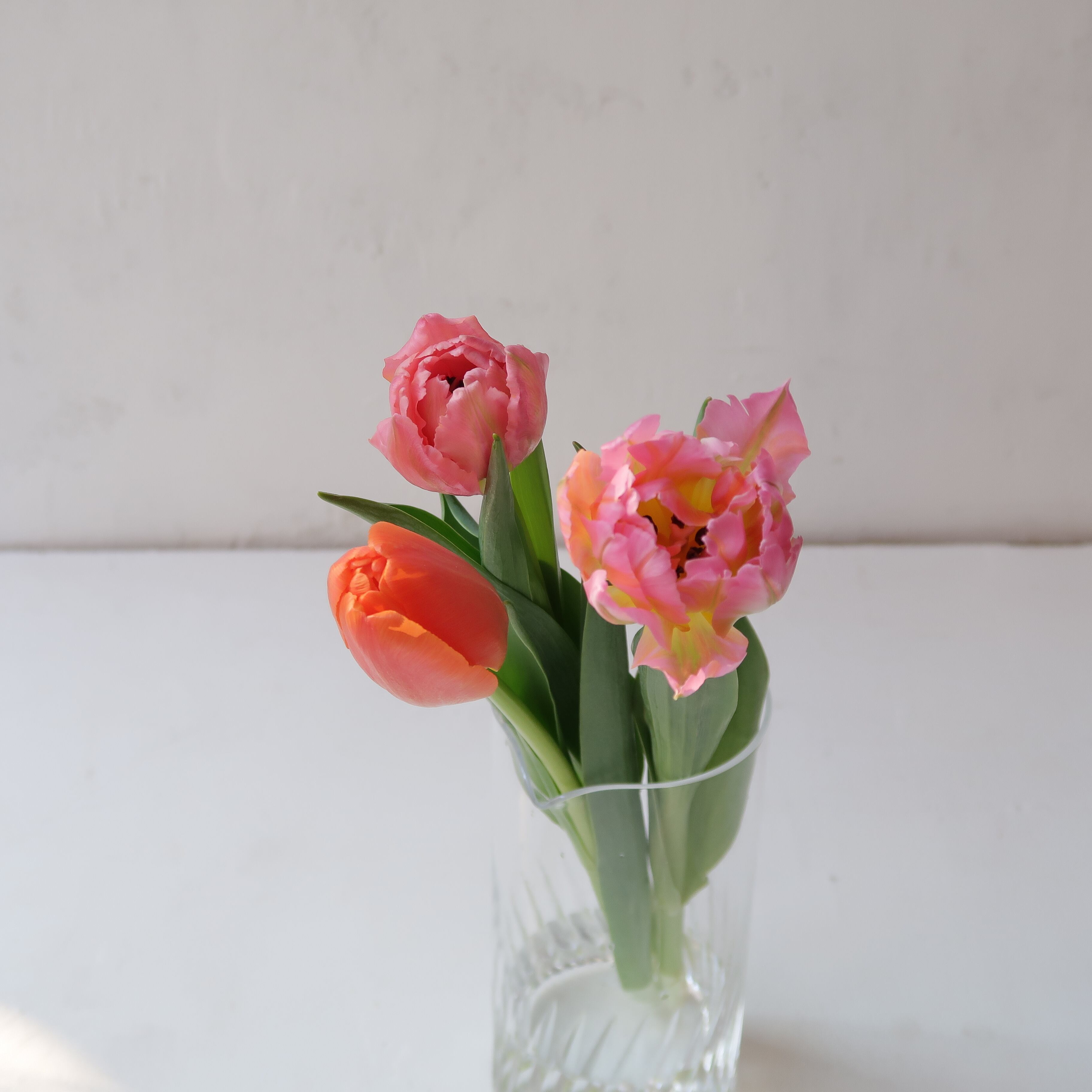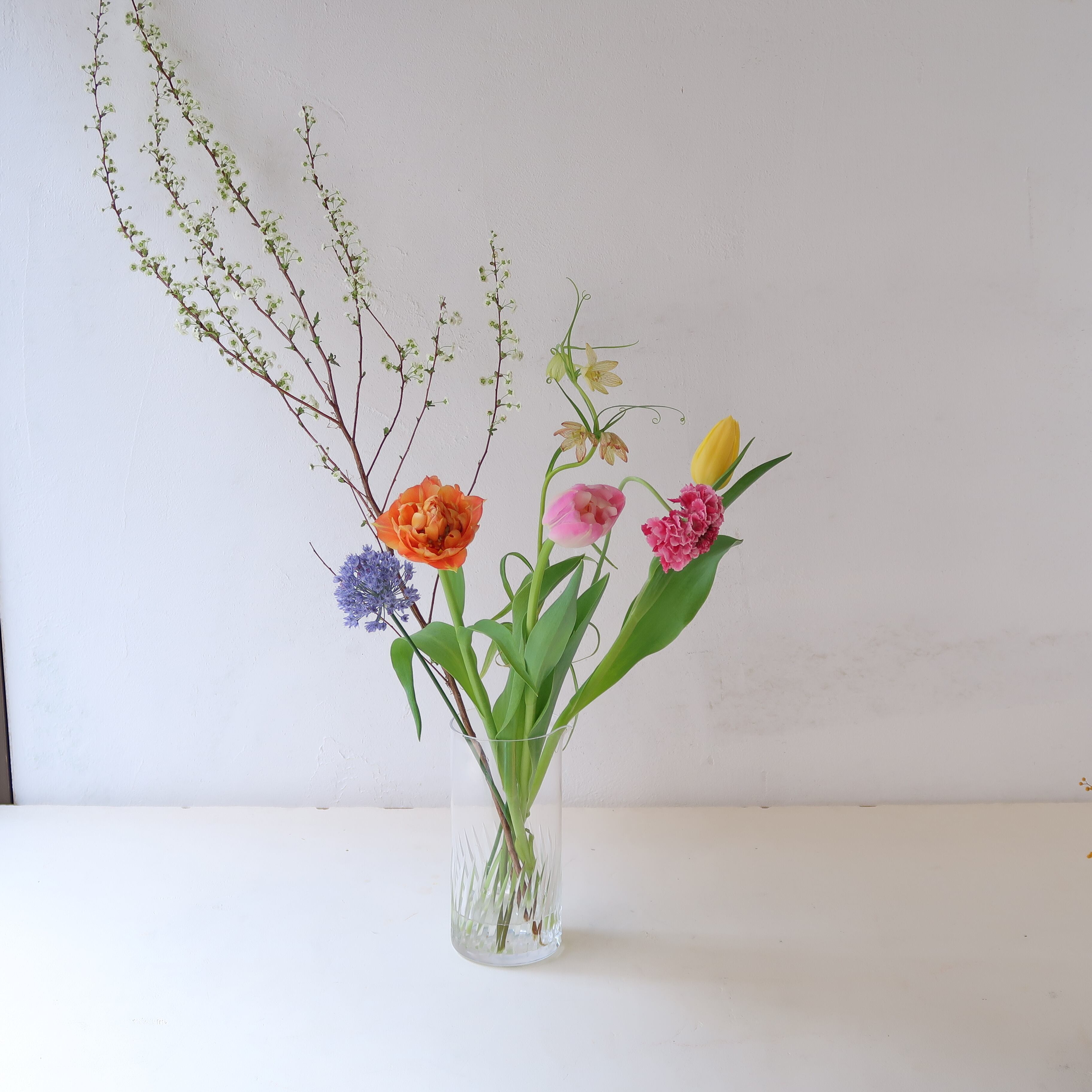 □L…3輪以上たっぷり生けられる。高さ約25cm前後、重量感あるガラスの花瓶など。このあたりら、すこし大きいと感じるかも。インテリアとしても。