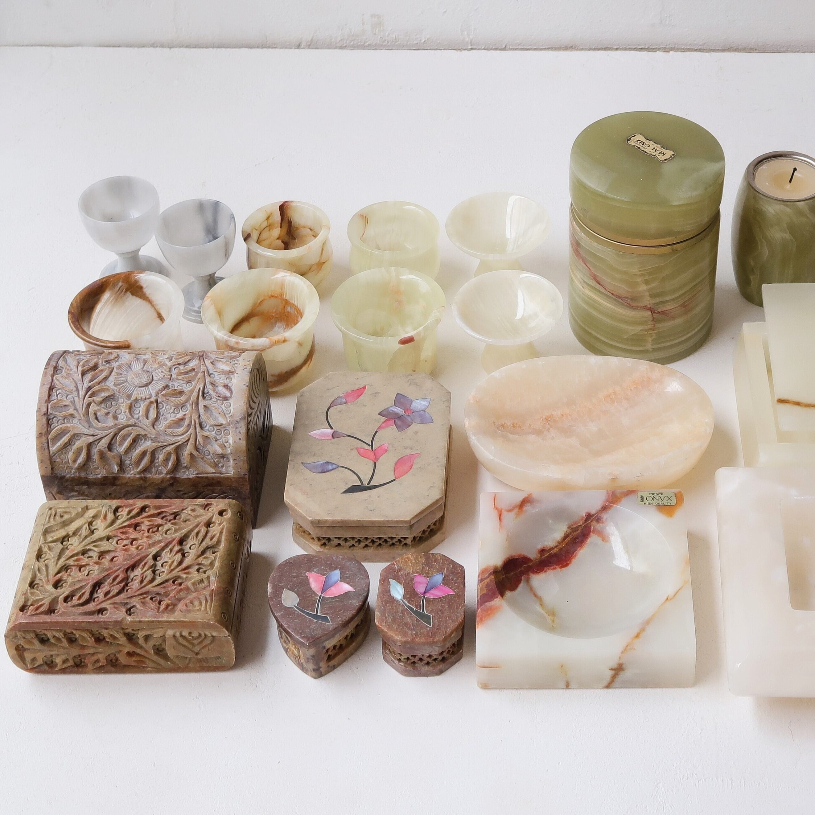 石の色味はだいだいやサーモンピンクをベースにした暖色系。インテリアとしても飾りやすいと思います。