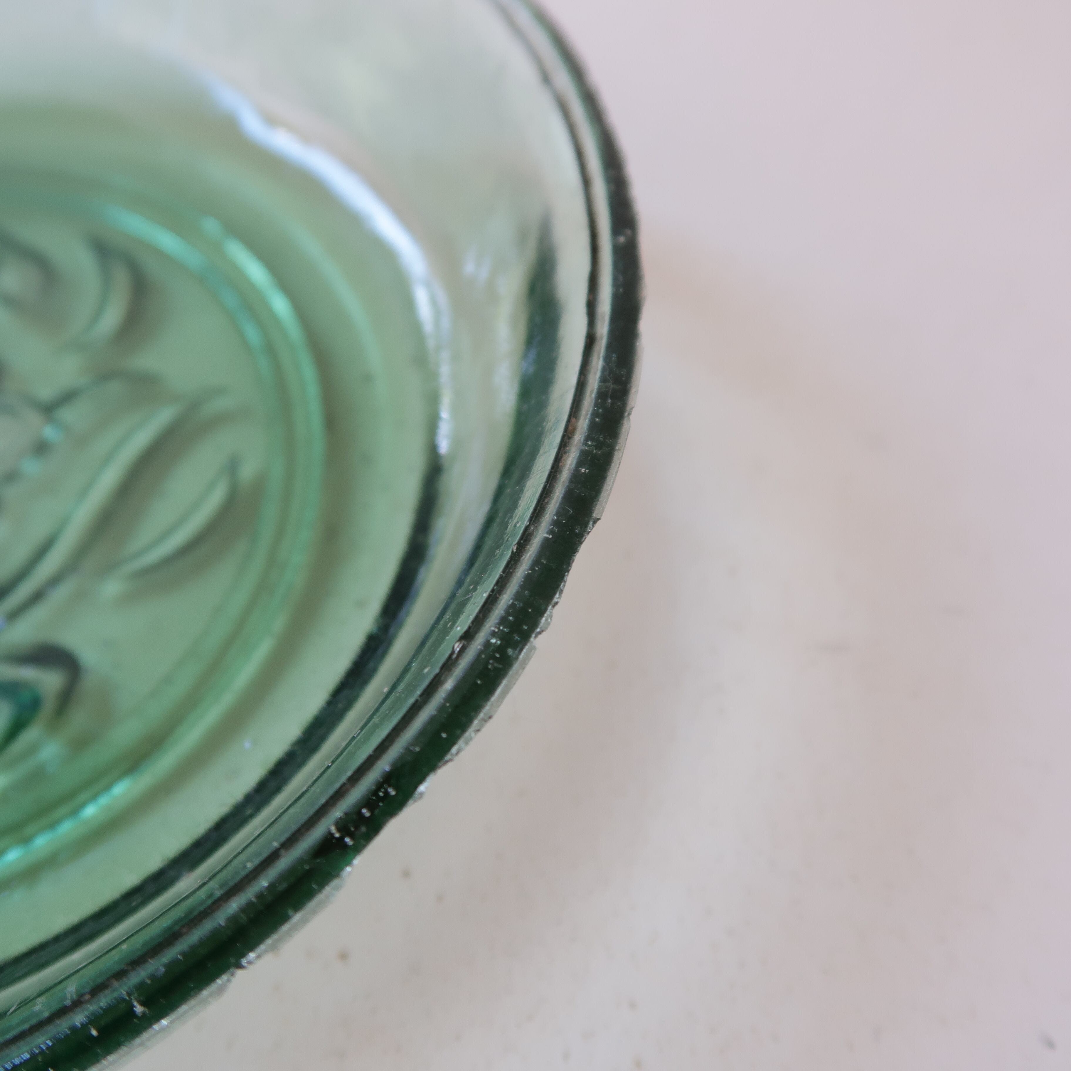 古いガラスのため、ふちに細かな欠けがございます(9,10枚目)。ヒビや割れはありません。お使いになるときにはお気をつけください。