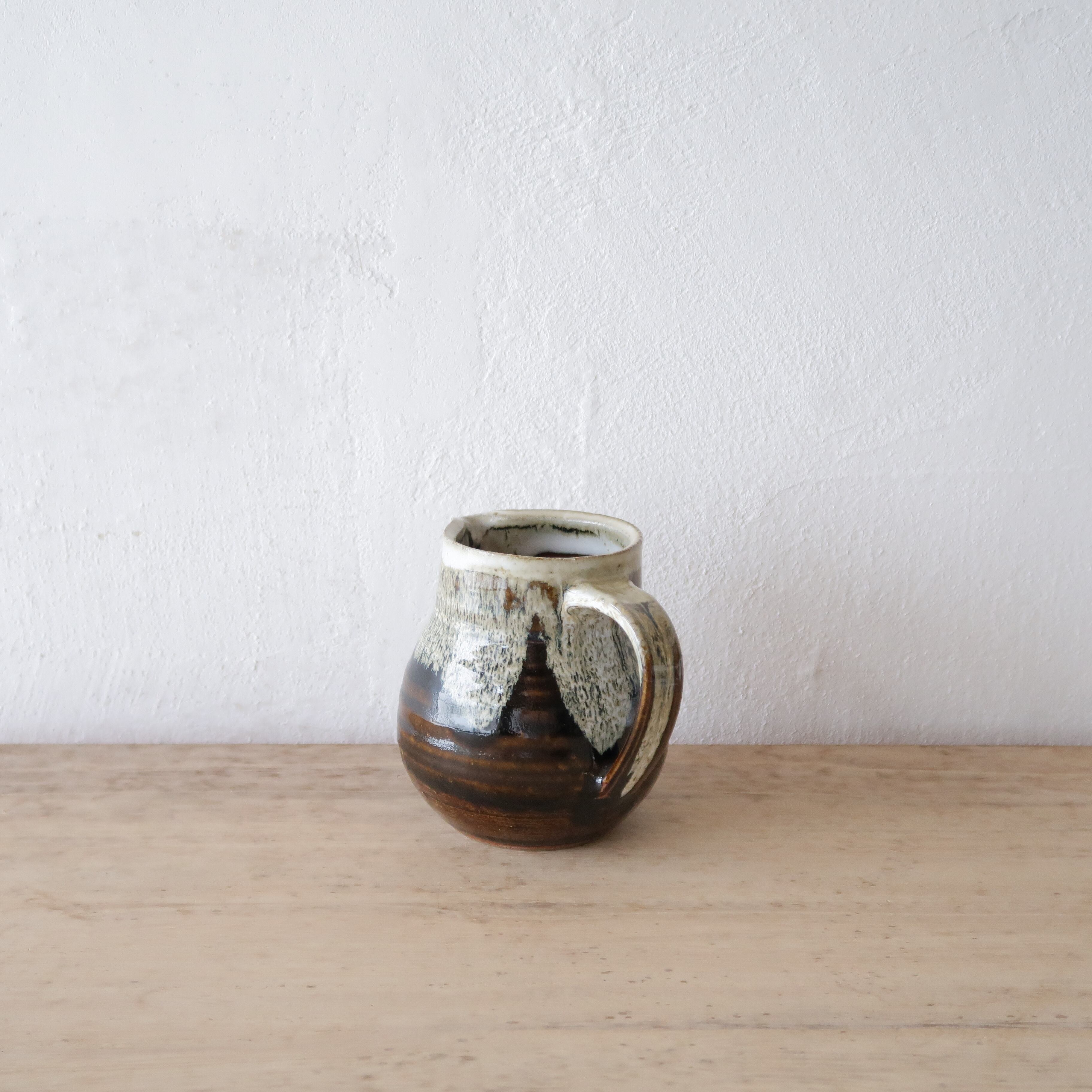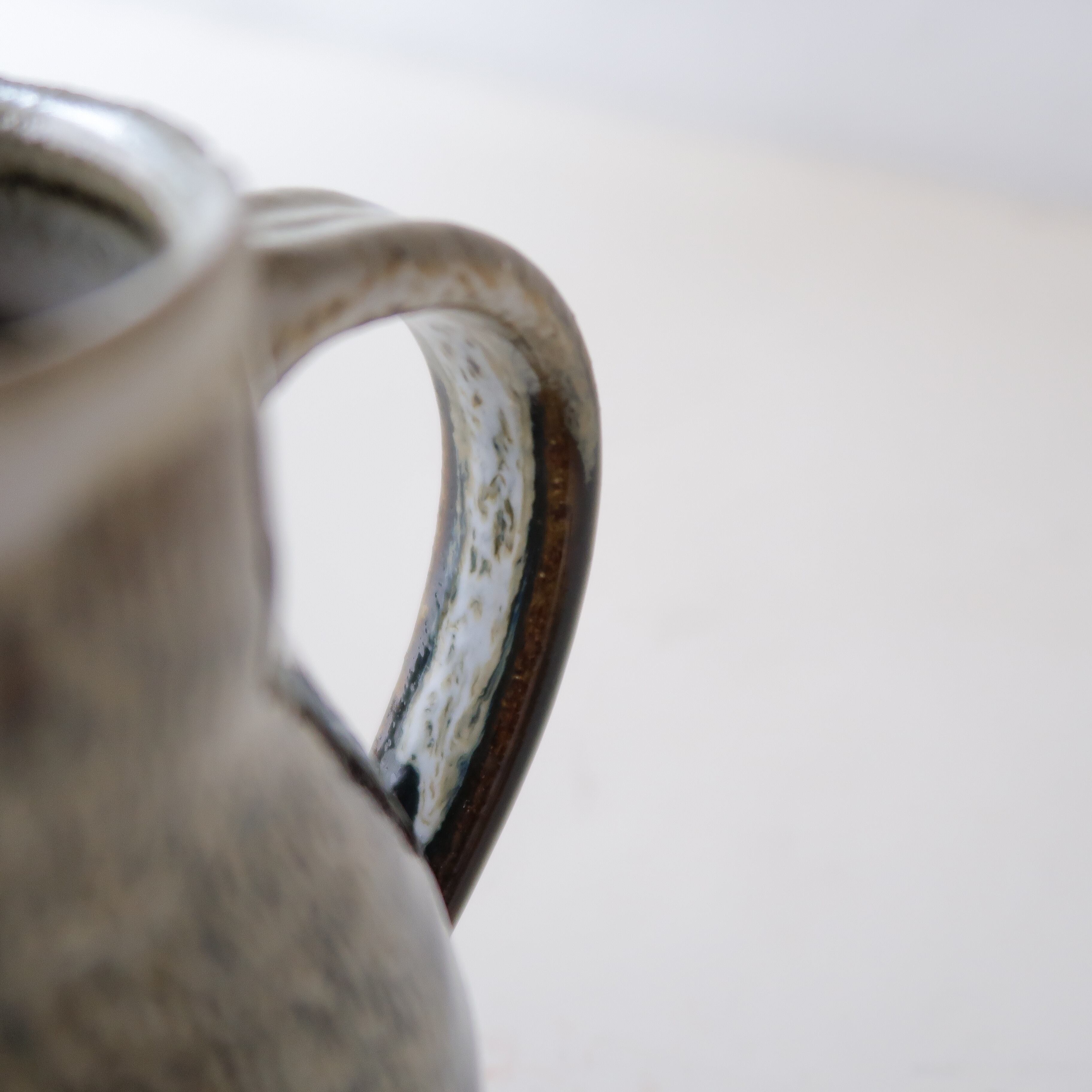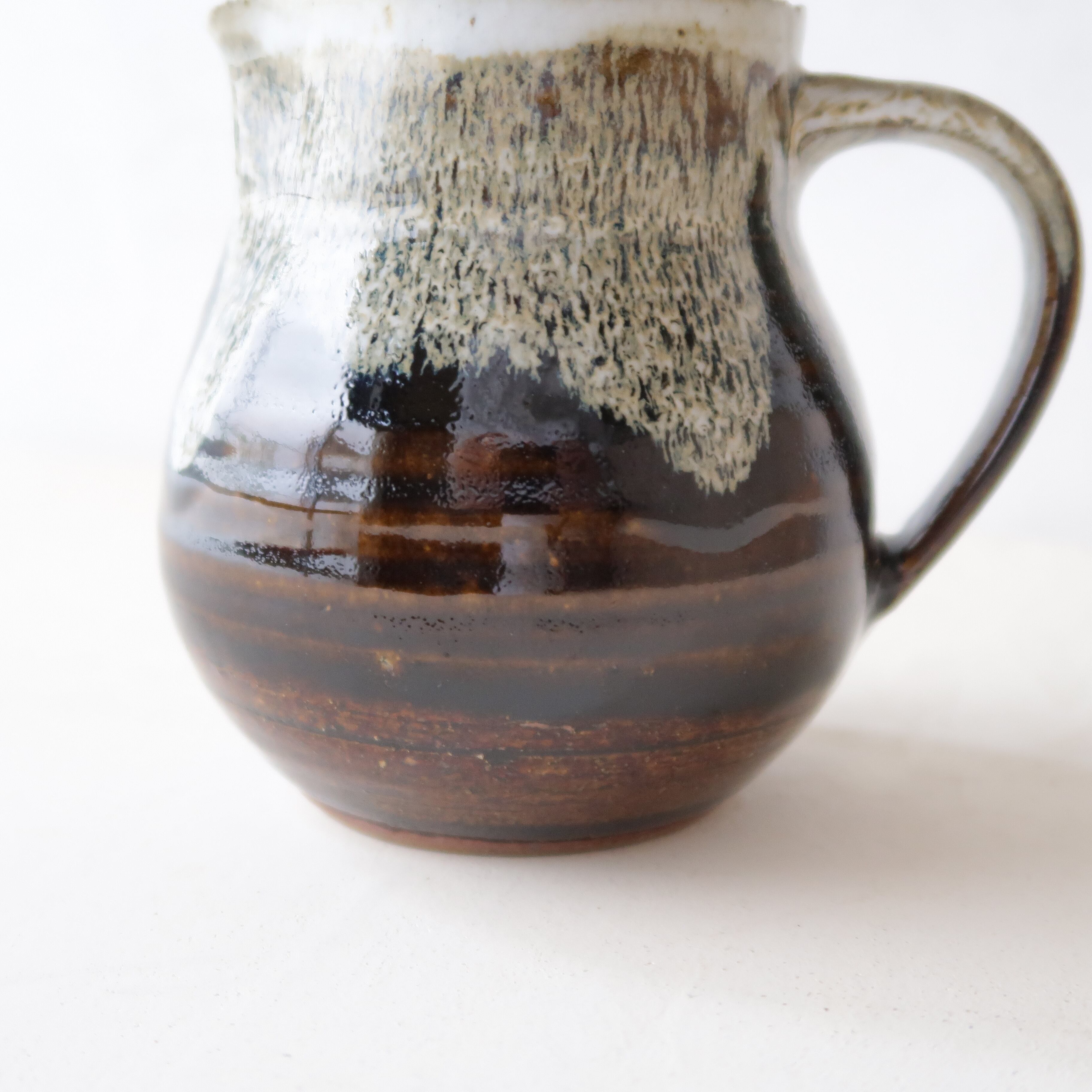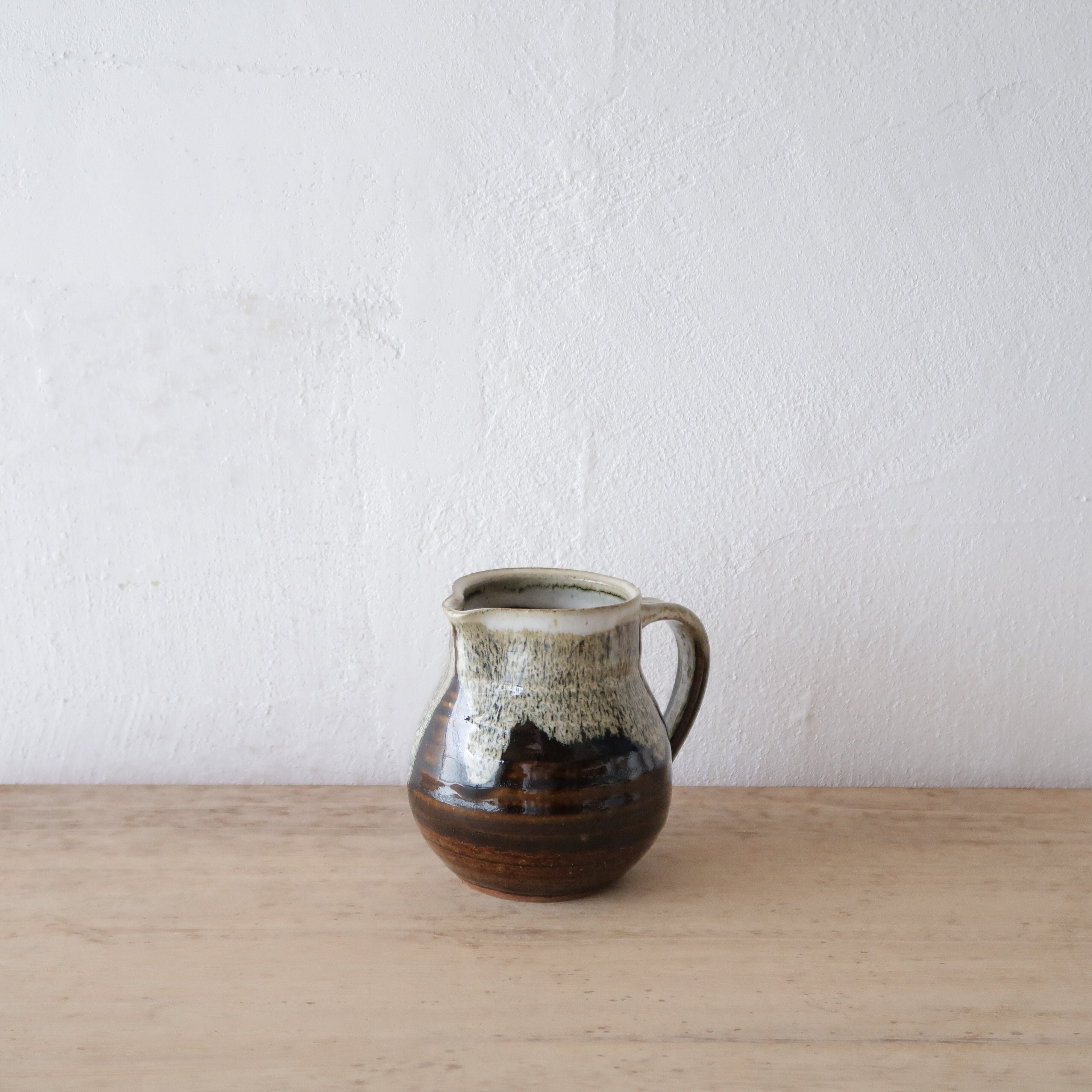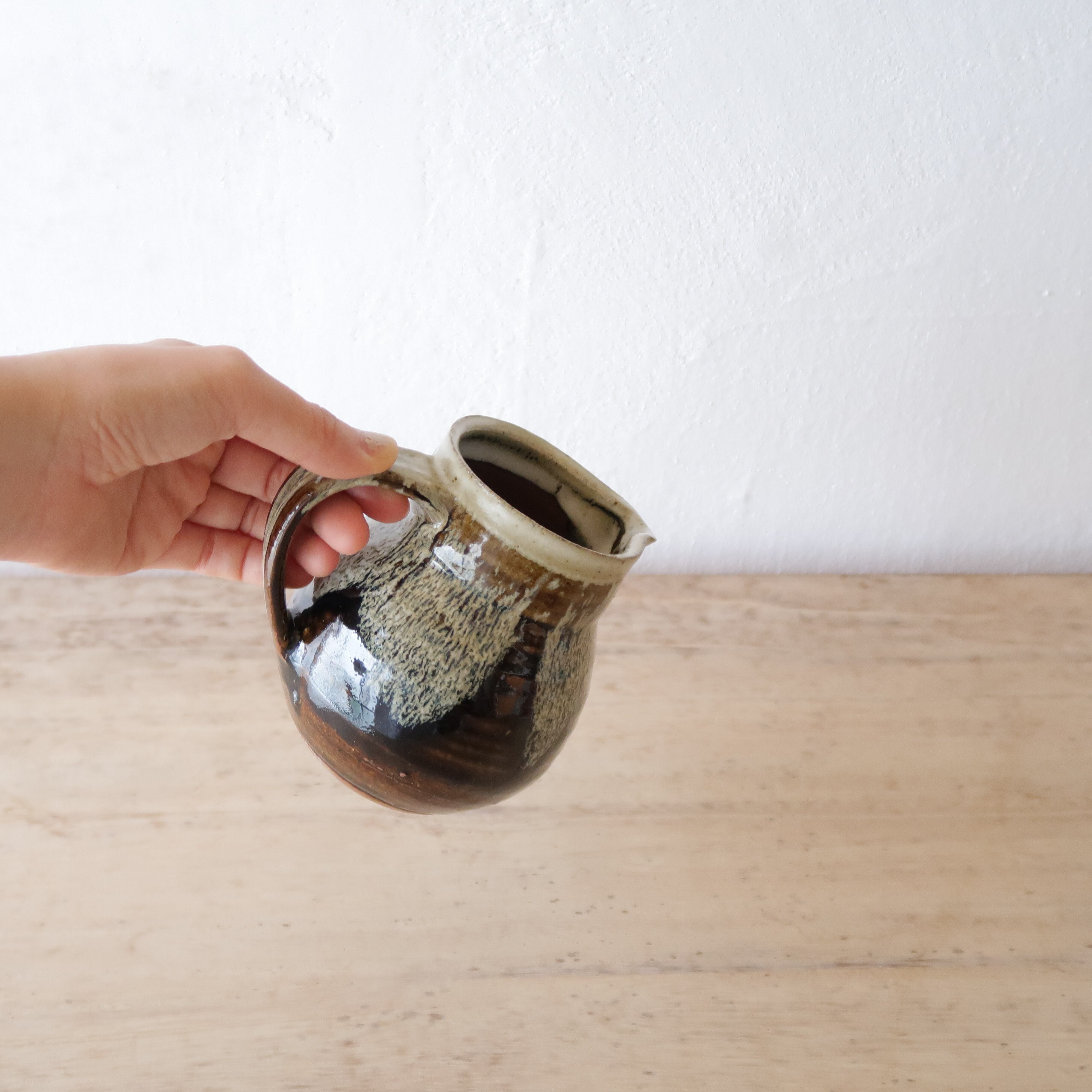 コーヒーのようなつやのあるコーヒーブラウンと、ミルクをたらしたようなクリーム色、その模様が美しいジャグ。