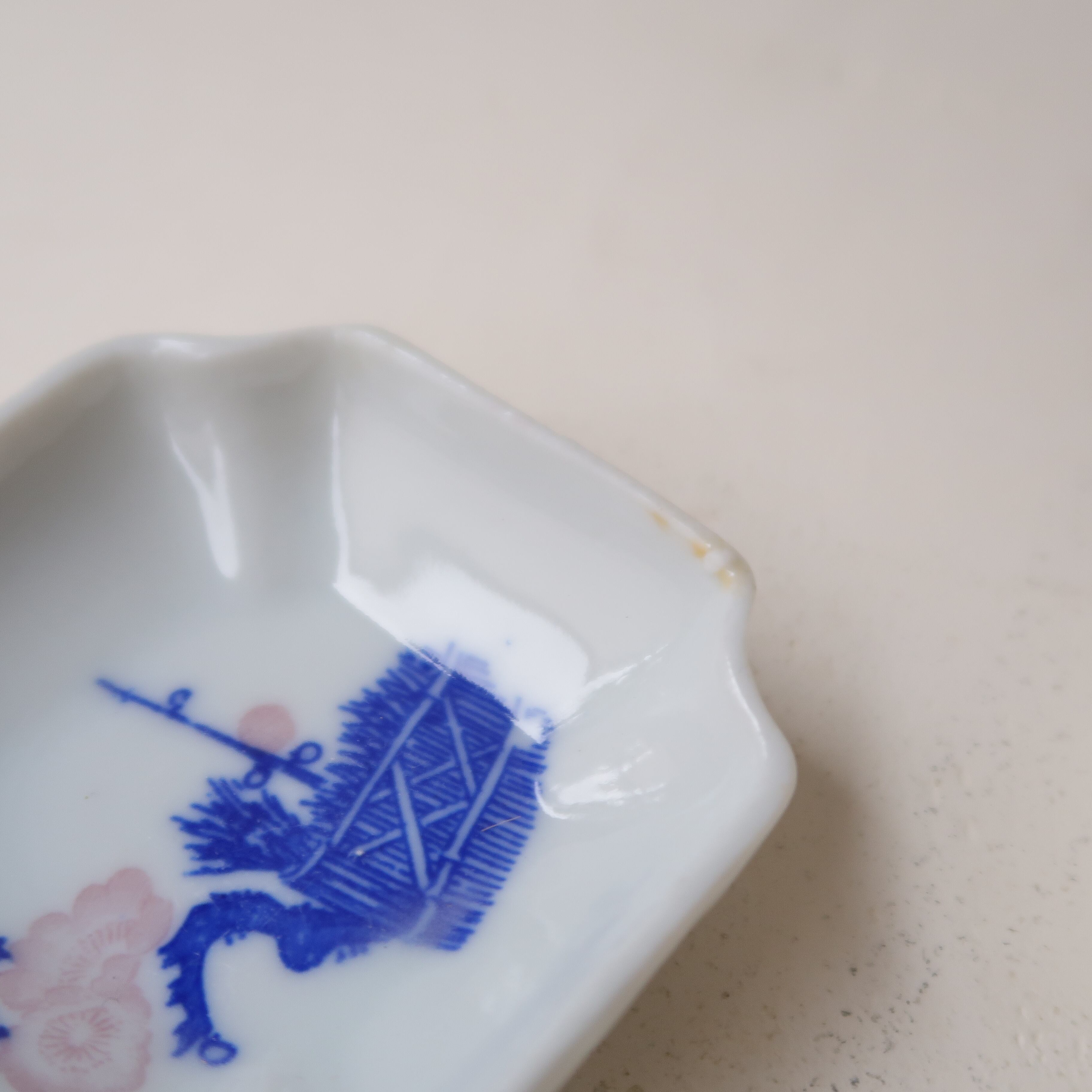 中心には、竹垣と梅の木の絵柄が転写されています。