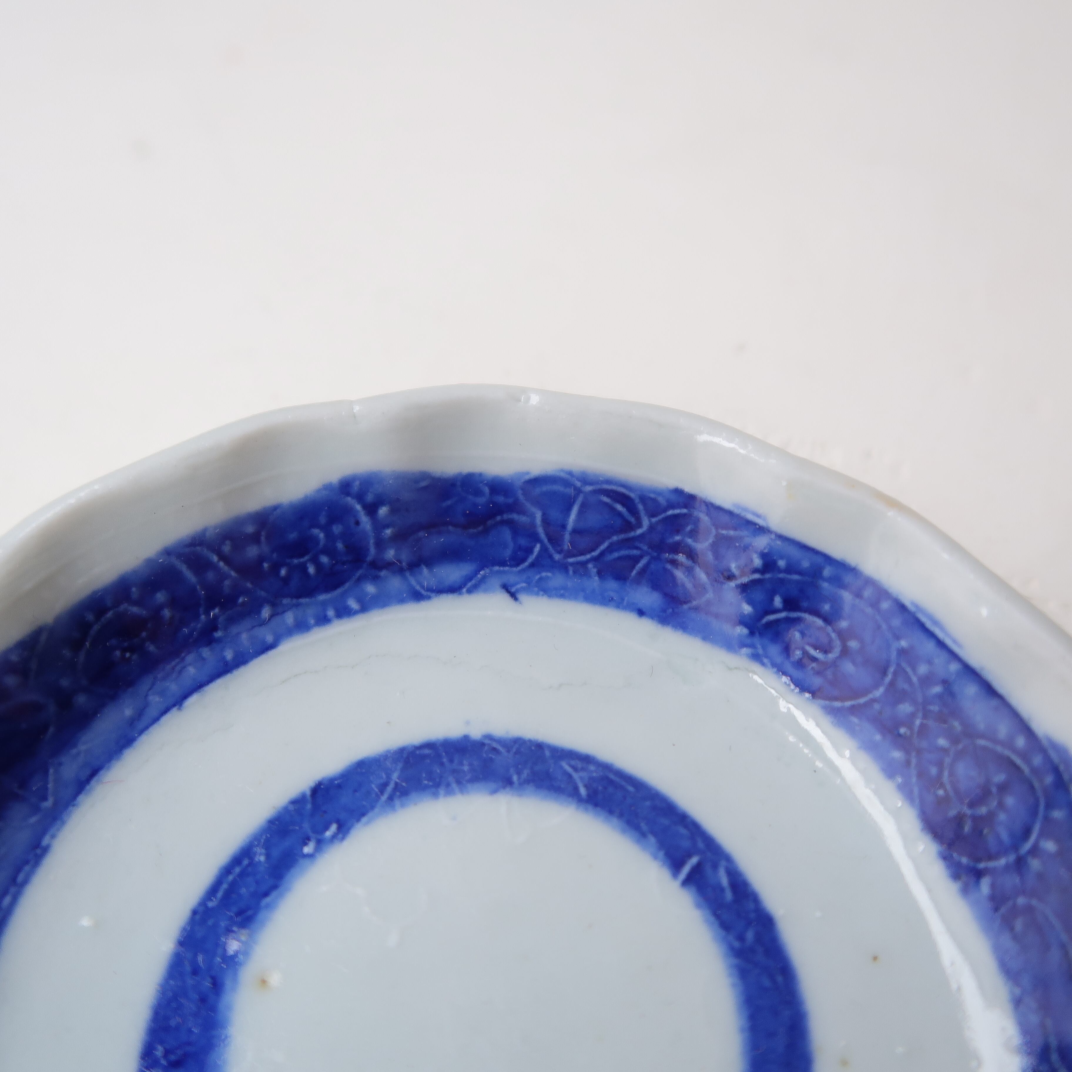 細部をよく見ると、下地を描き、その上に青い線をのせているからか、わずかに、瓢箪や唐草模様が白く浮かび上がっています。ちいさなところまでたのしめる器です。