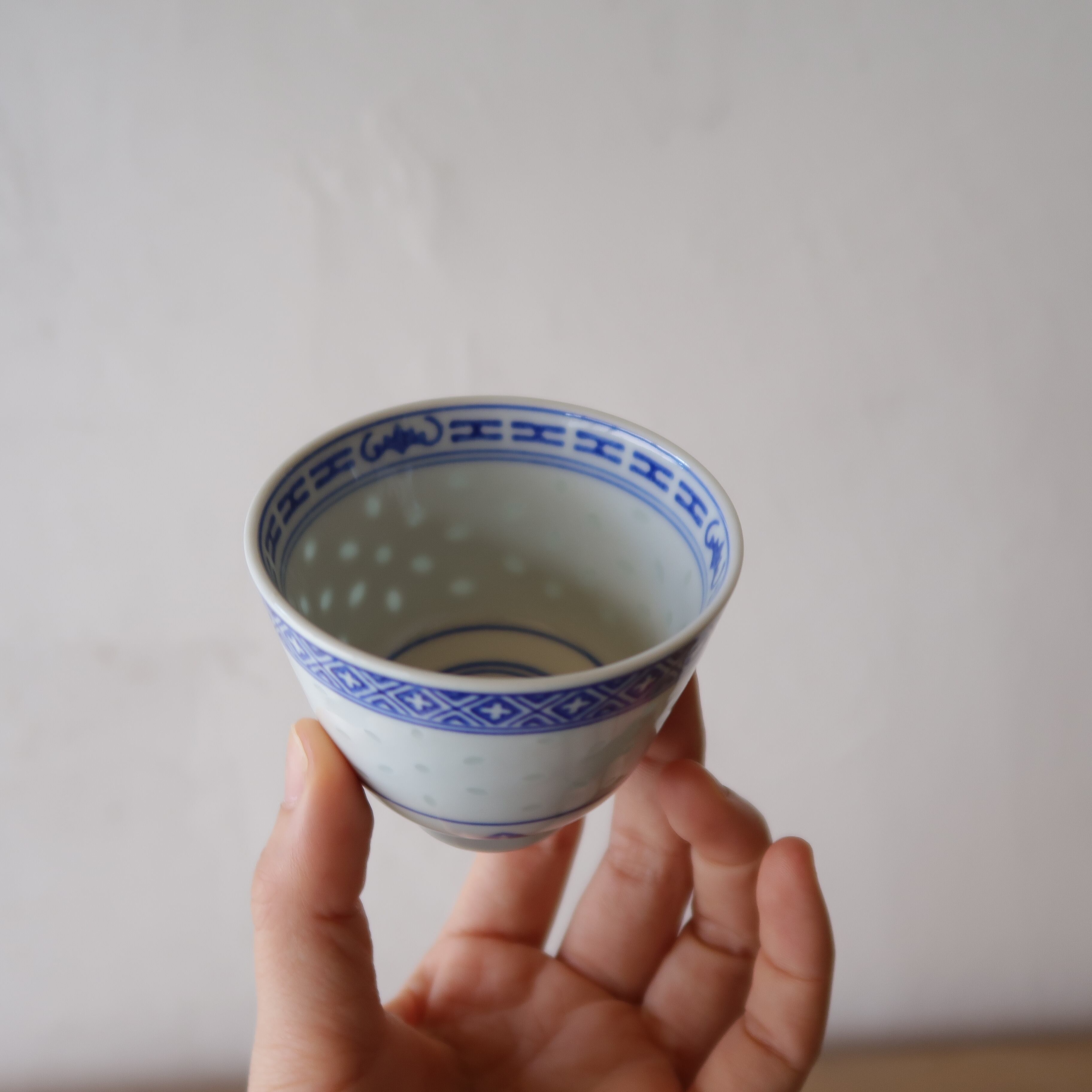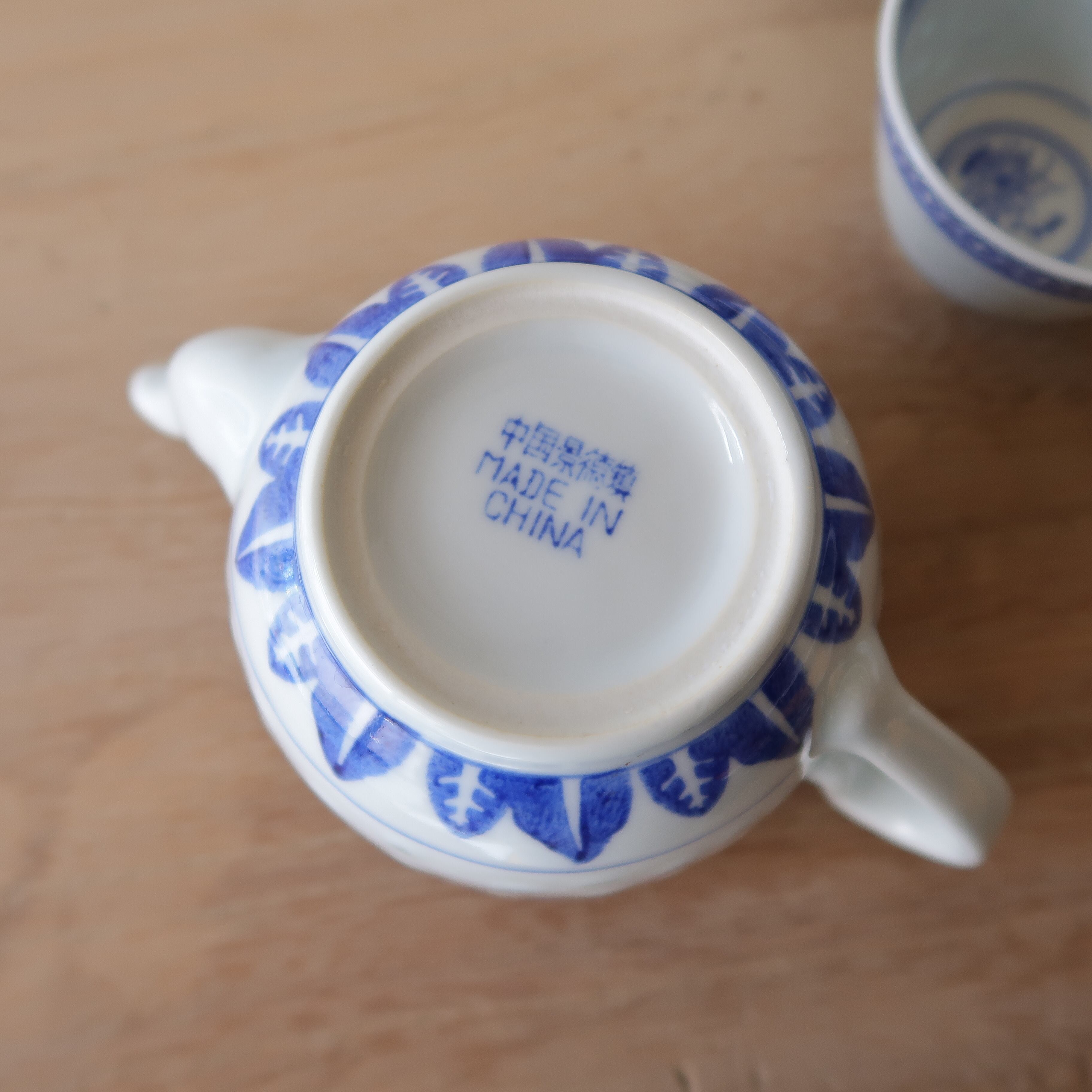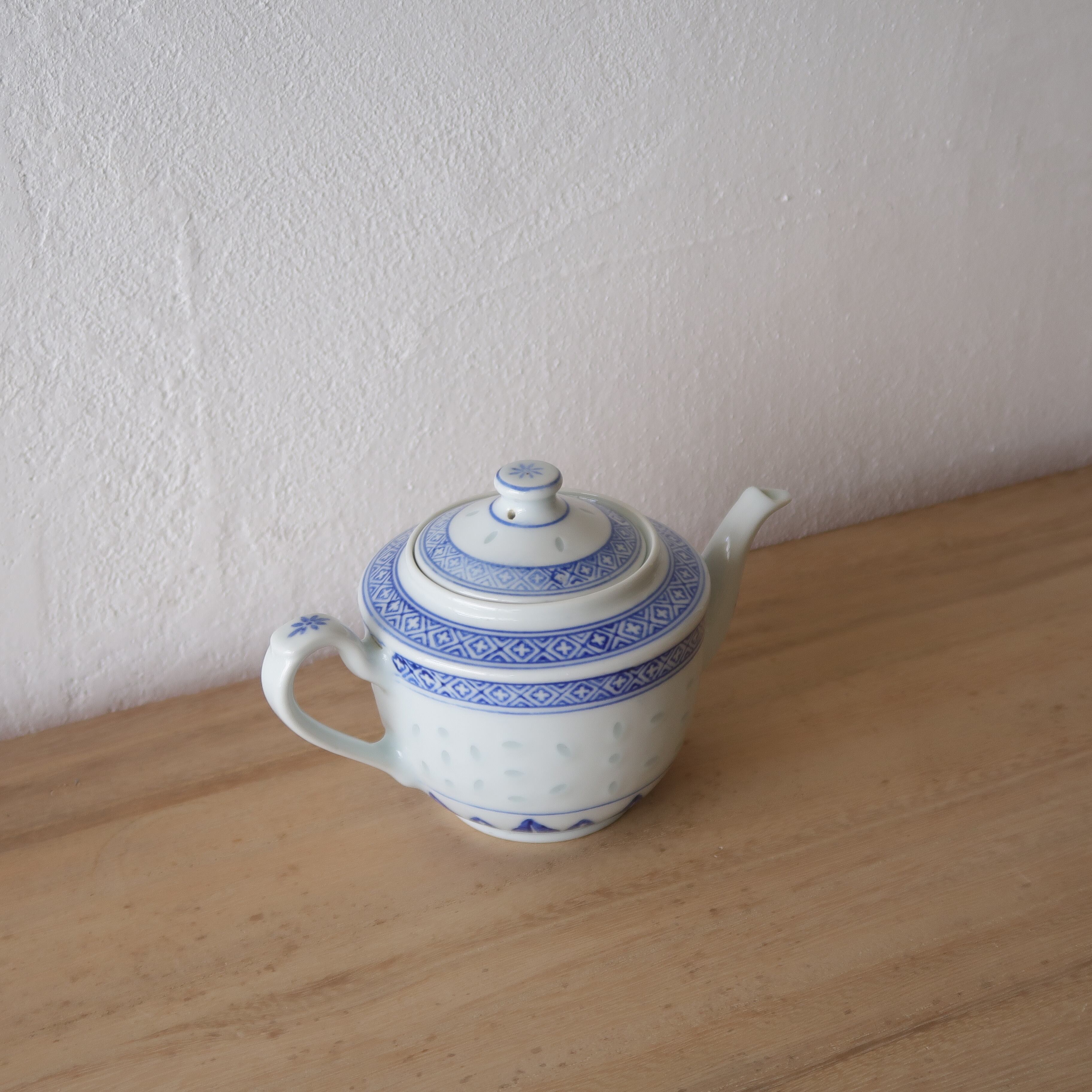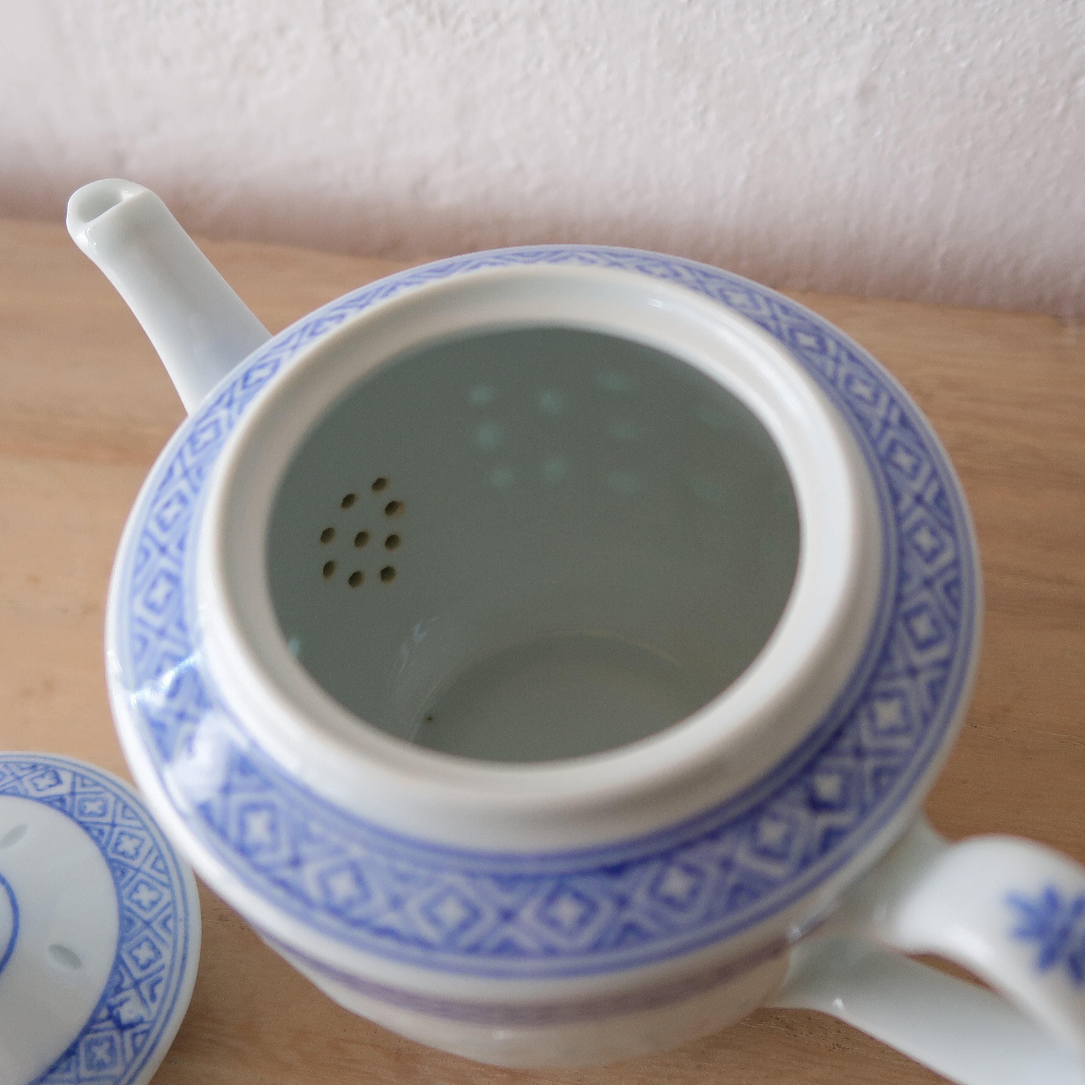 陶器の一部にガラスが使われていて、ホタルのように光が透ける蛍手という手法。ティーポットとカップのセットを再入荷しました。