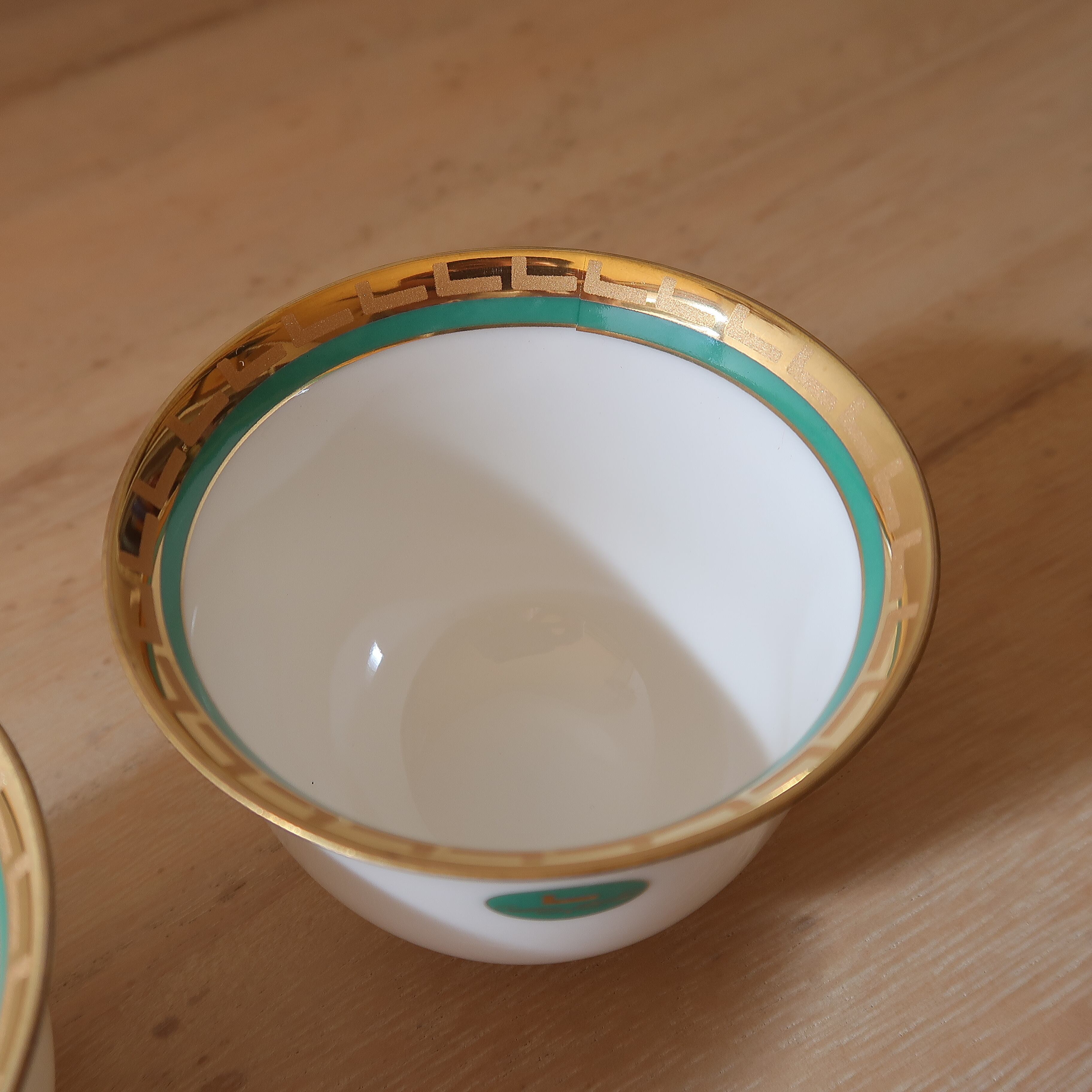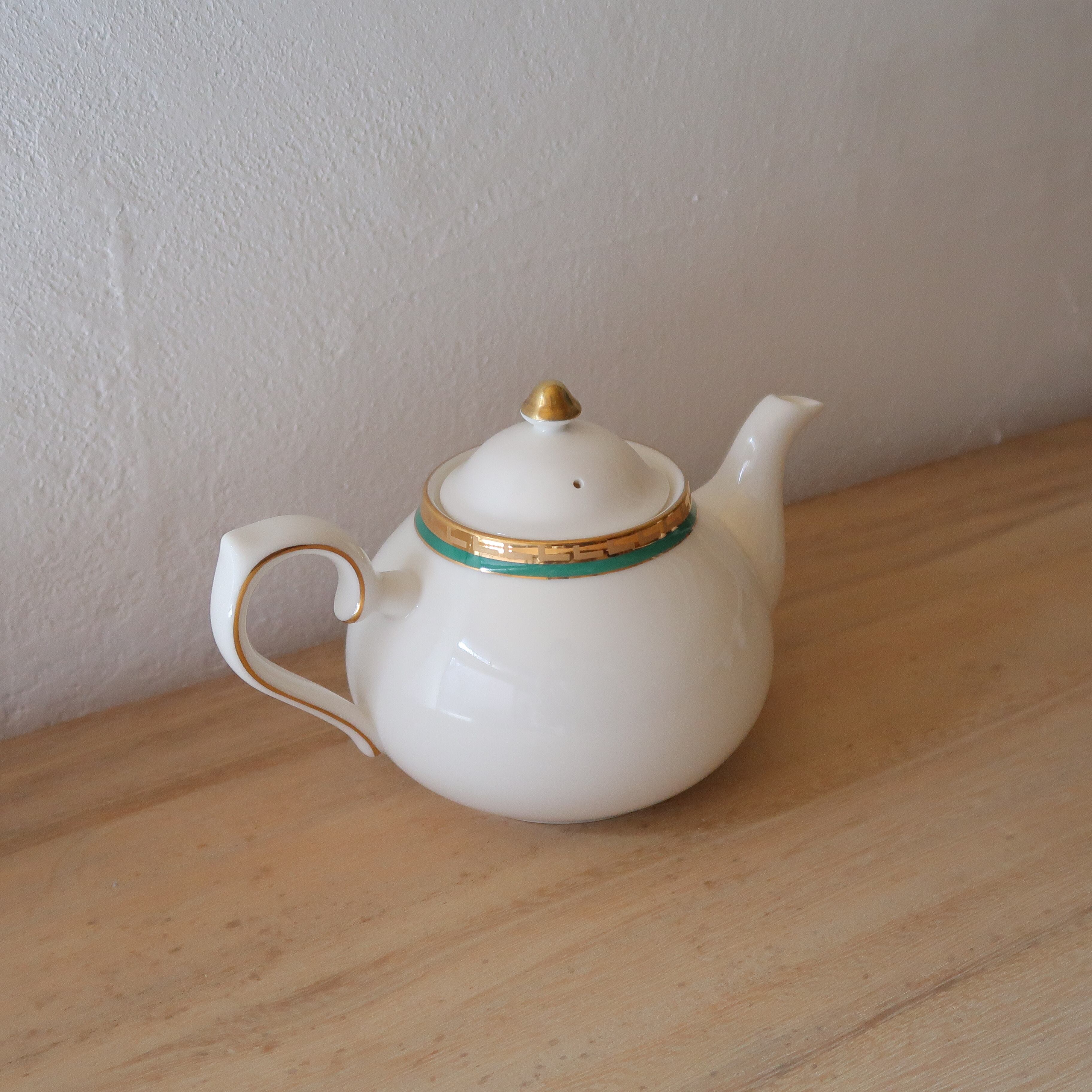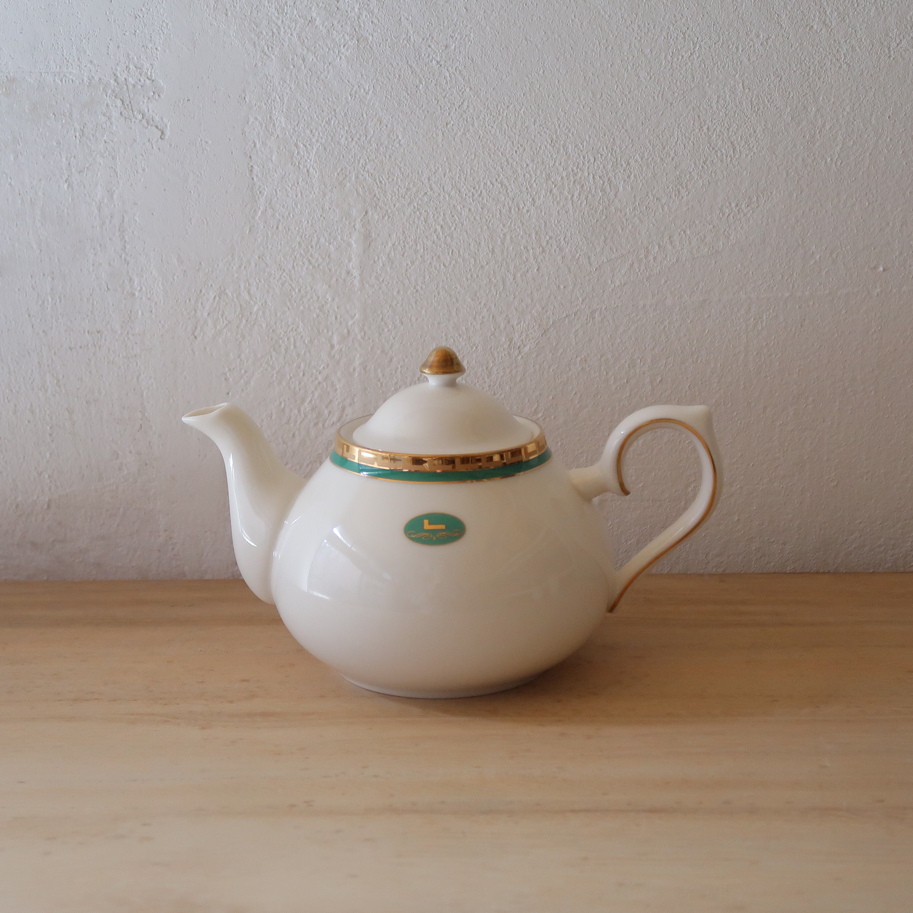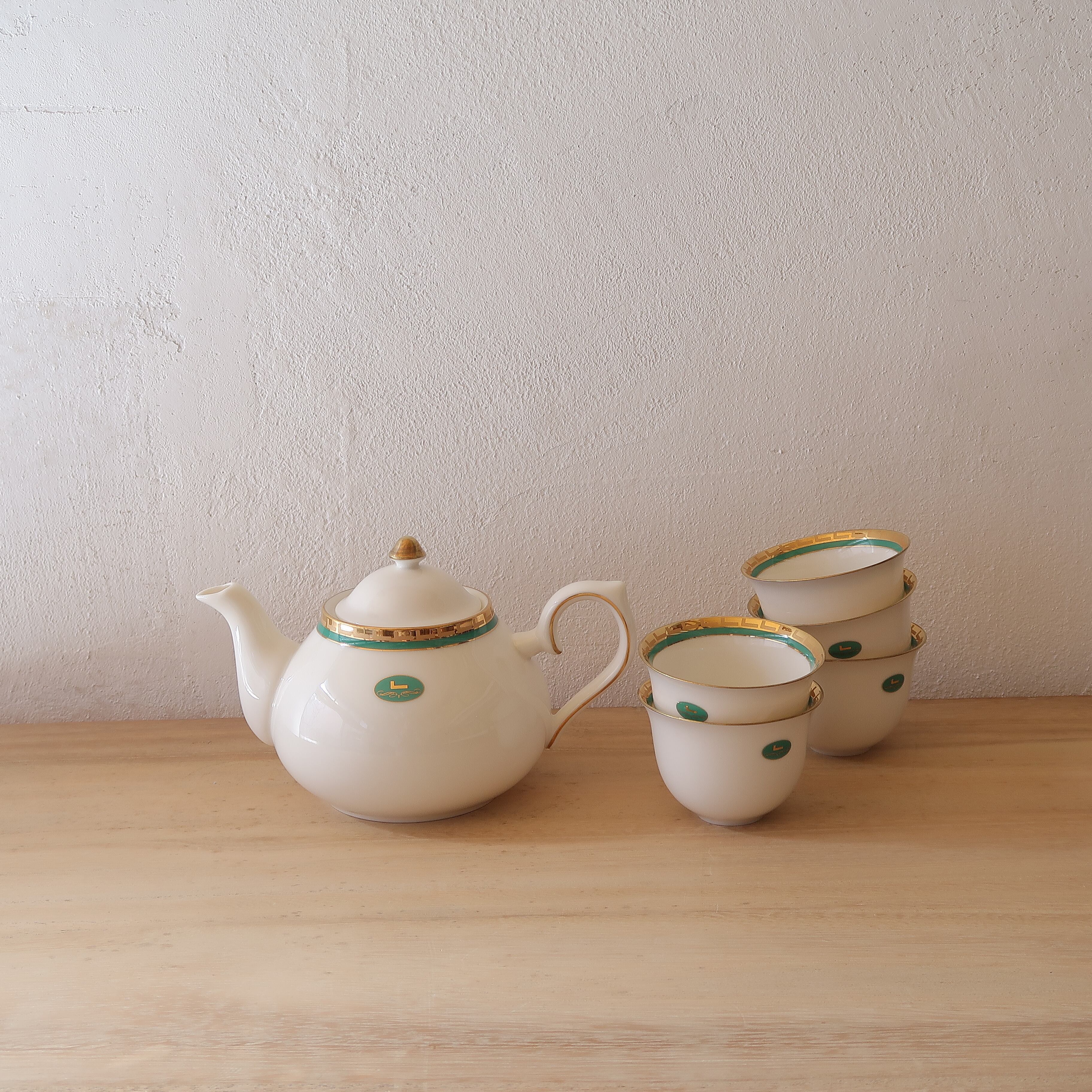 グリーンとゴールドの色合いがキャッチーなティーポットとカップのセットを入荷しました。「LANCEL」というフランスのブランドのもの。
