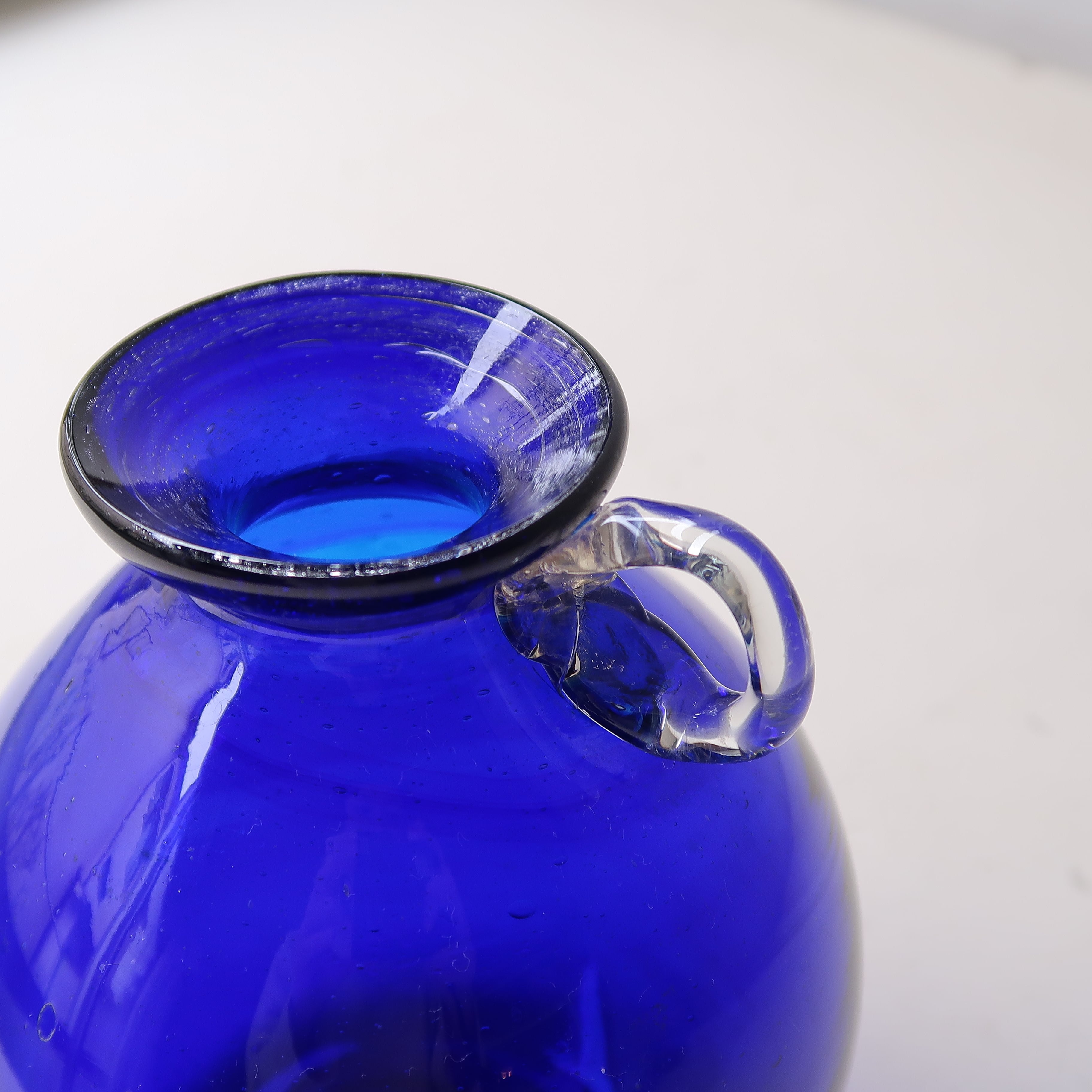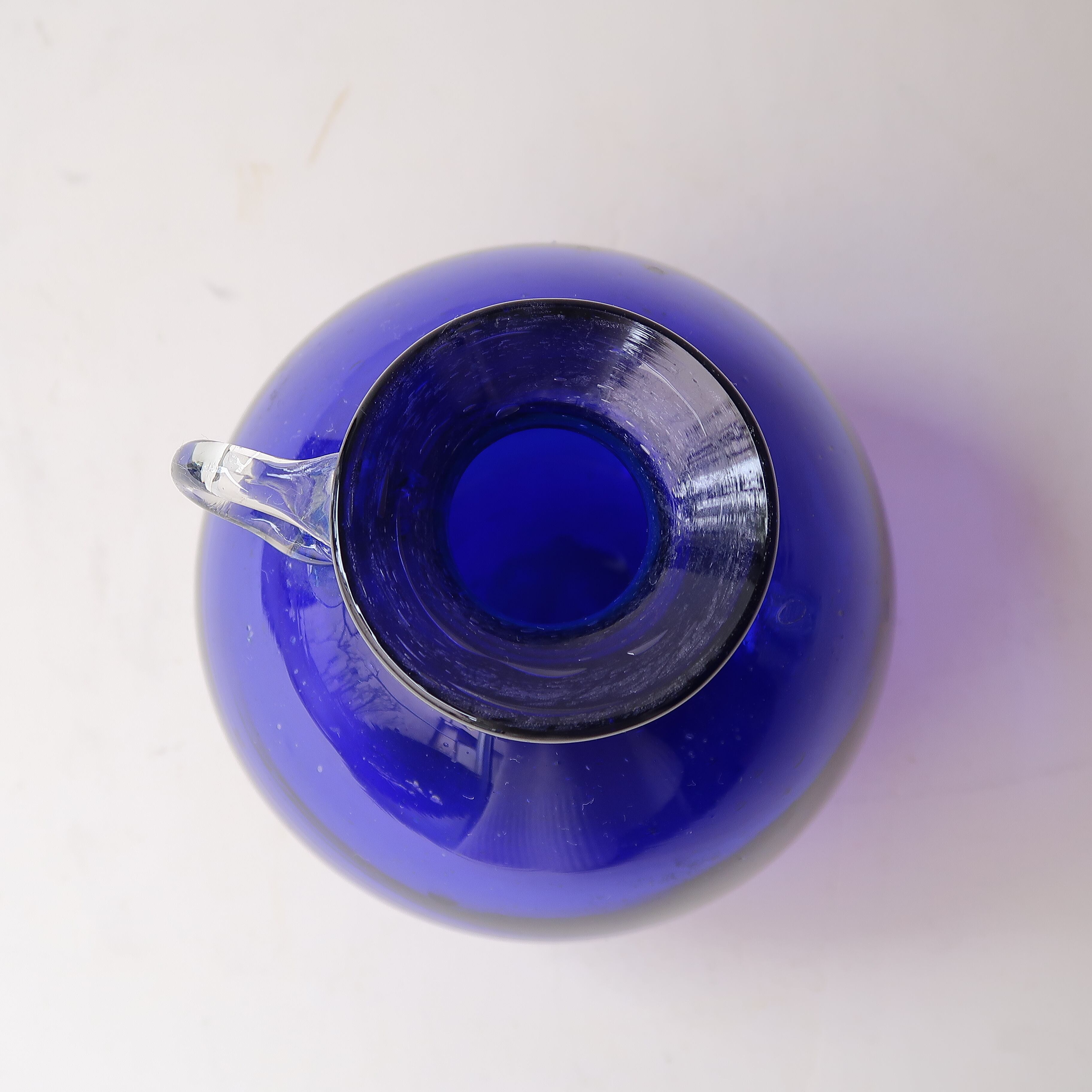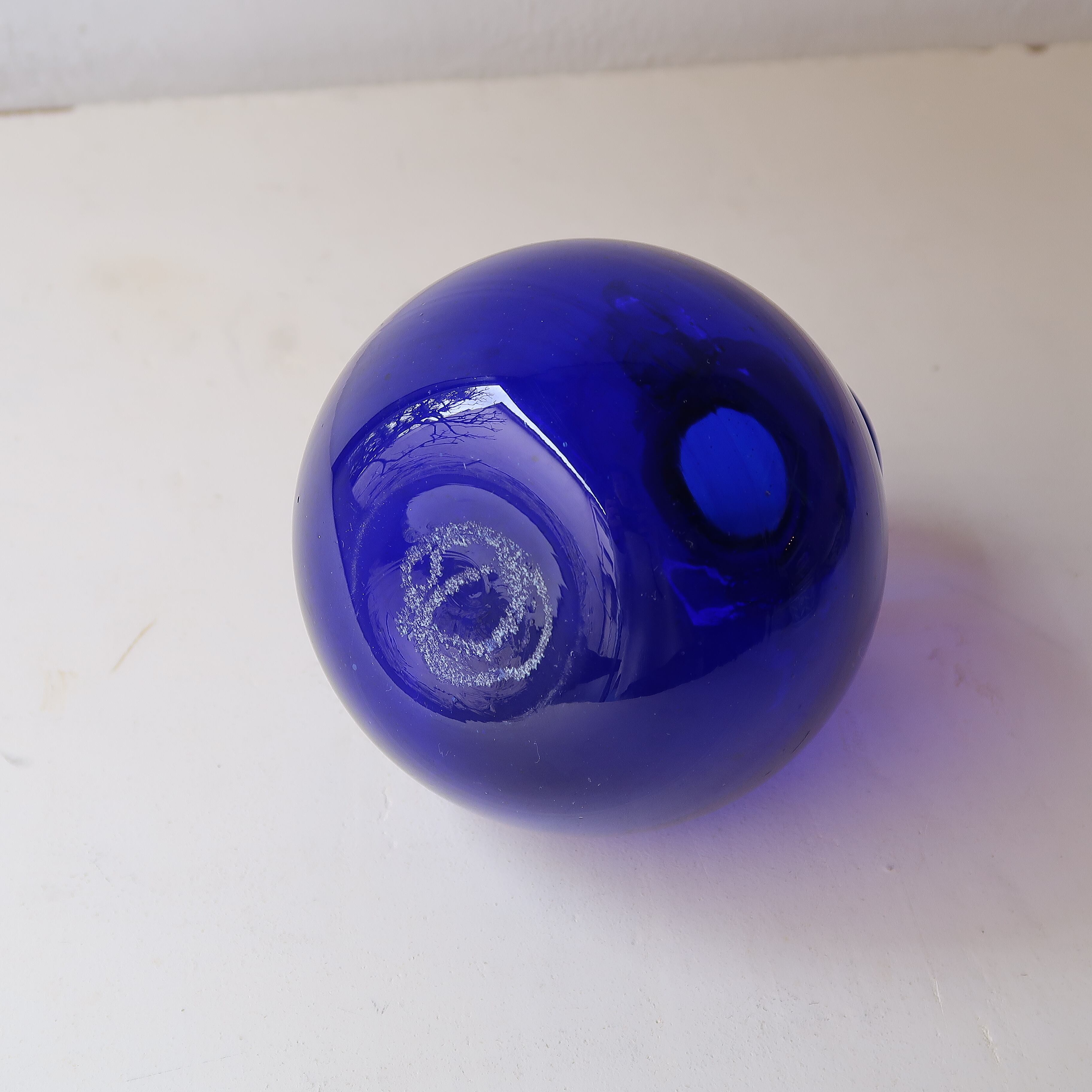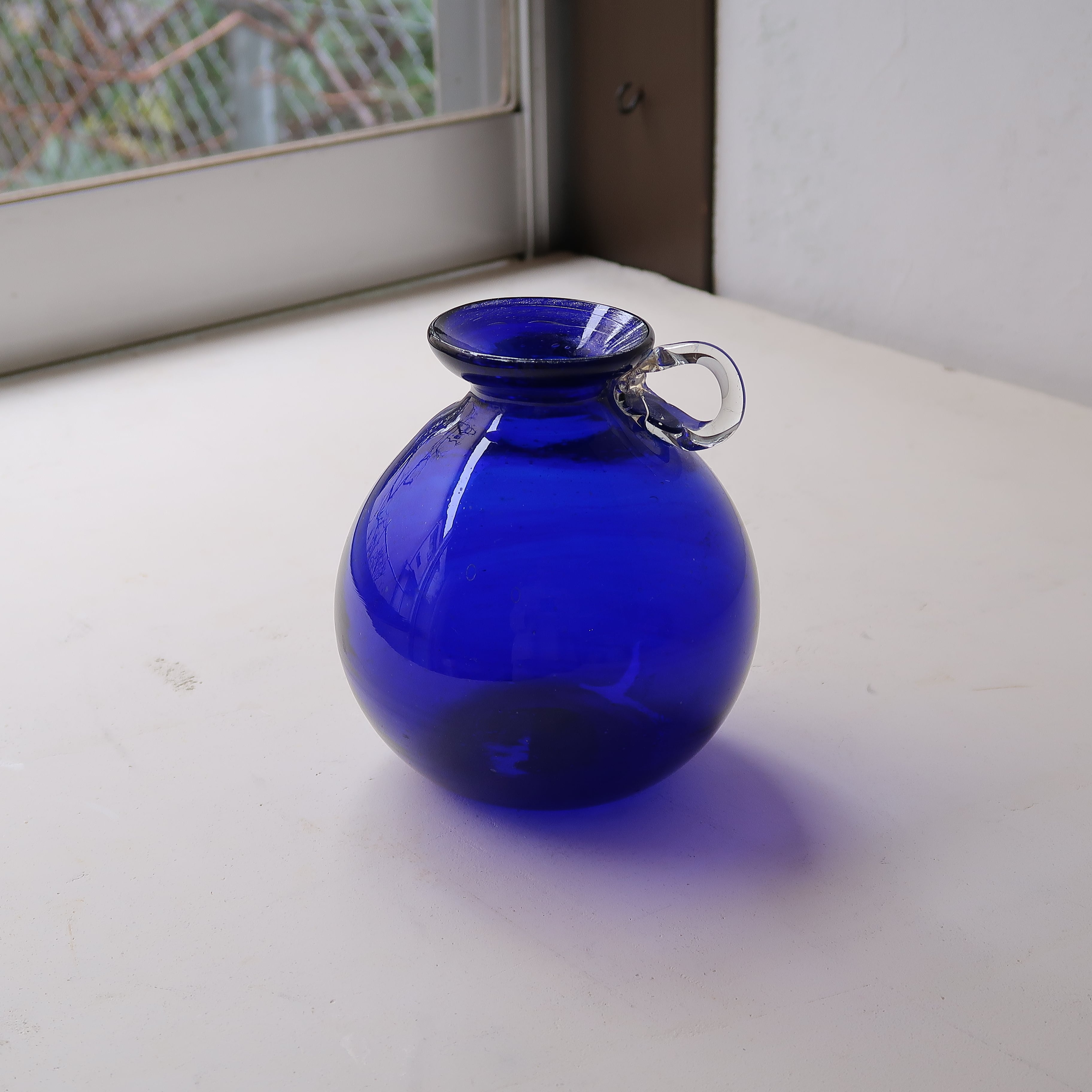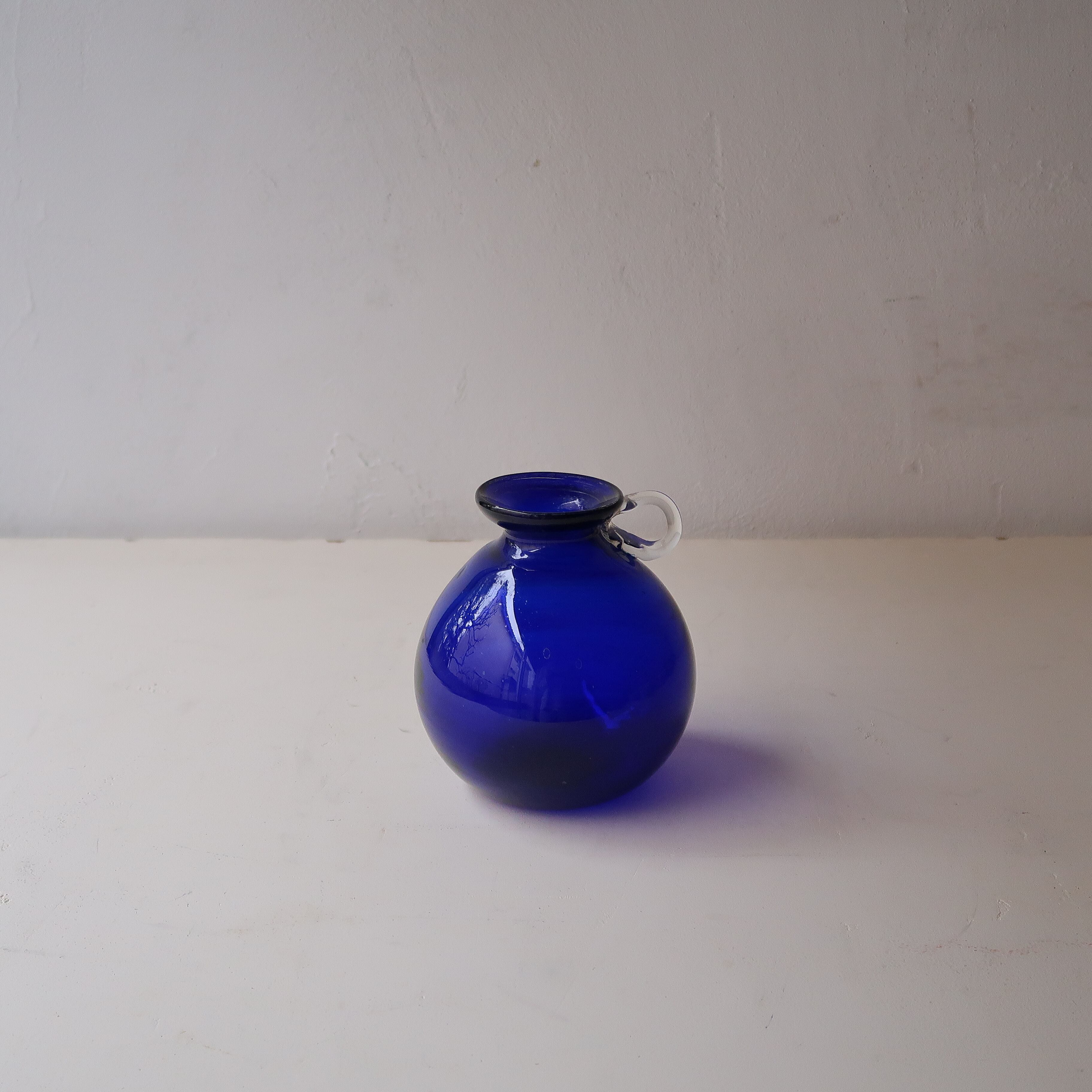 丸いボールのような花瓶。小ぶりなので、一輪挿しとして活躍しそうです。どこまでも青いような、コバルトブルーのガラスが美しい。よく見るとところどころに気泡があり、吹きガラスならではのゆらぎのある質感も魅力的です。