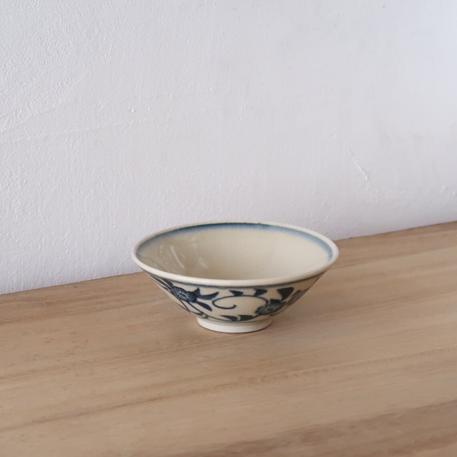 安南焼とは、室町時代末期から江戸時代に、ベトナムから日本に渡ってきた焼物。こちらは年代としては新しく、花びらの描き込みもっきり。安南焼には、繁栄を象徴する唐草がよく描かれます。